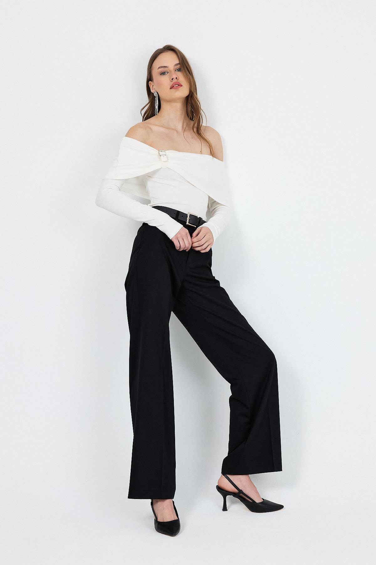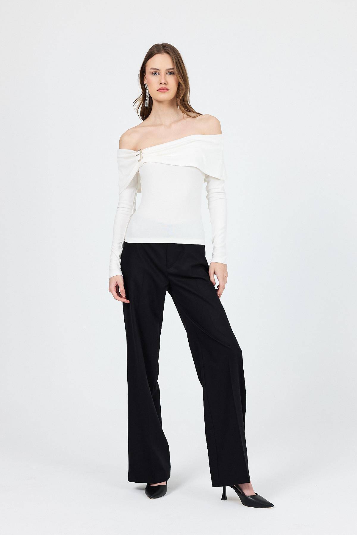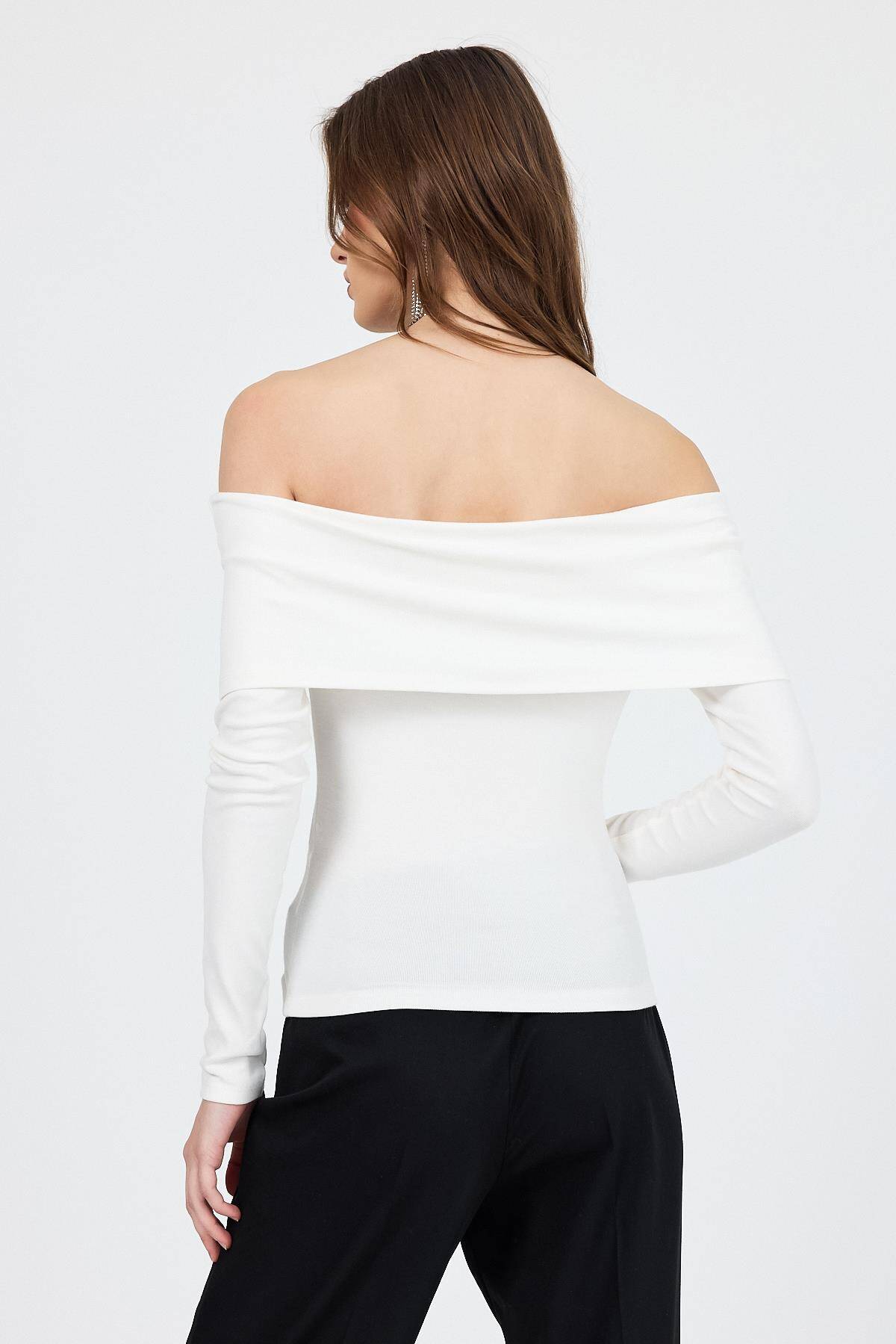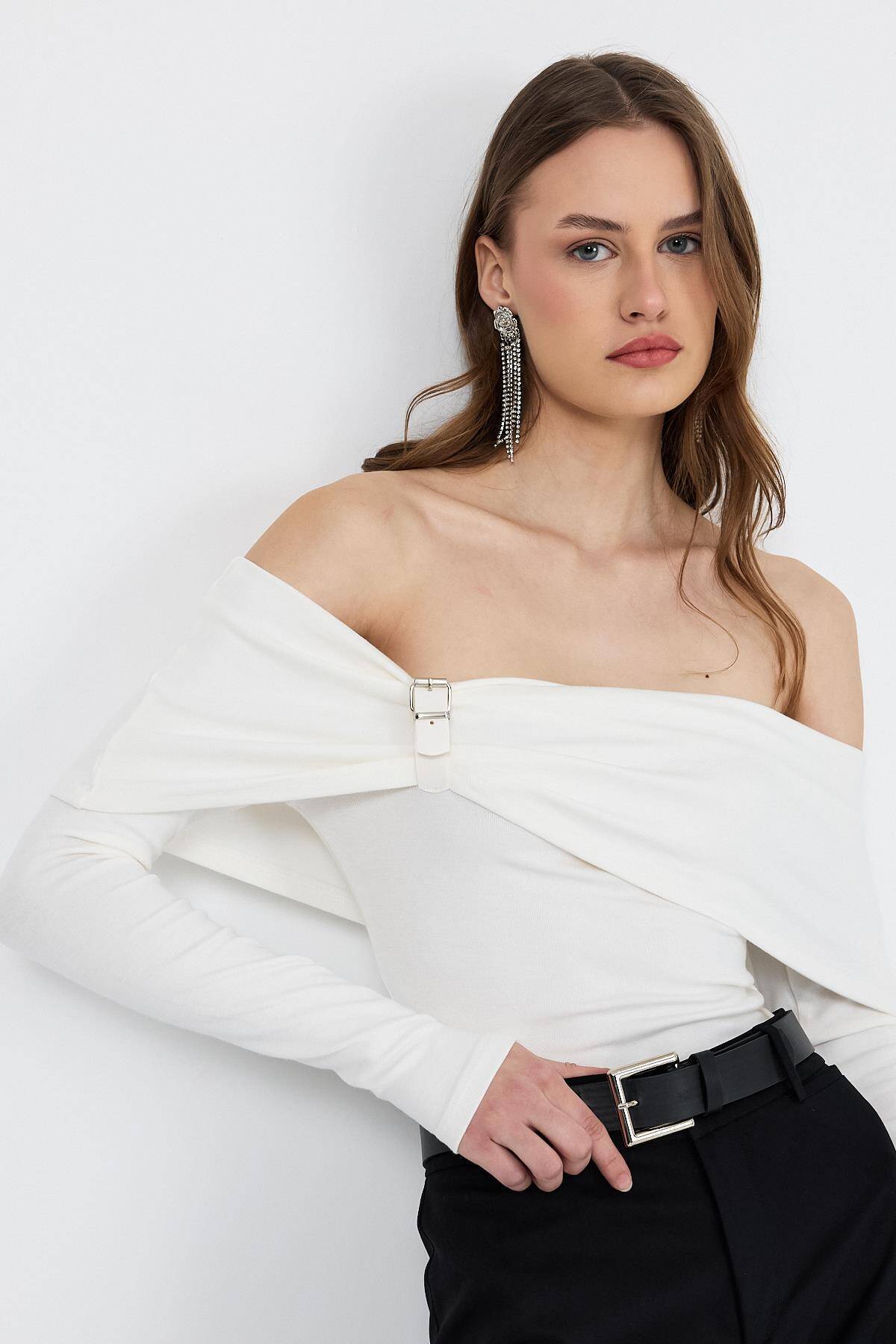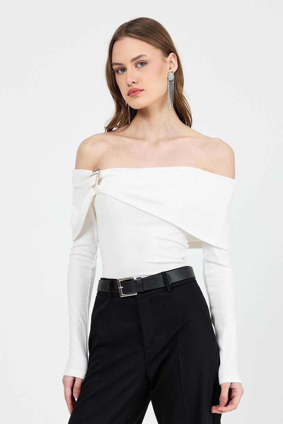 Beyaz Madonna Yaka Toka Detaylı Bluz 1465