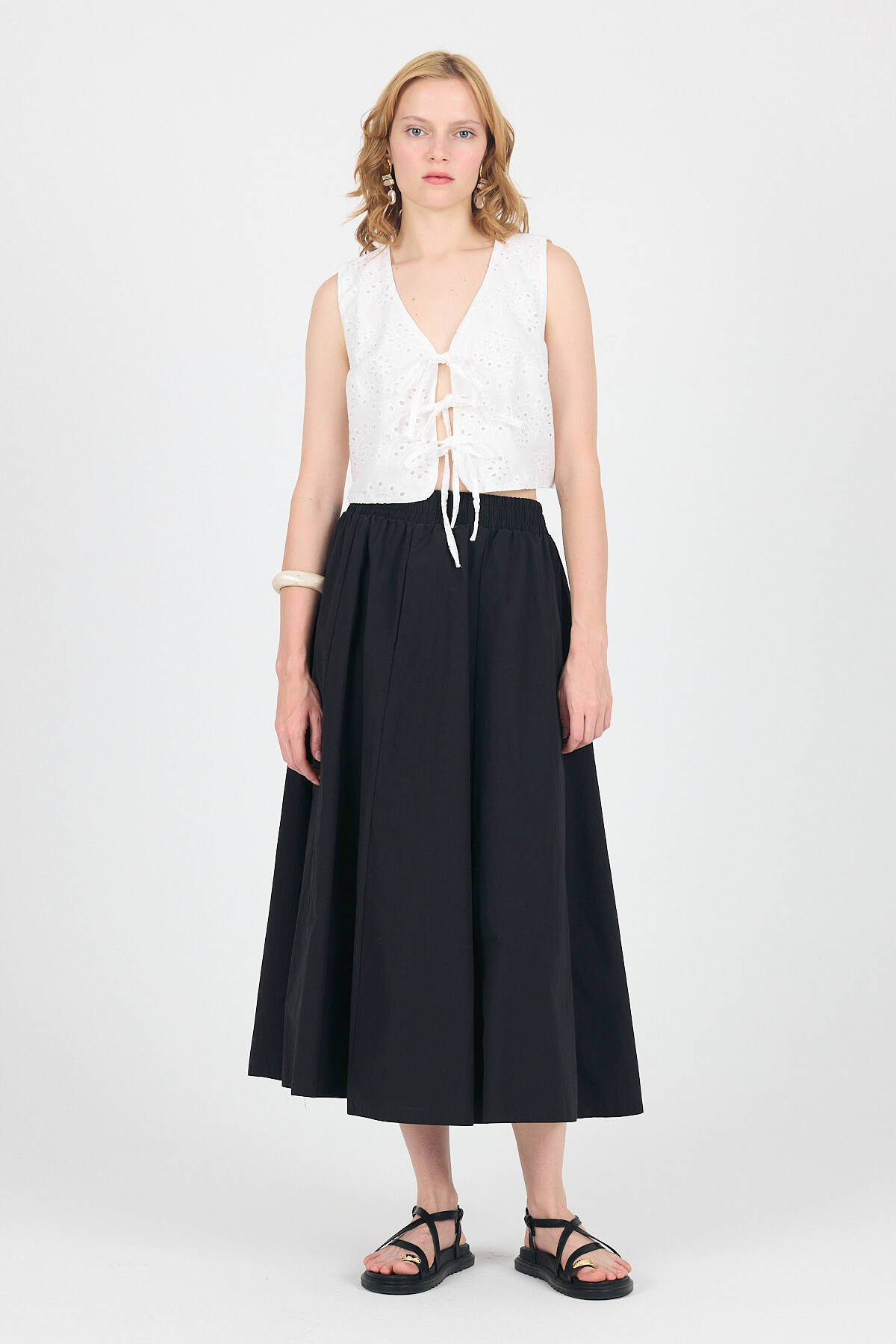 Beyaz Nakışlı Kolsuz Bağlama Detaylı Crop Yelek 8031