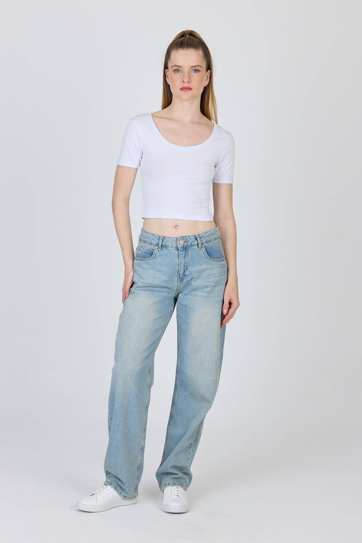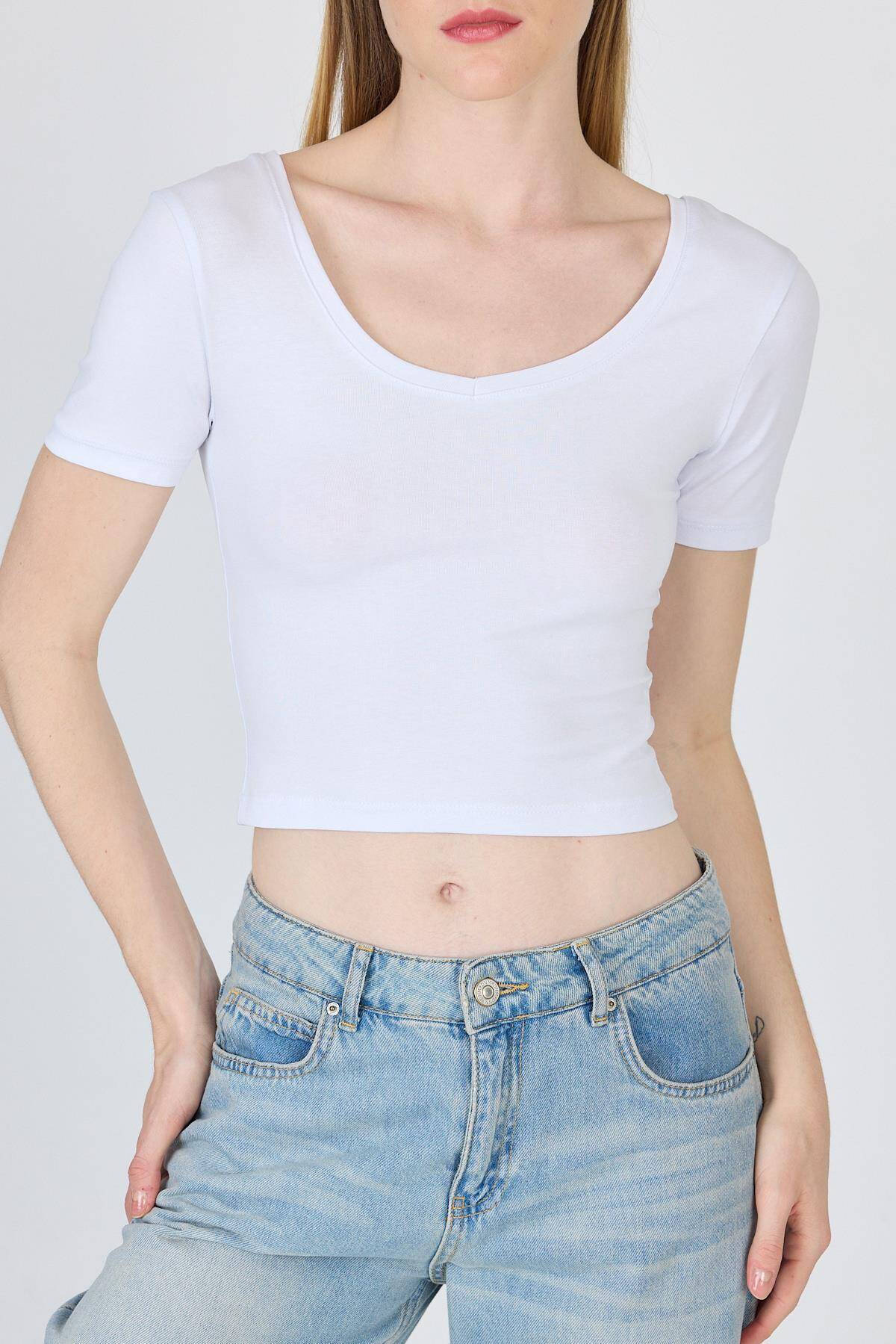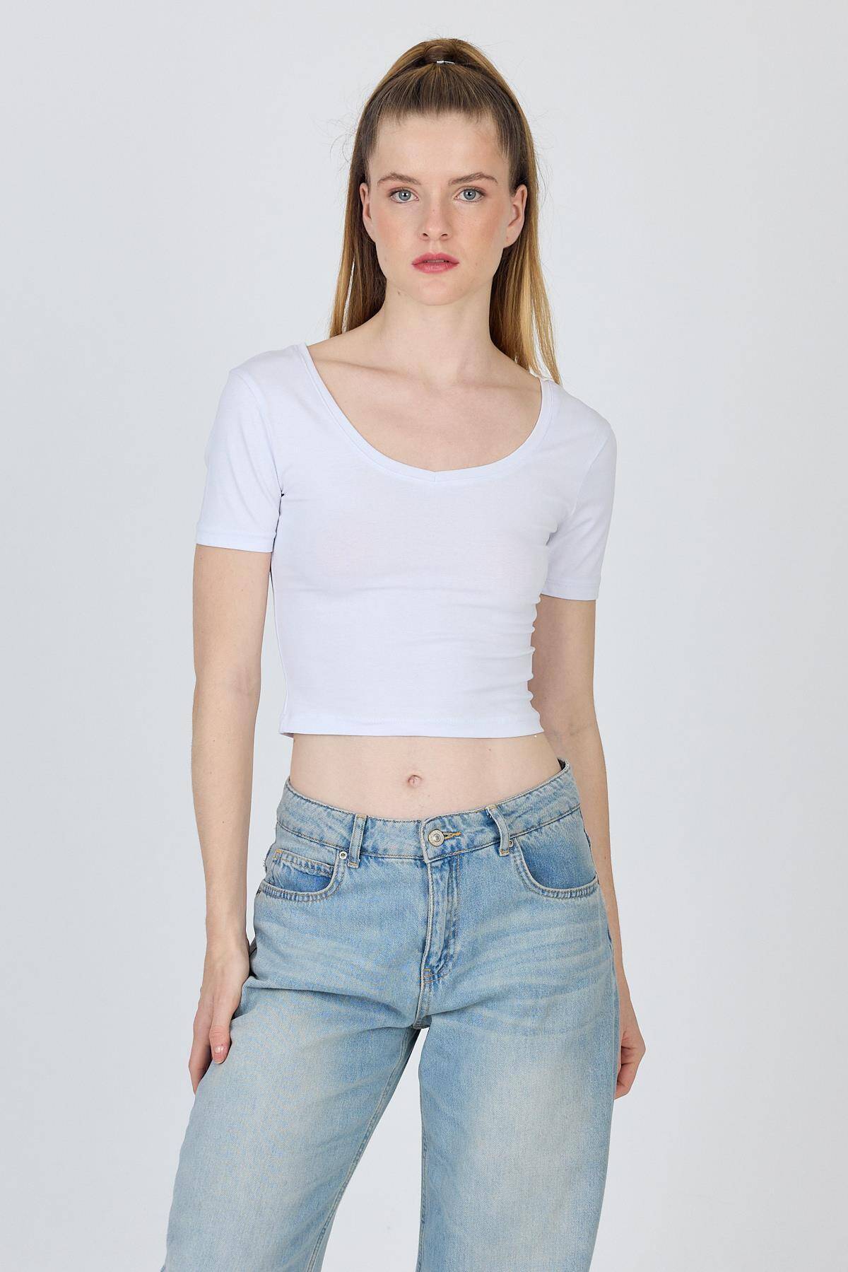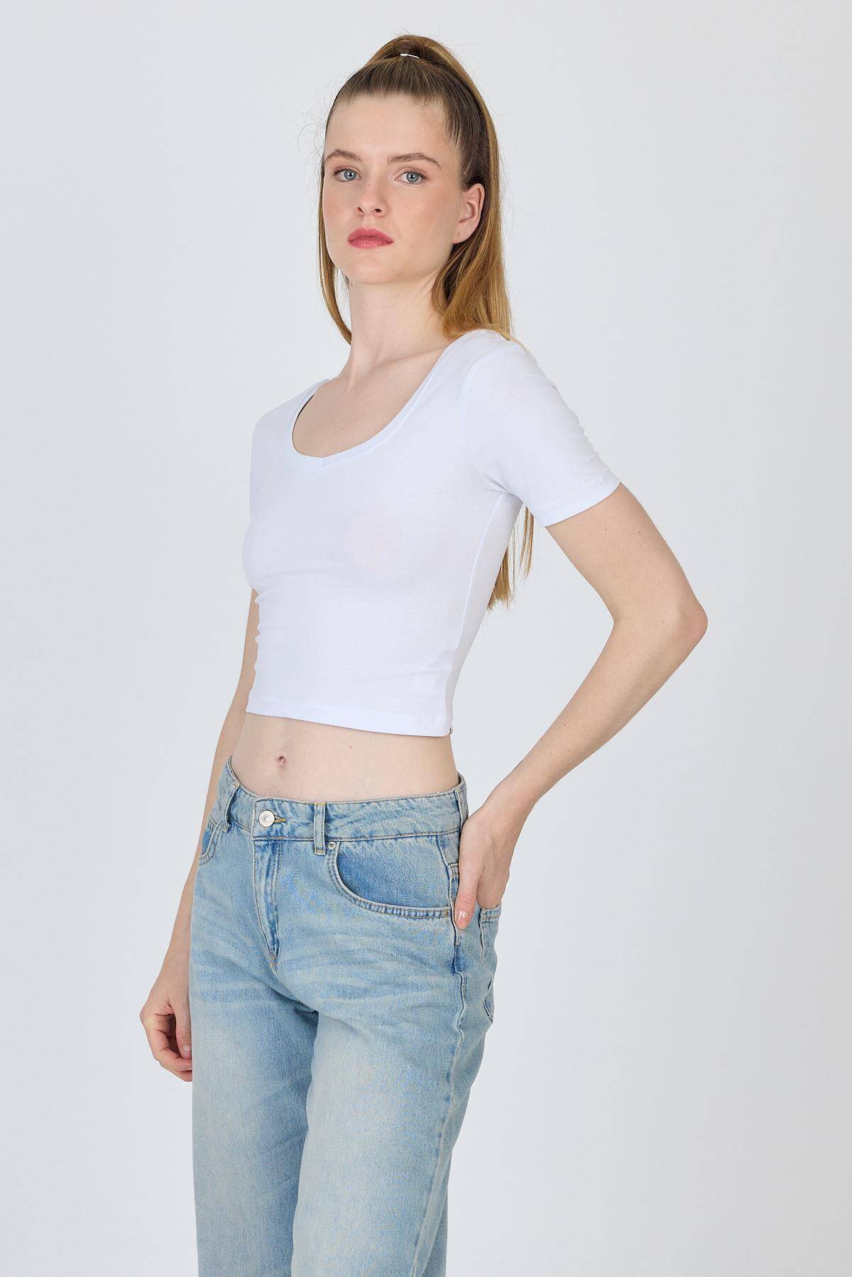 Beyaz U Yaka Pamuklu Slim Fit Tişört 9186M