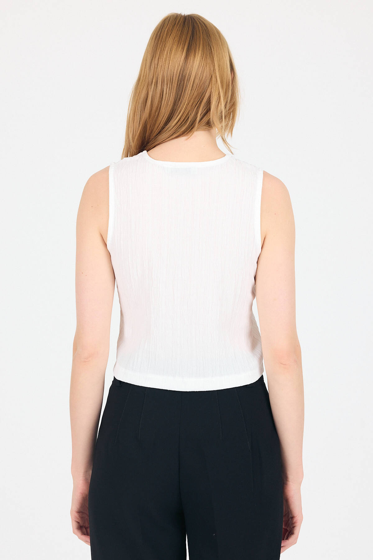 Beyaz V Yaka Kolsuz Crop Bluz 8027