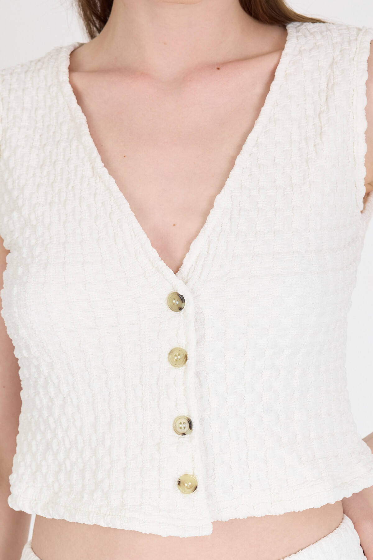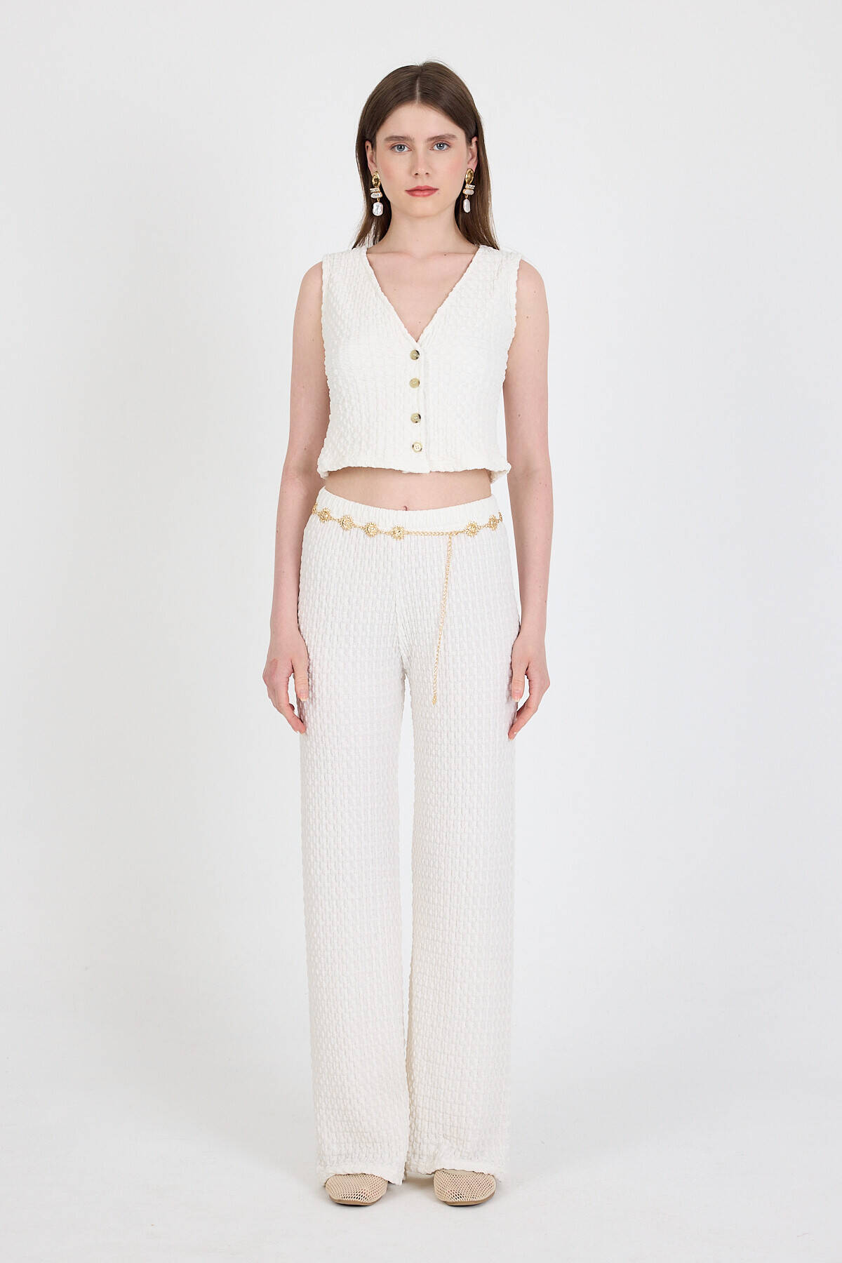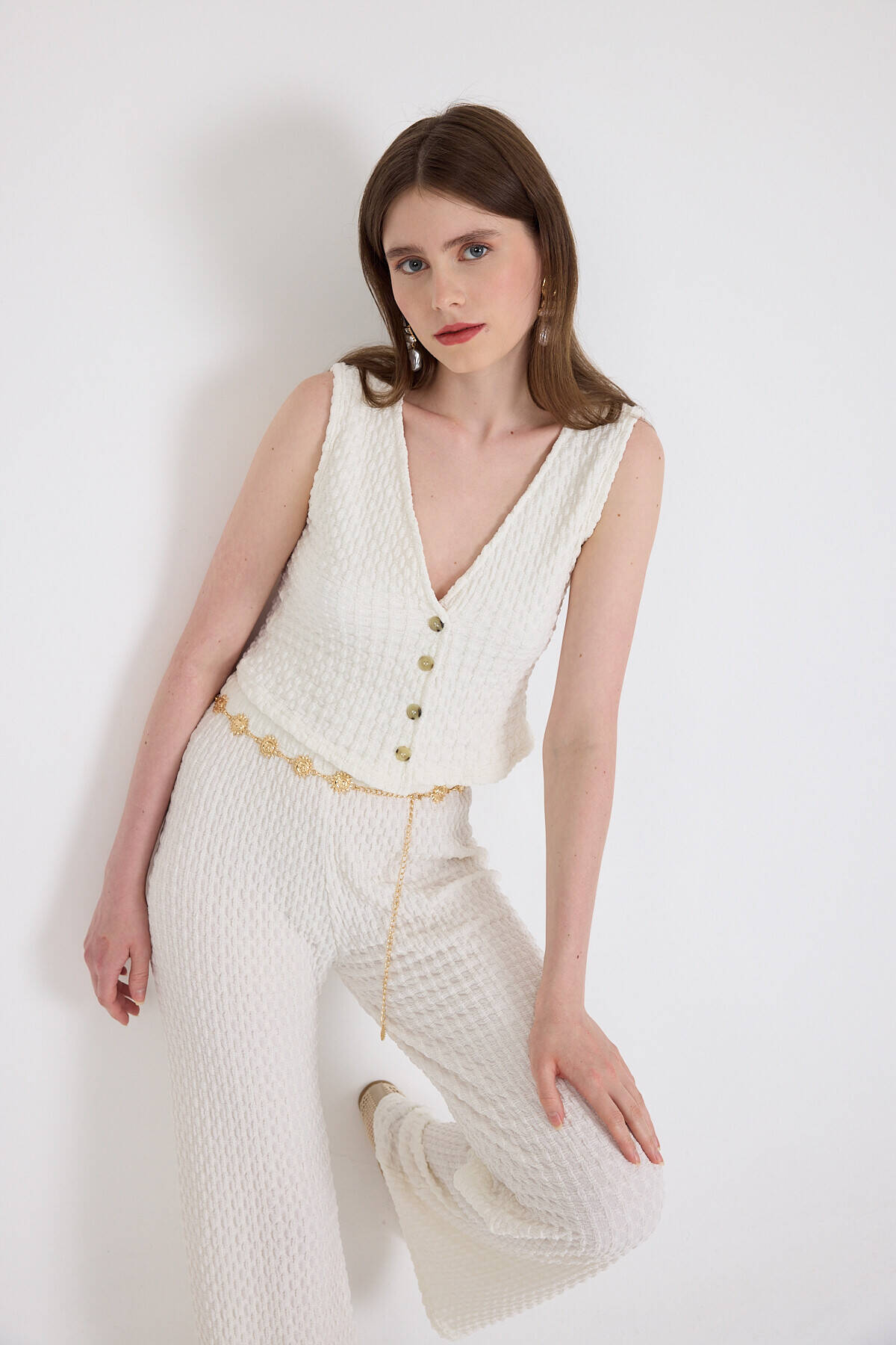 Beyaz V Yaka Yelek ve Pantolon Takımı 3000
