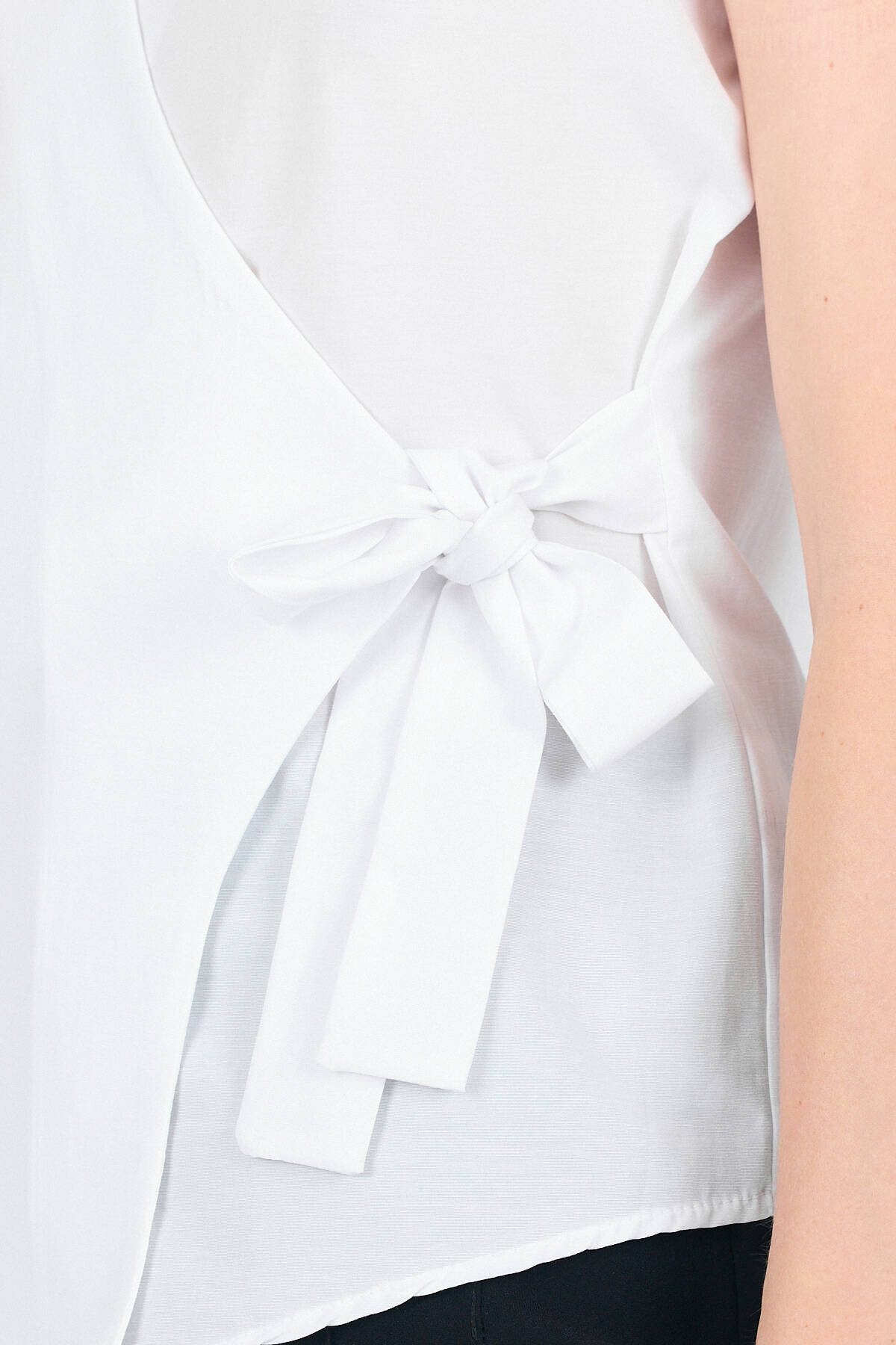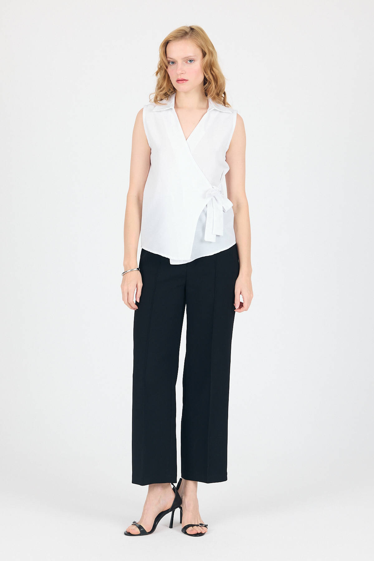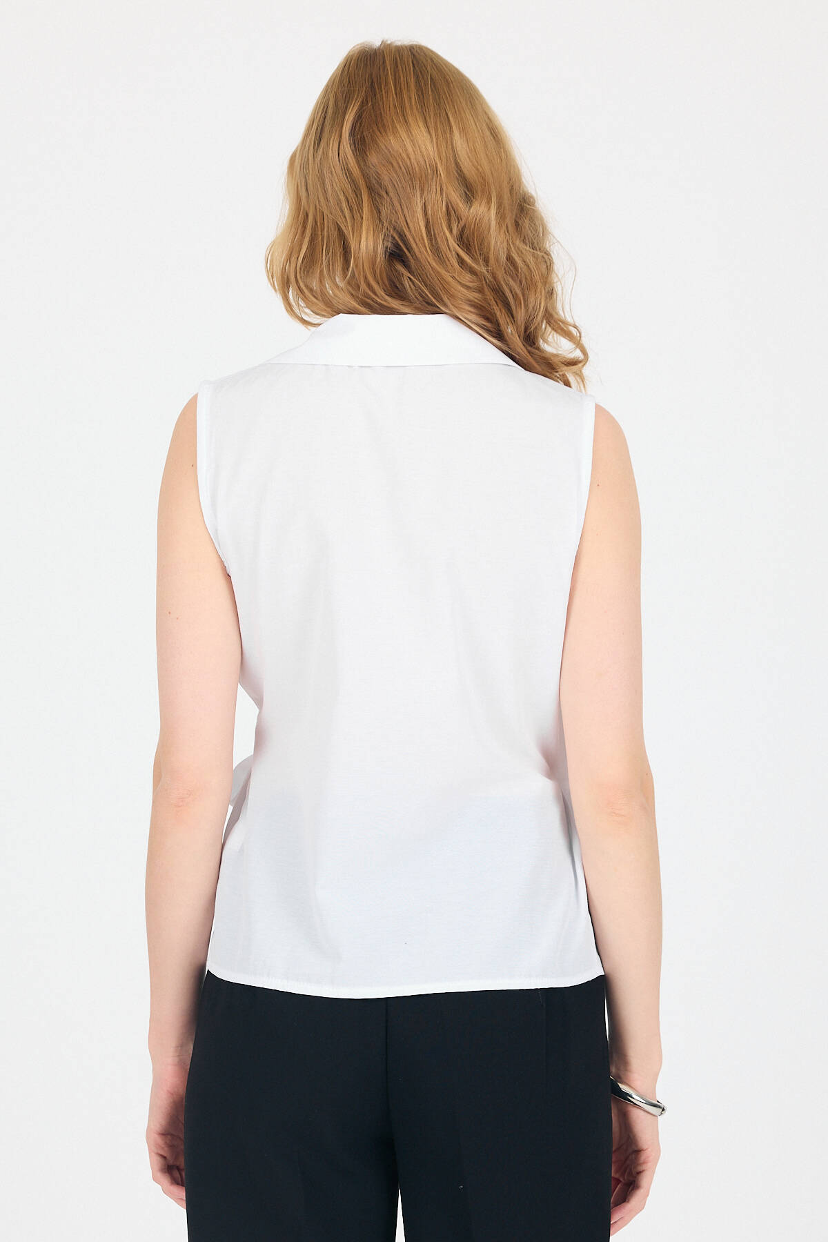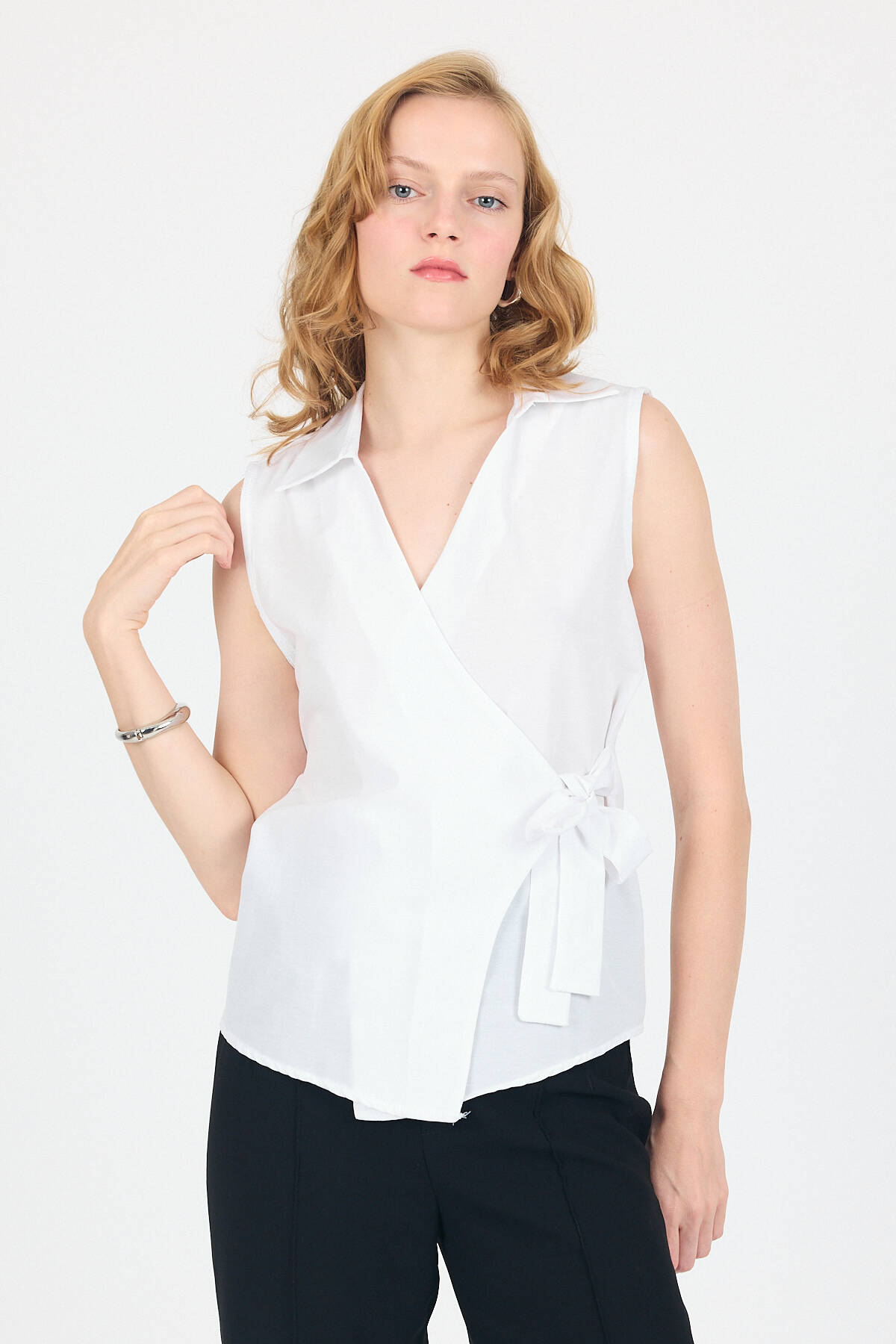 Beyaz Yan Bağlama Detaylı Kolsuz Kruvaze Bluz 8047