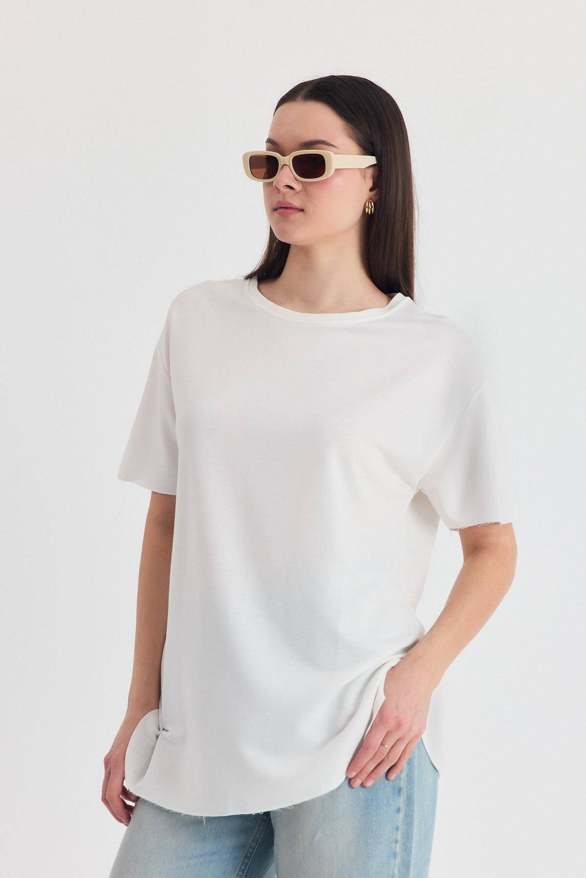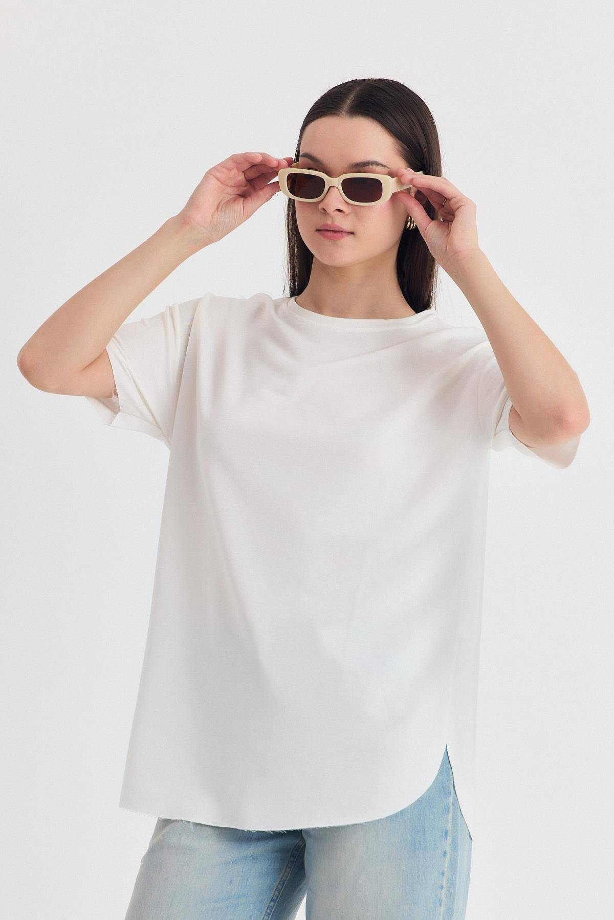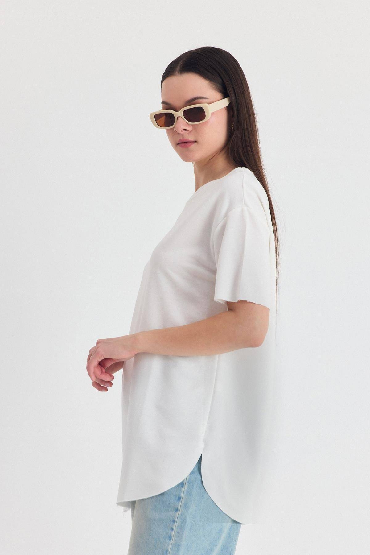Beyaz Yumuşak Dokulu Esnek Premium Kumaş Lazer Kesim Oversize Tişört 1868