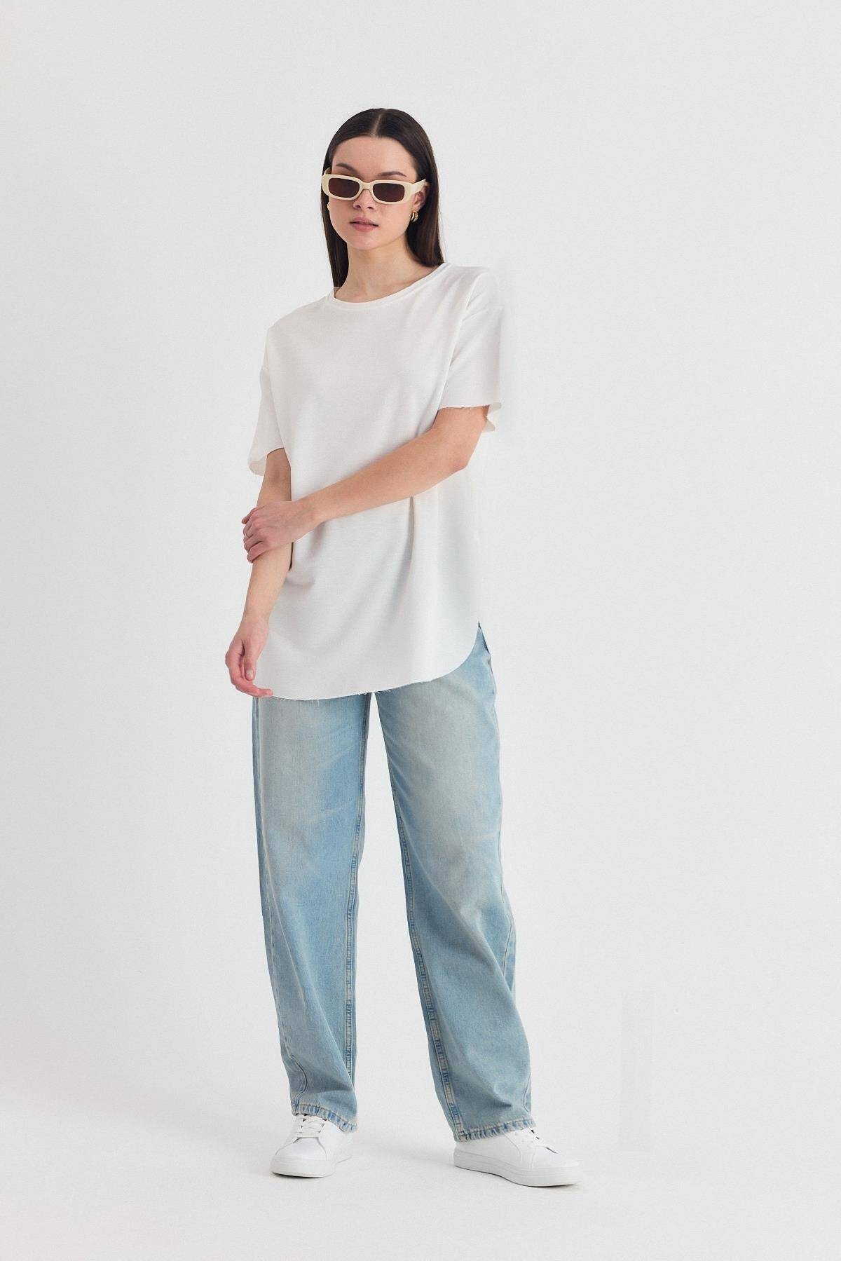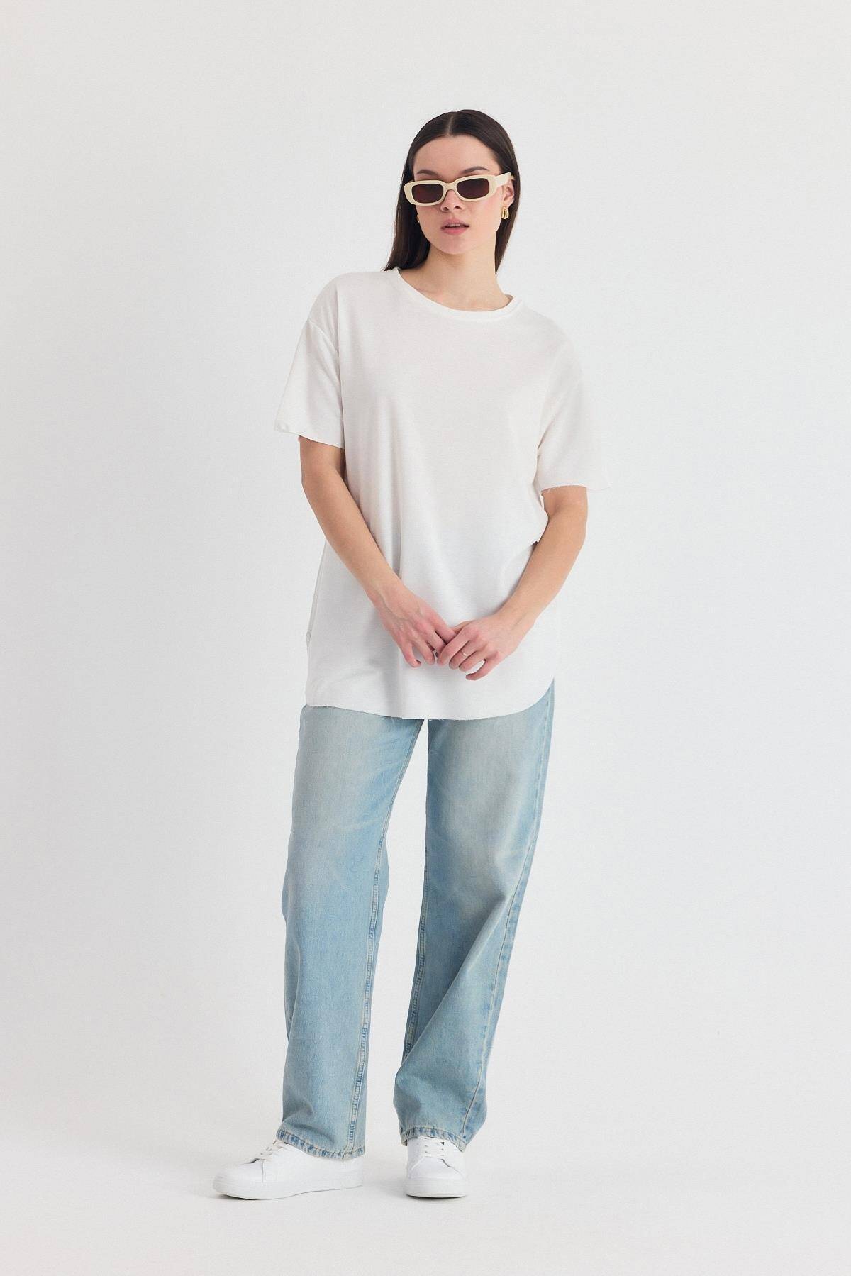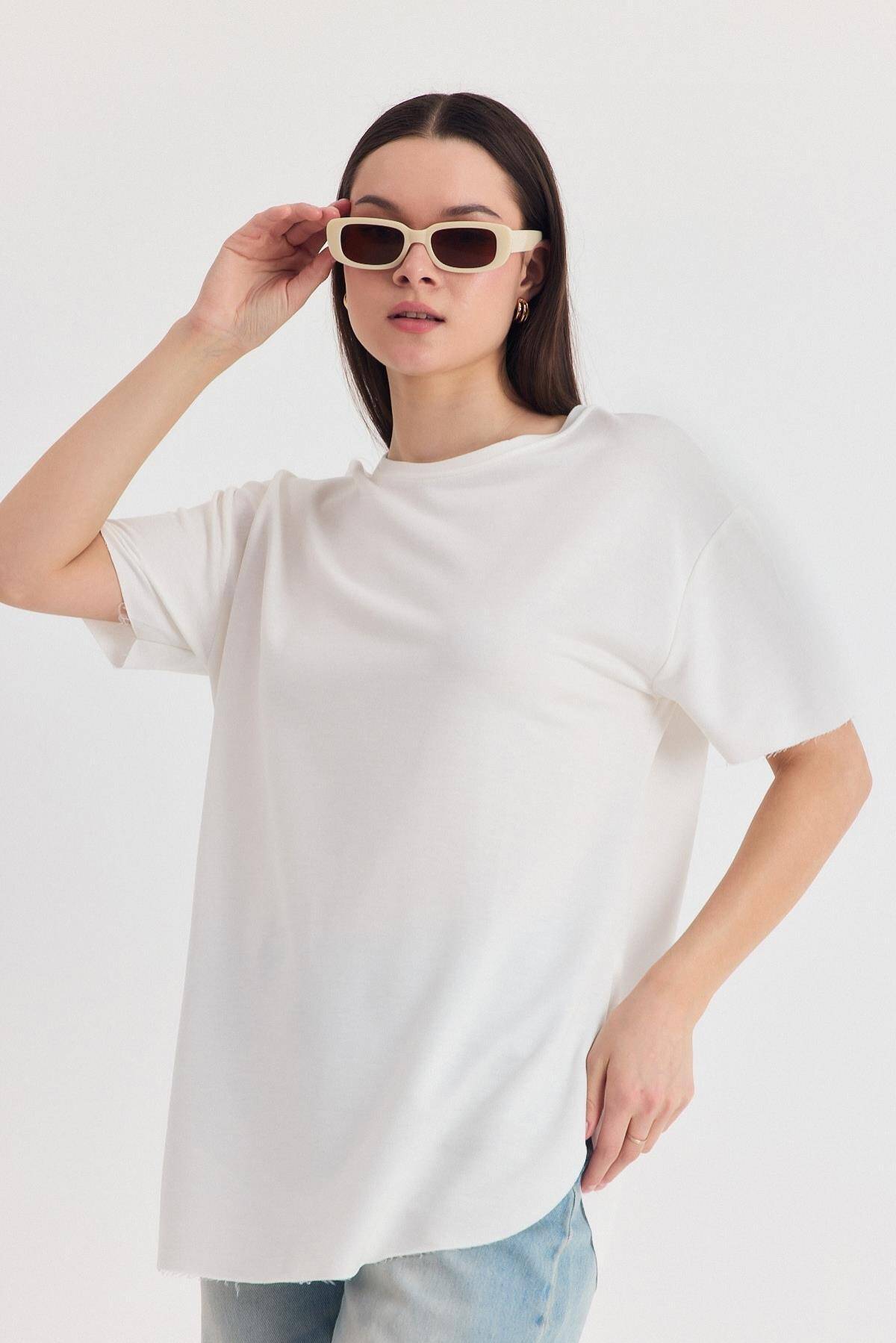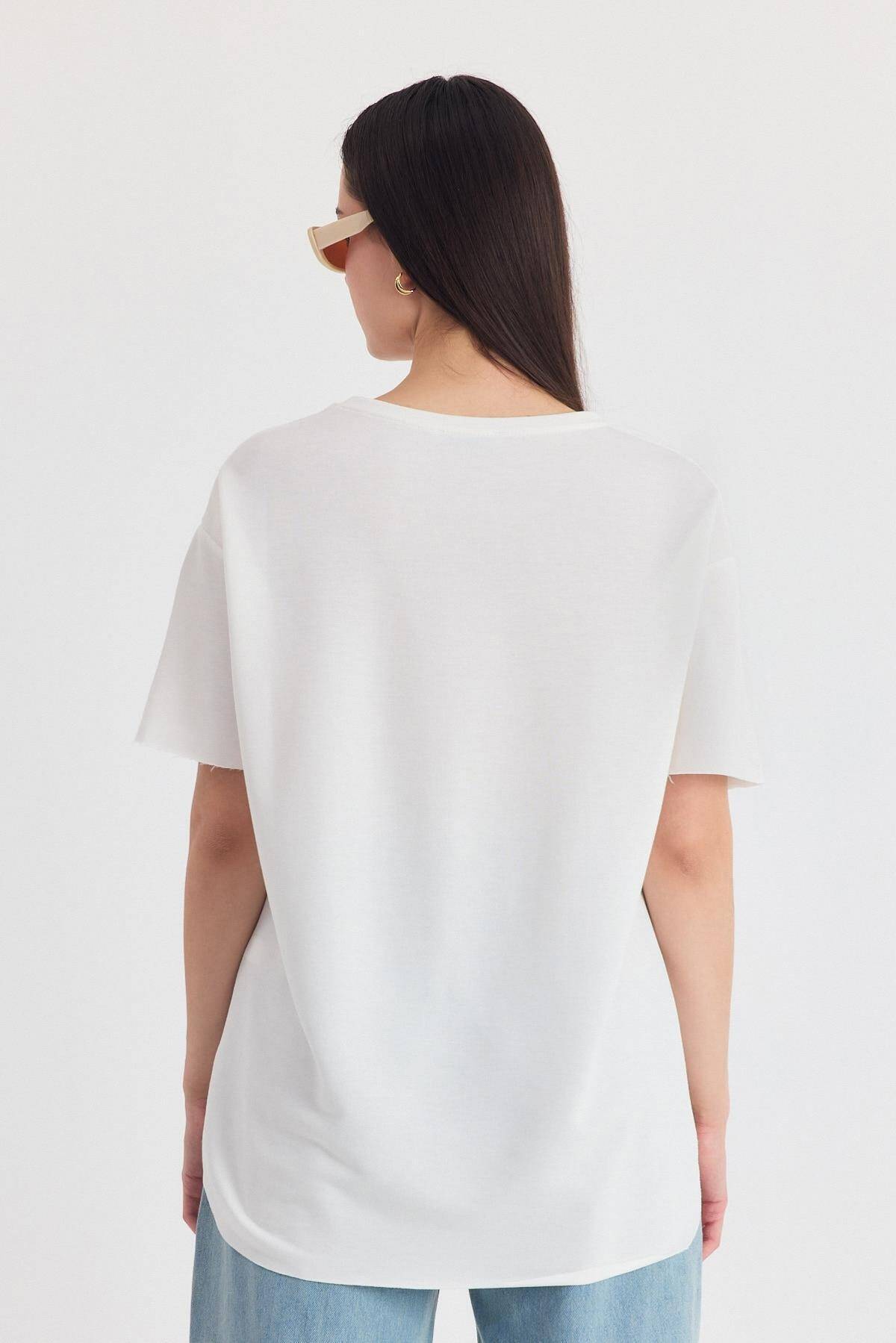 Beyaz Yumuşak Dokulu Esnek Premium Kumaş Lazer Kesim Oversize Tişört 1868
