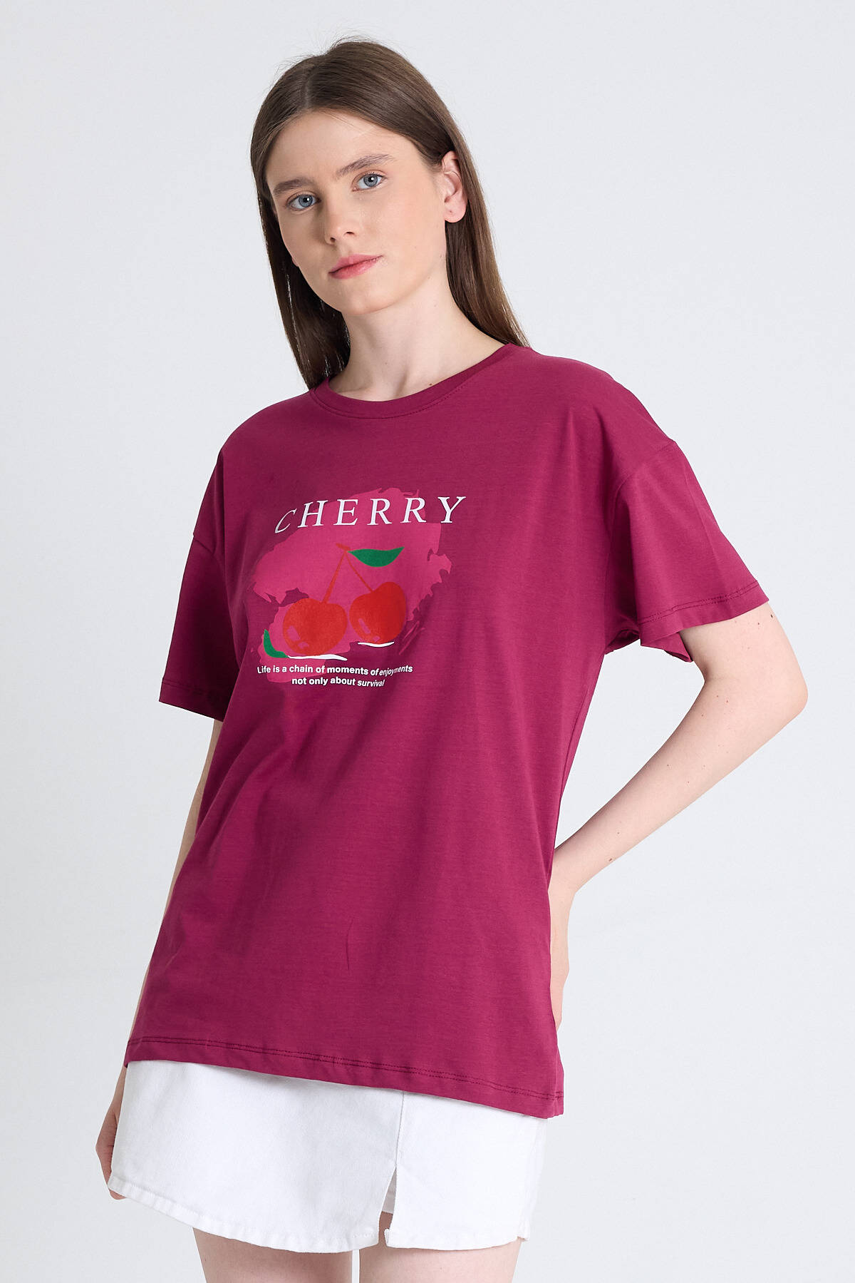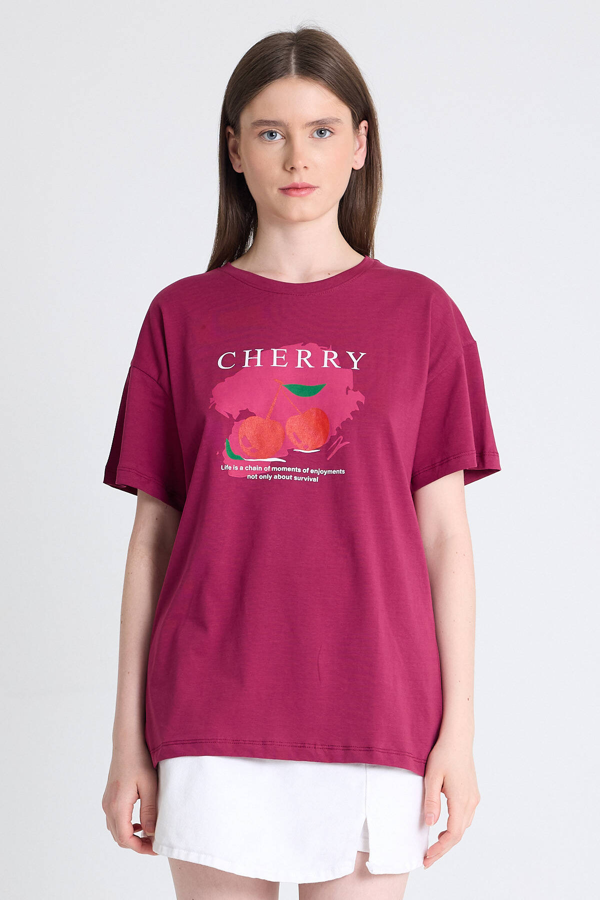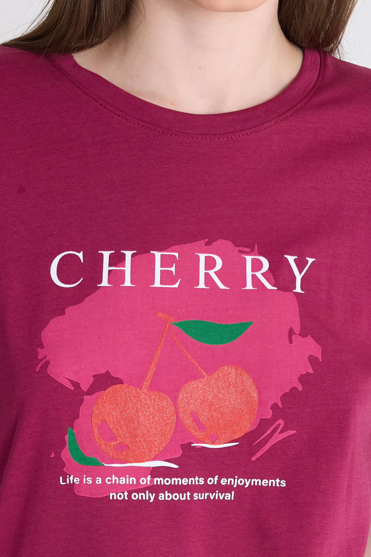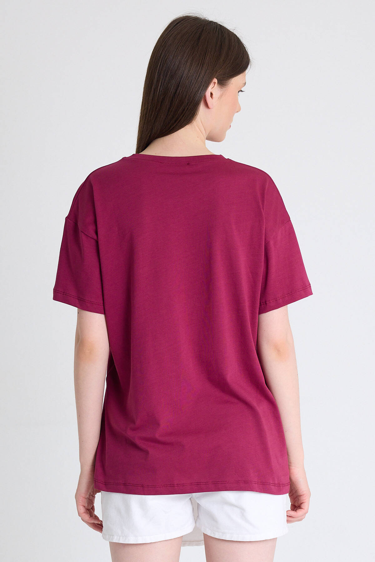 Bordo %100 Pamuk Yazı Baskılı Tişört 2150-15M