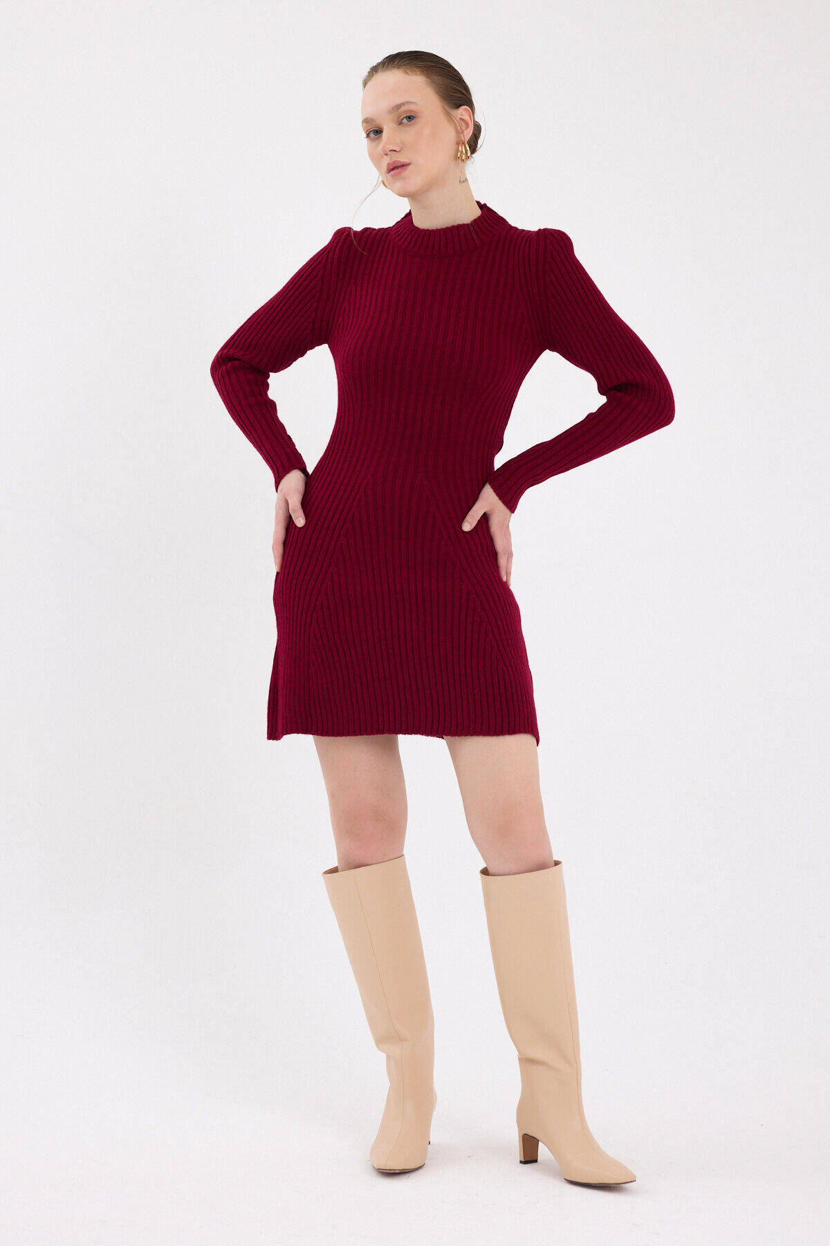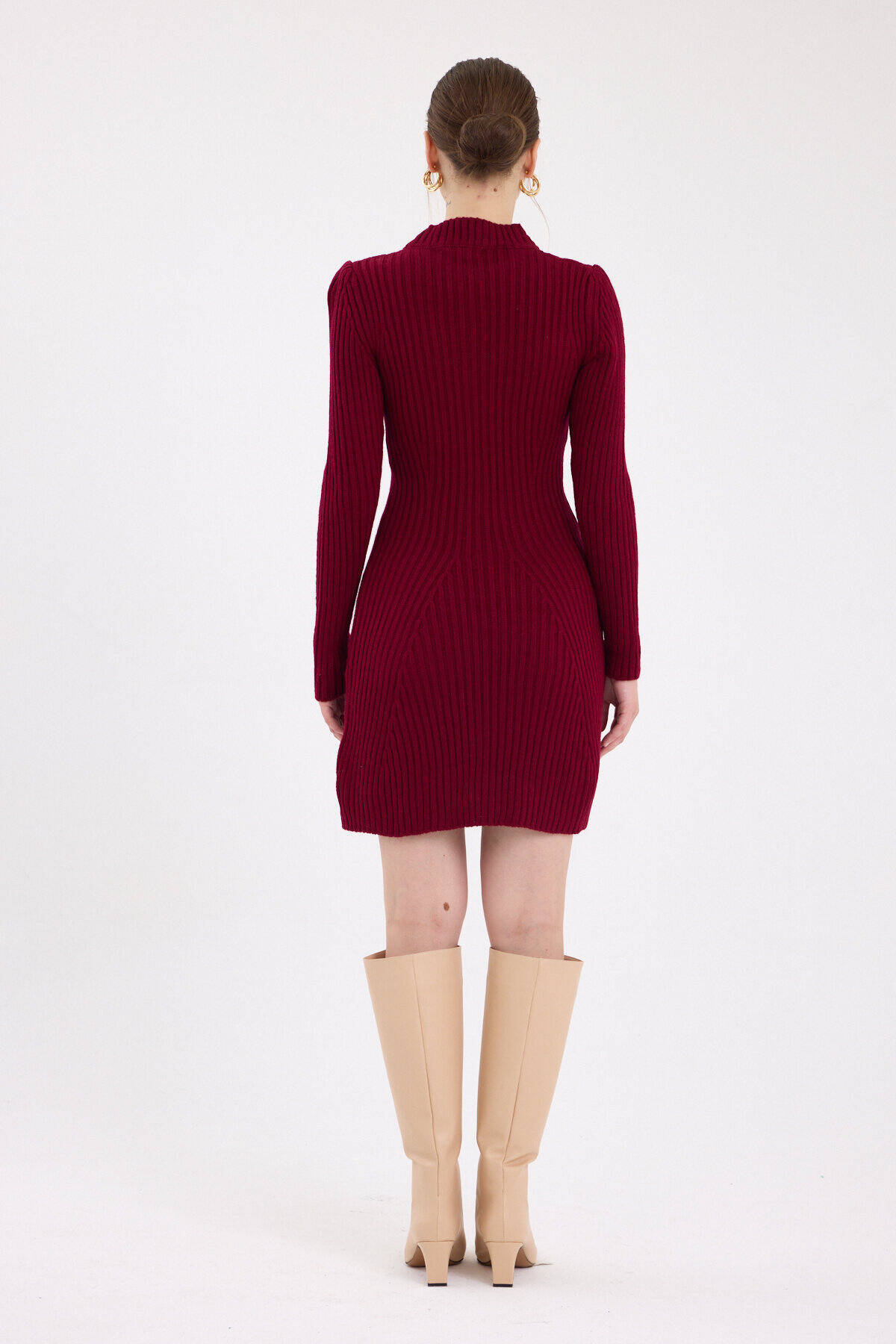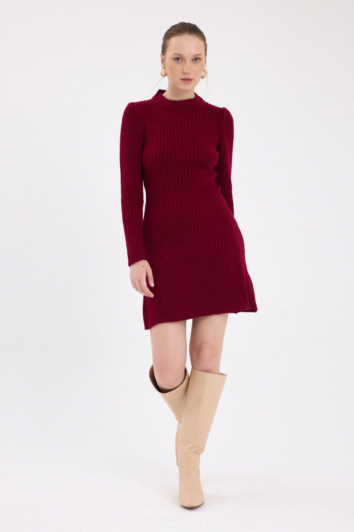 Bordo Balıkçı Yaka Triko Mini Elbise 1907