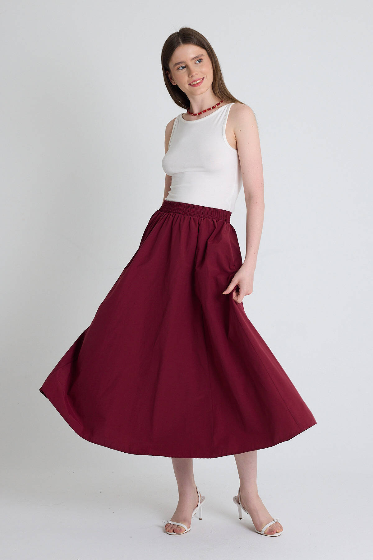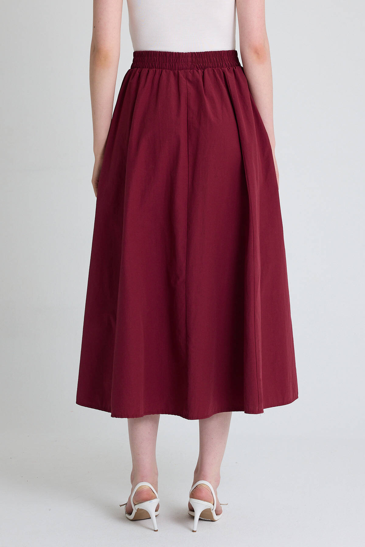 Bordo Cep Detay Mevlana Midi Etek 3950