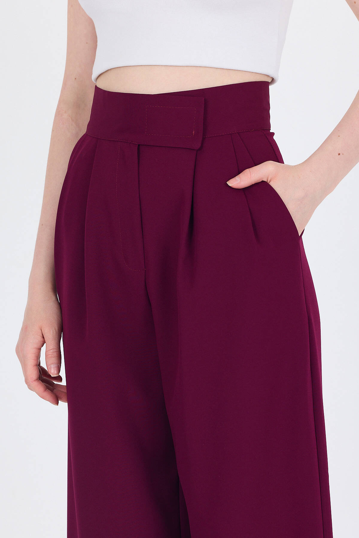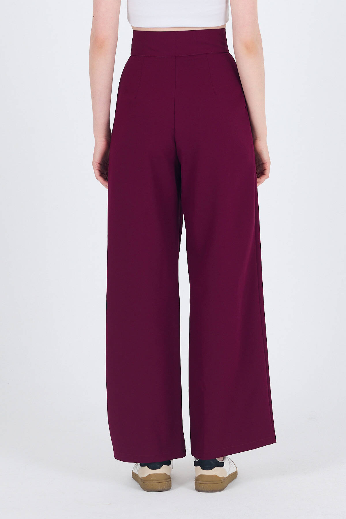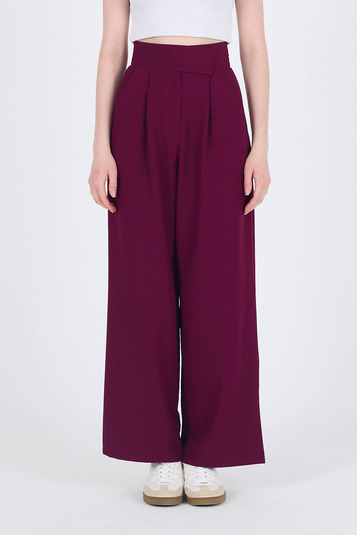 Bordo Cırt Kapama Detaylı Palazzo Pantolon 1615