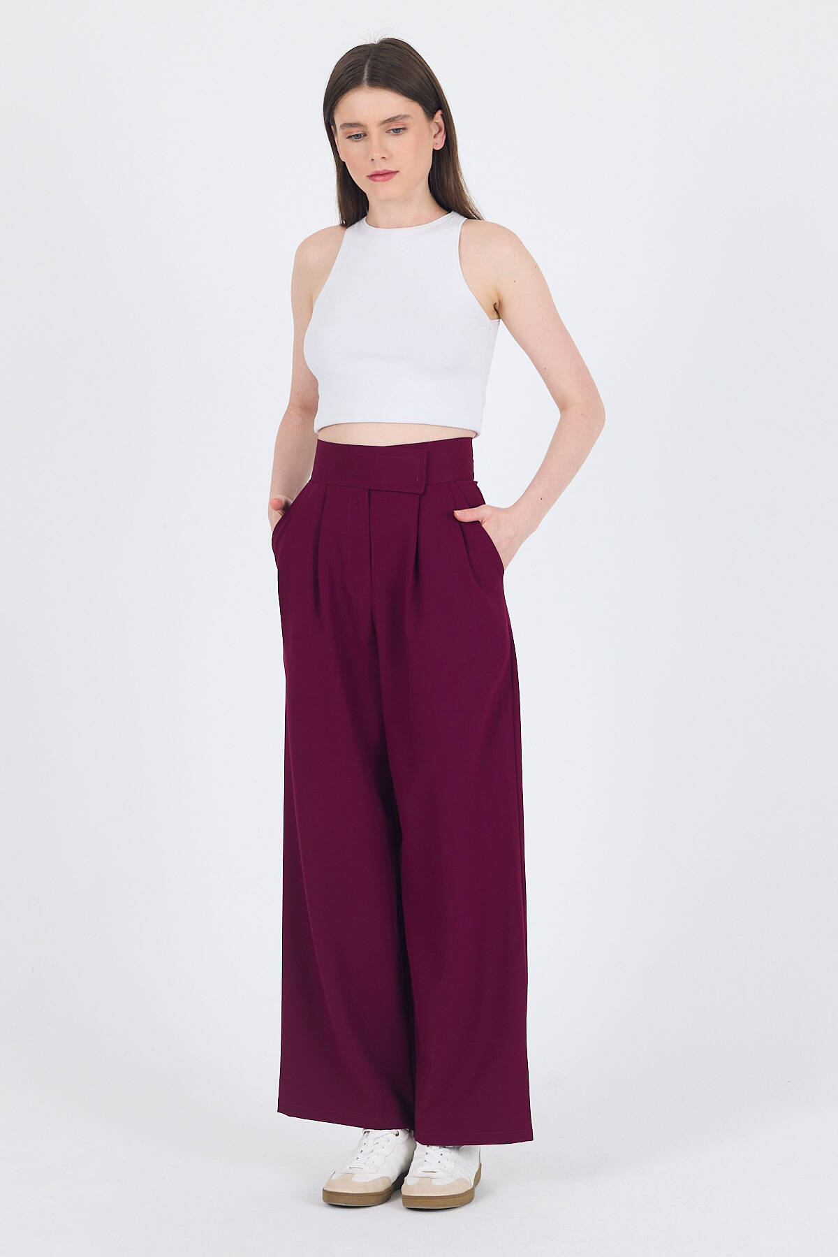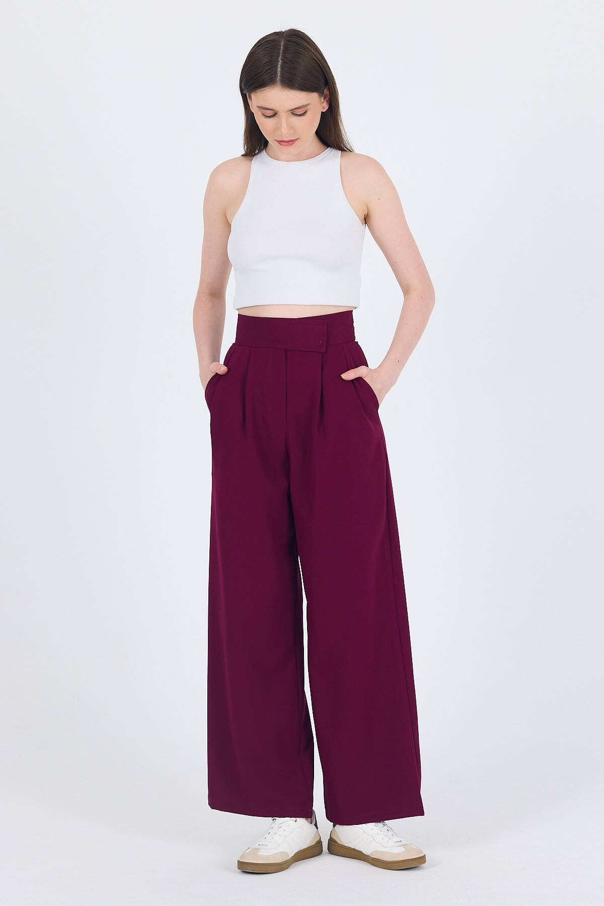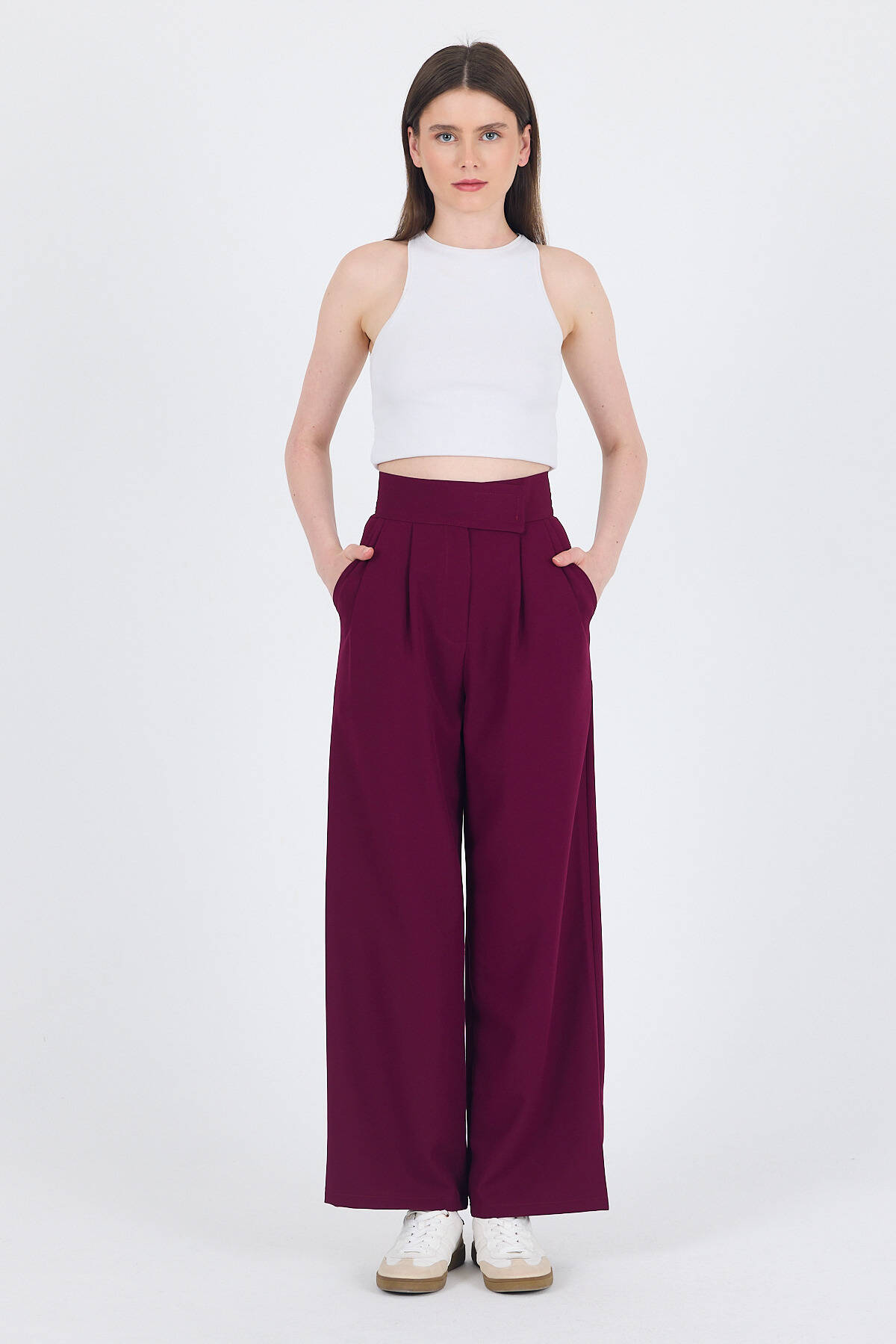 Bordo Cırt Kapama Detaylı Palazzo Pantolon 1615