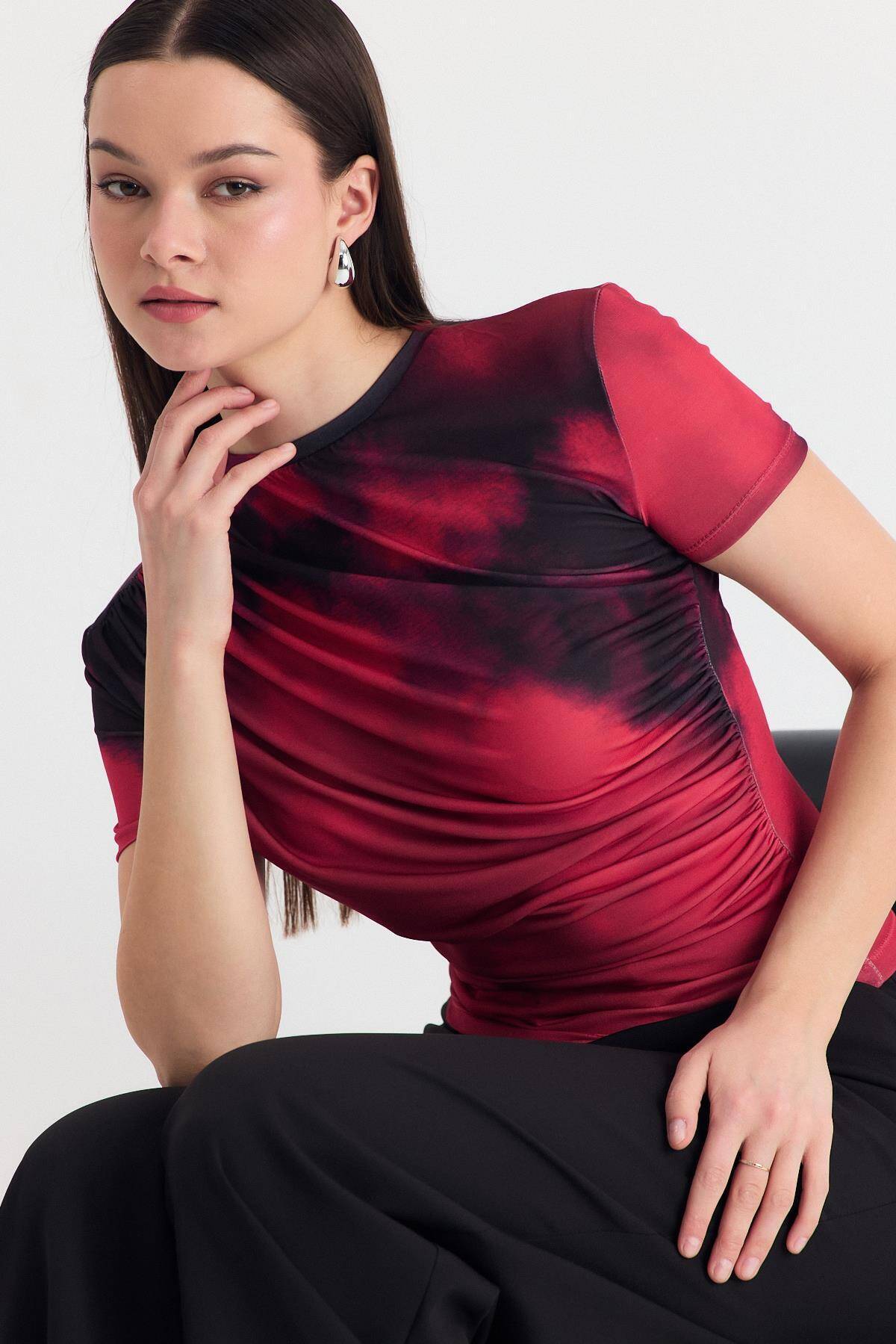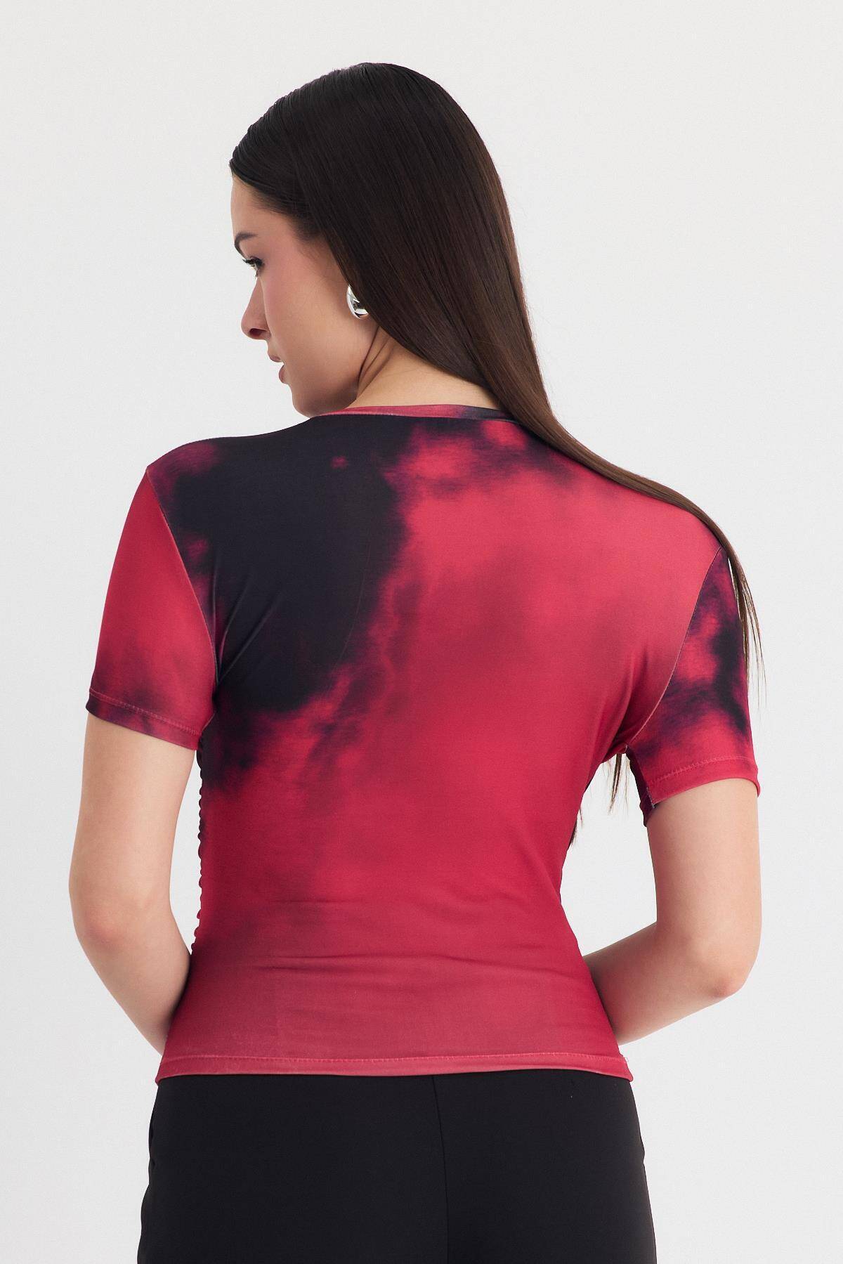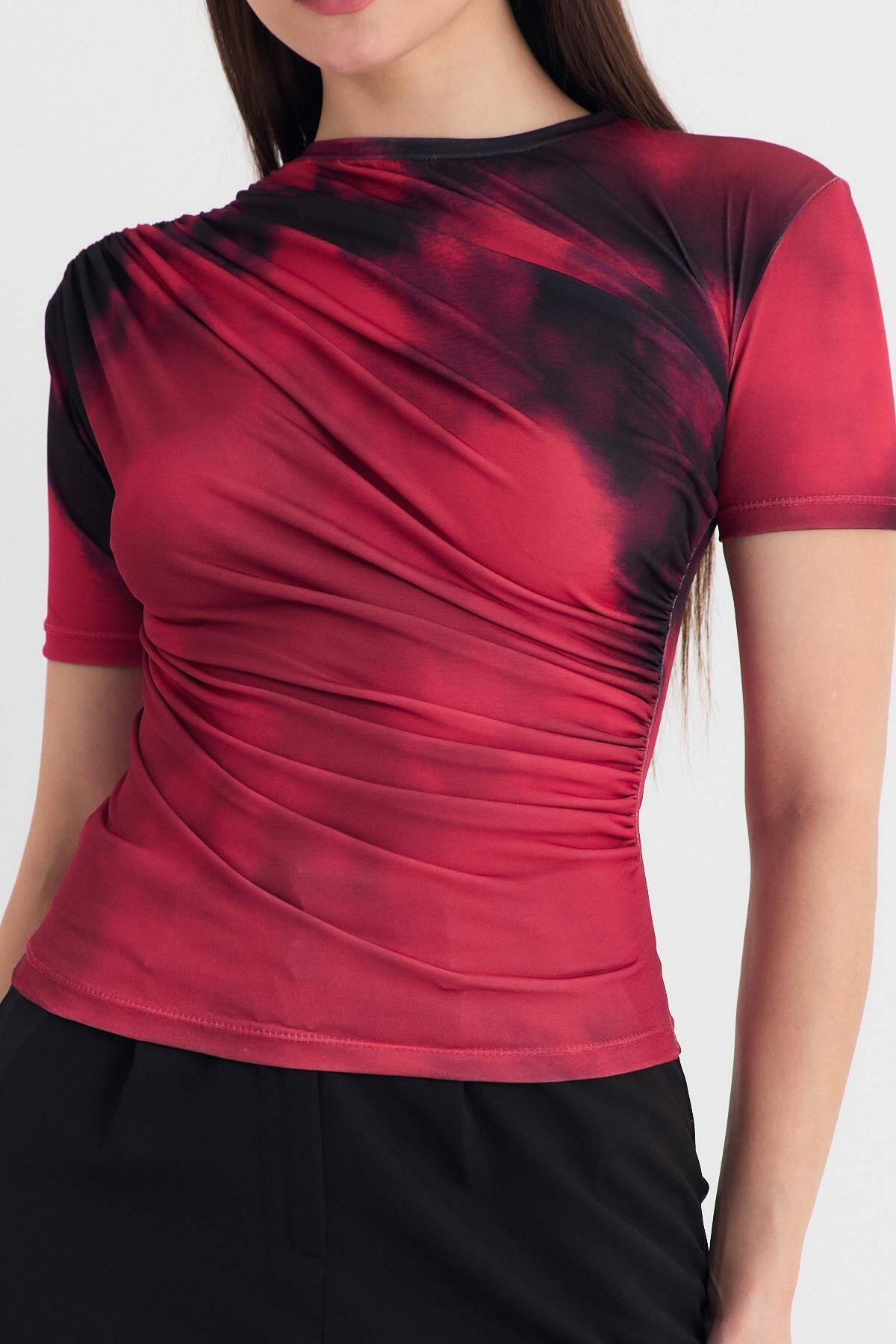 Bordo Desenli Büzgülü Sandy Bluz 12303