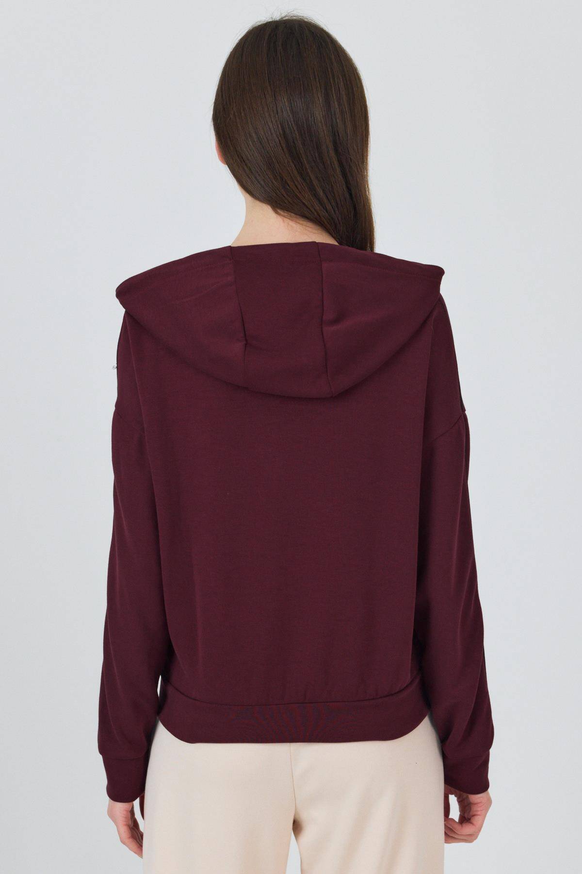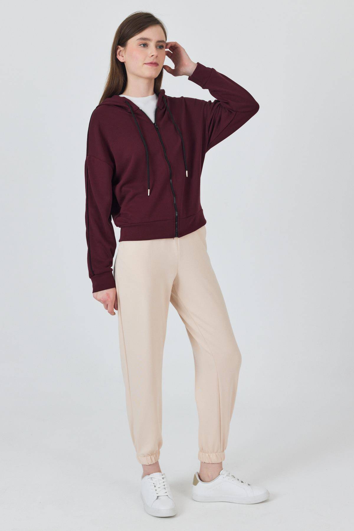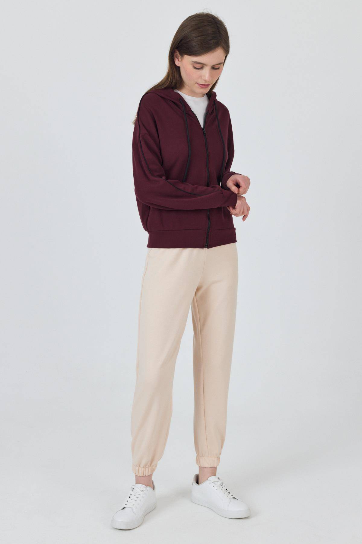Bordo Fermuarlı Kapüşonlu Şerit Detaylı Sweatshirt 3045