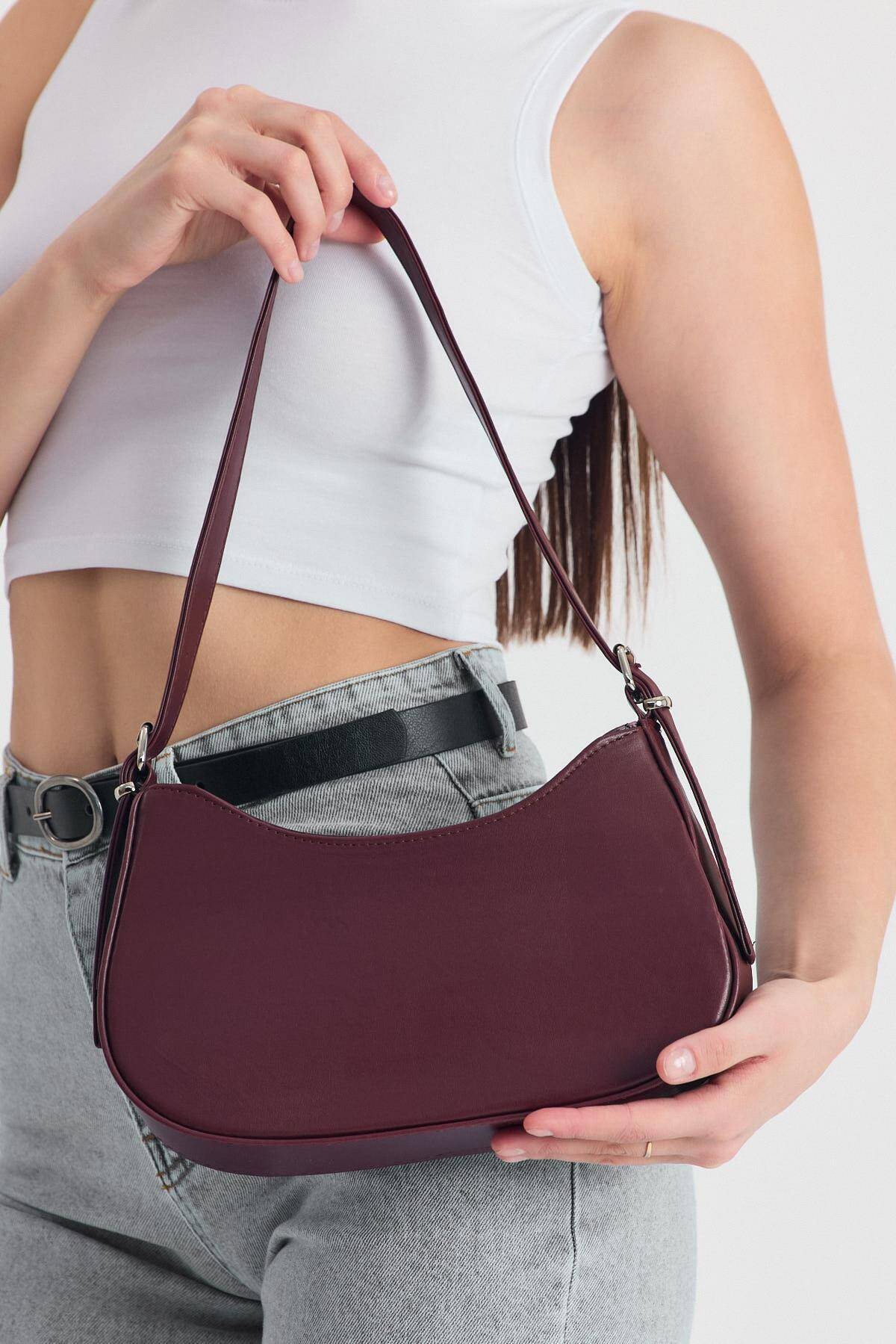 Bordo Oval Baget Çanta 3001