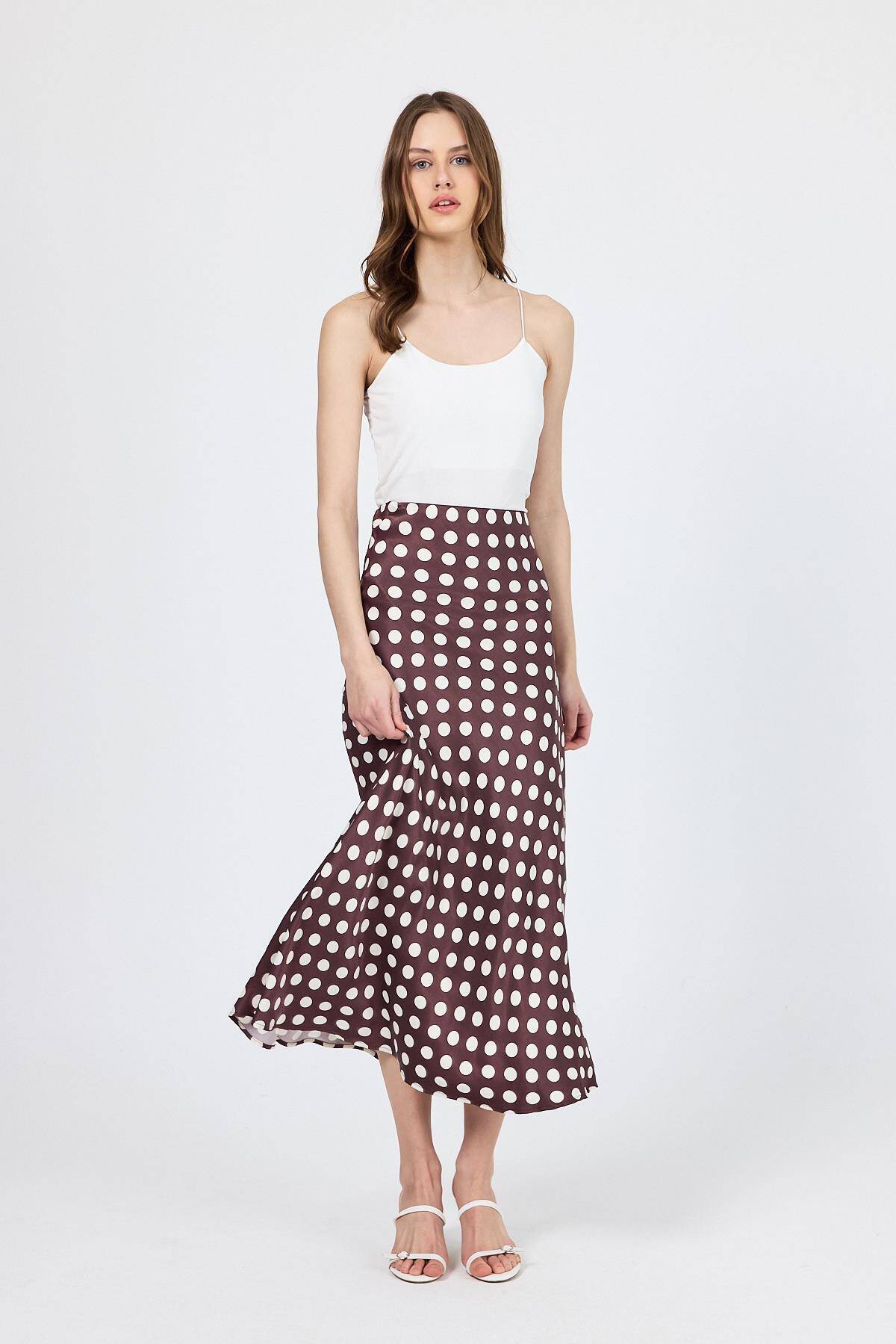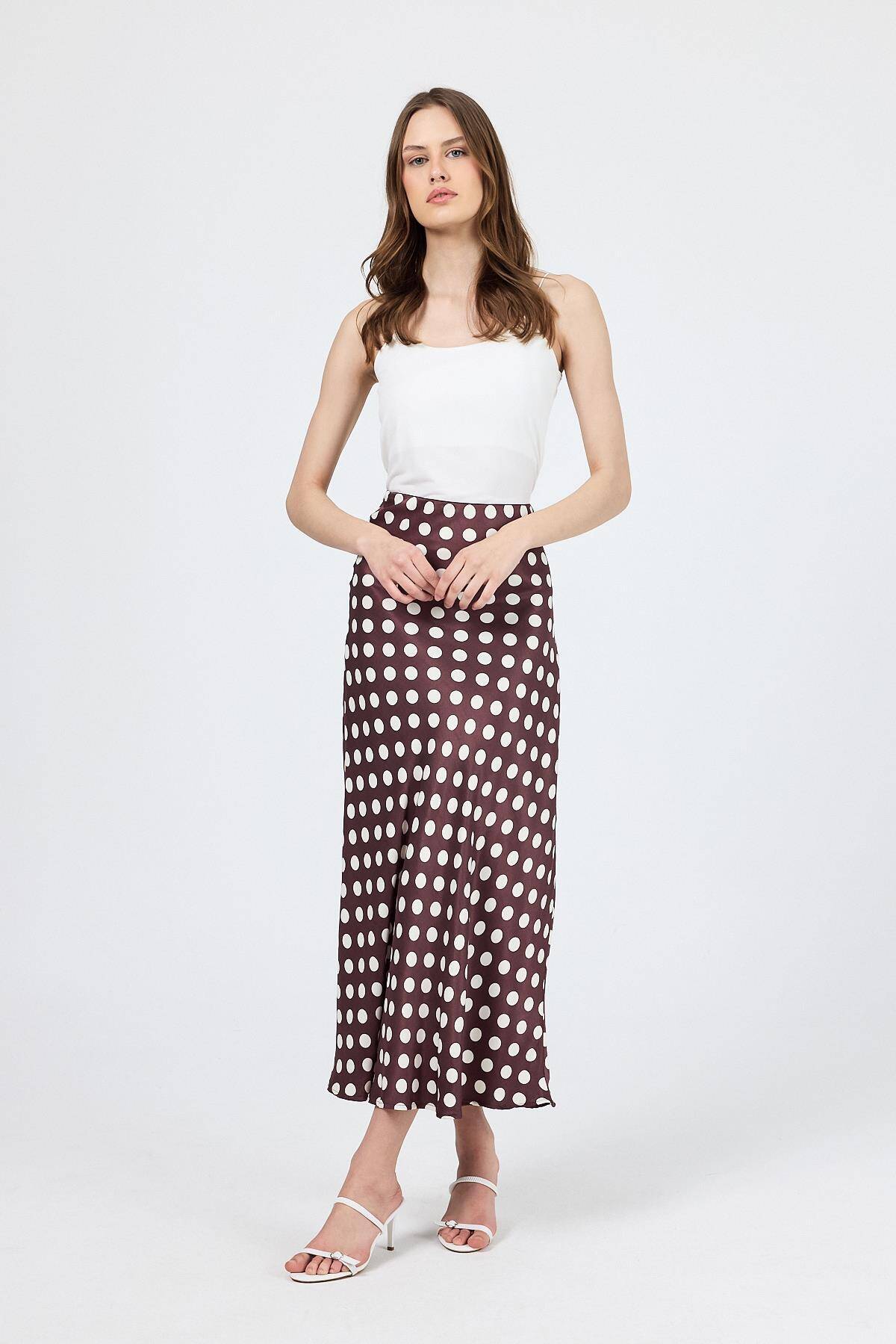 Bordo Puantiye Desen Saten Midi Etek 9416
