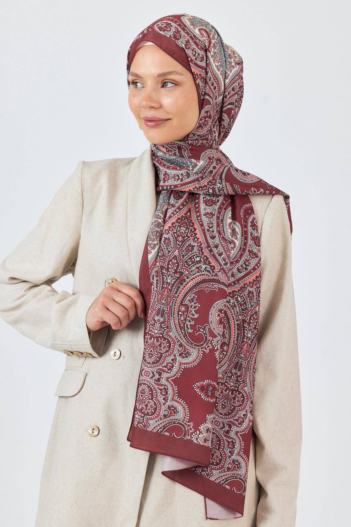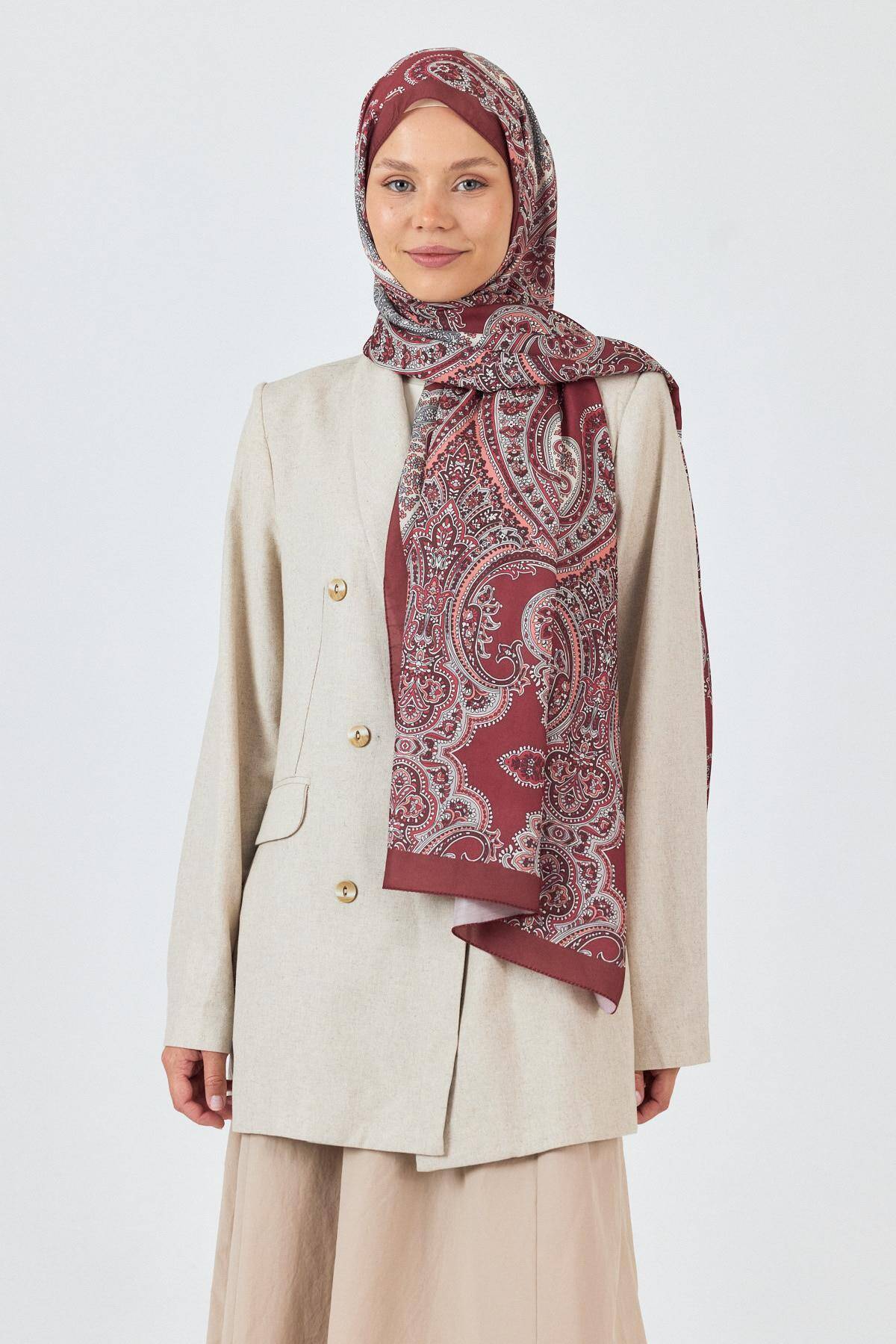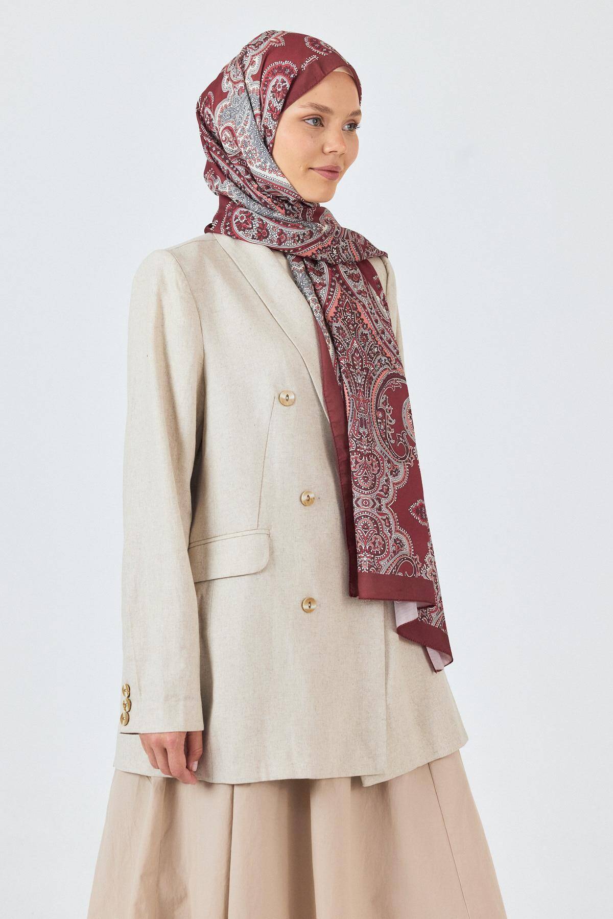 Bordo Retro Desenli Şal 4002