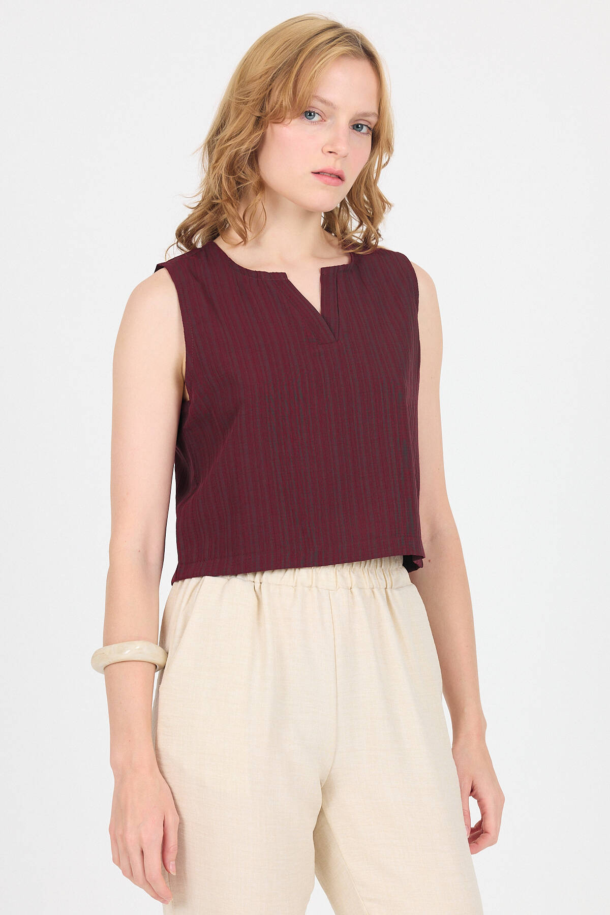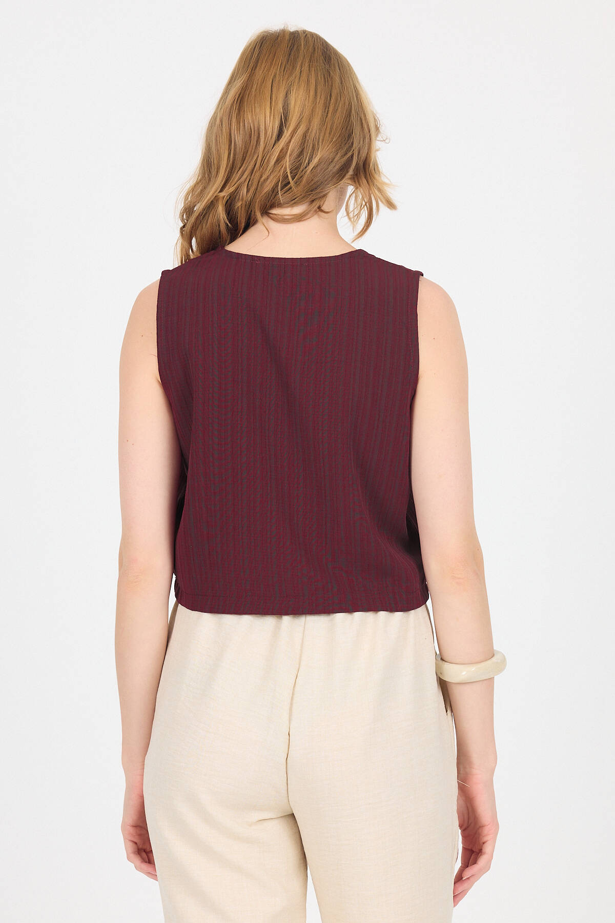Bordo V Yaka Kolsuz Crop Bluz 8027