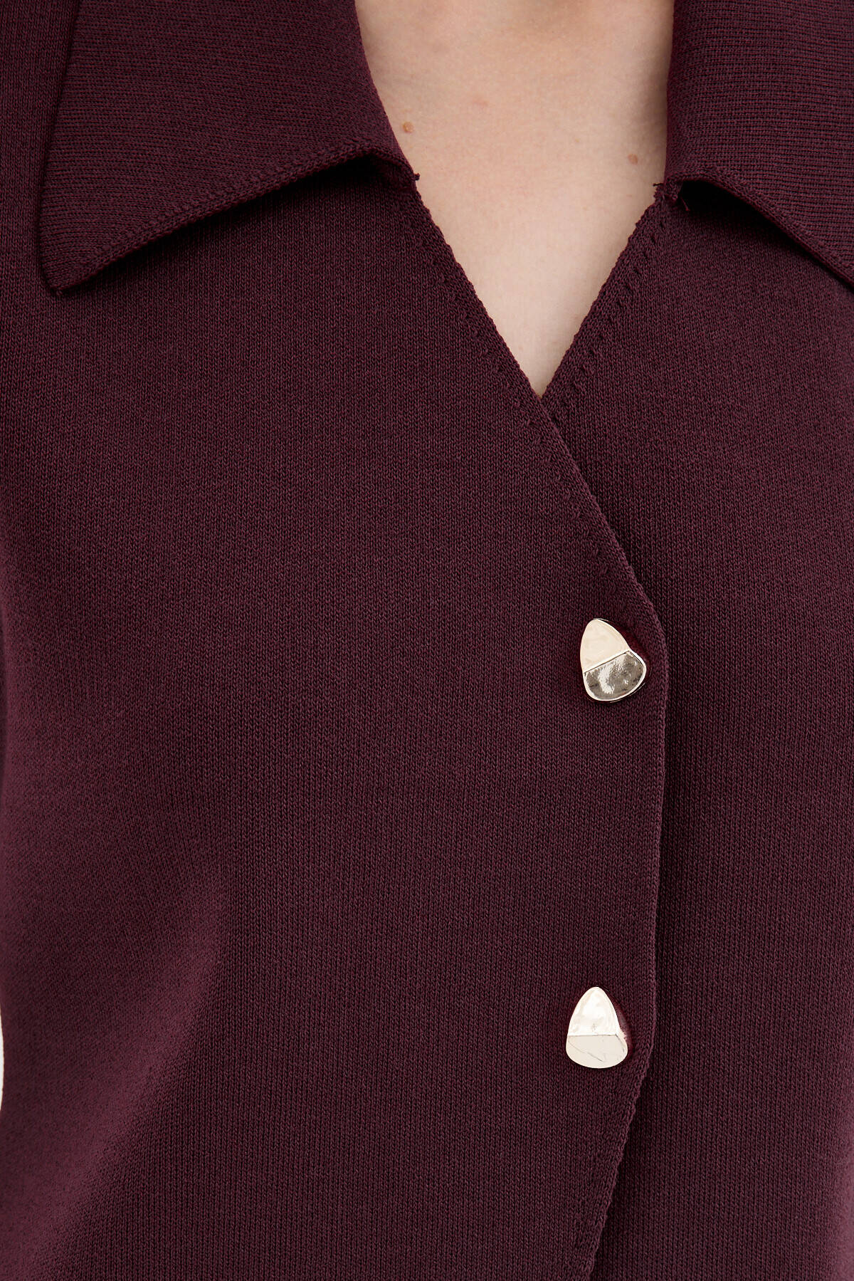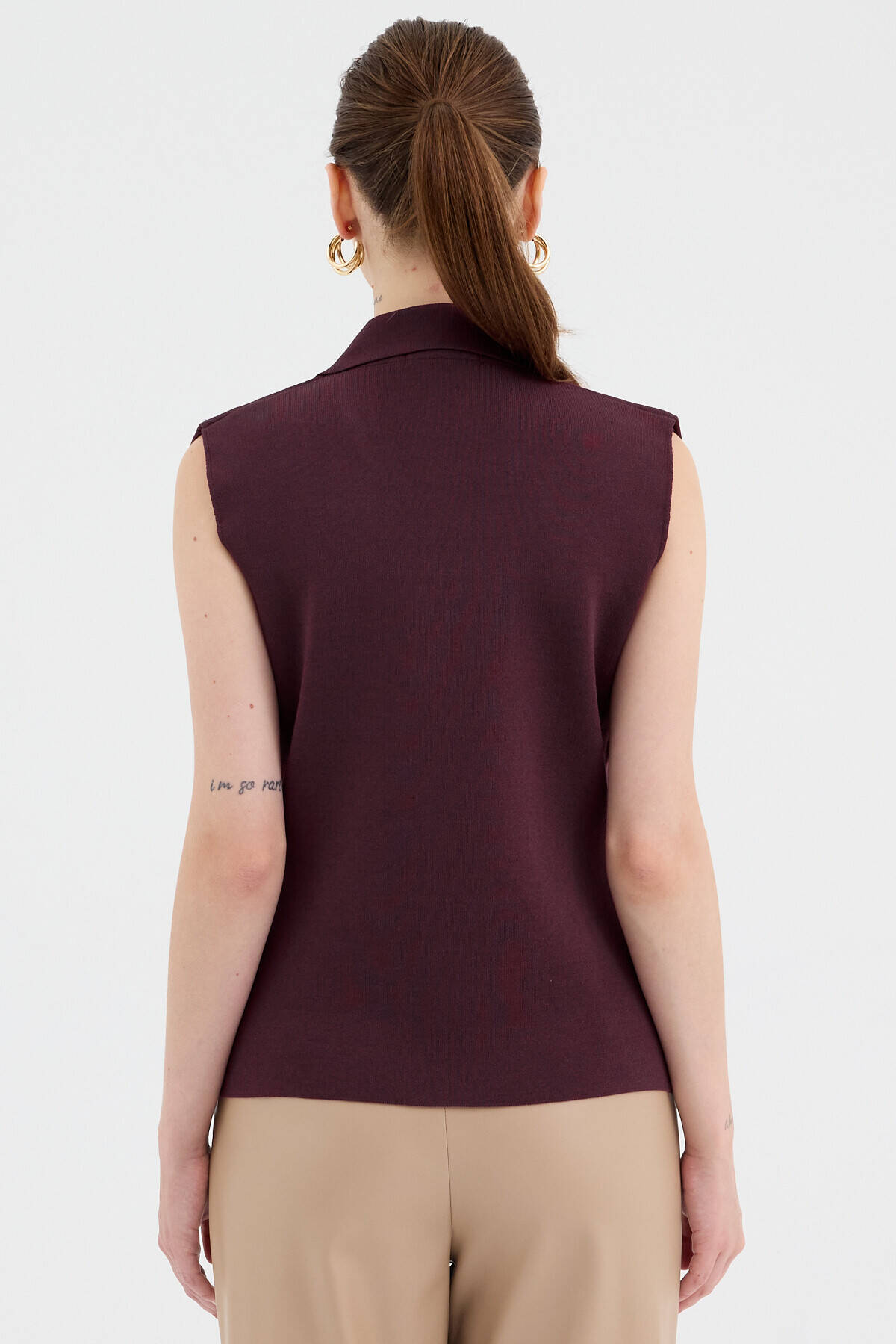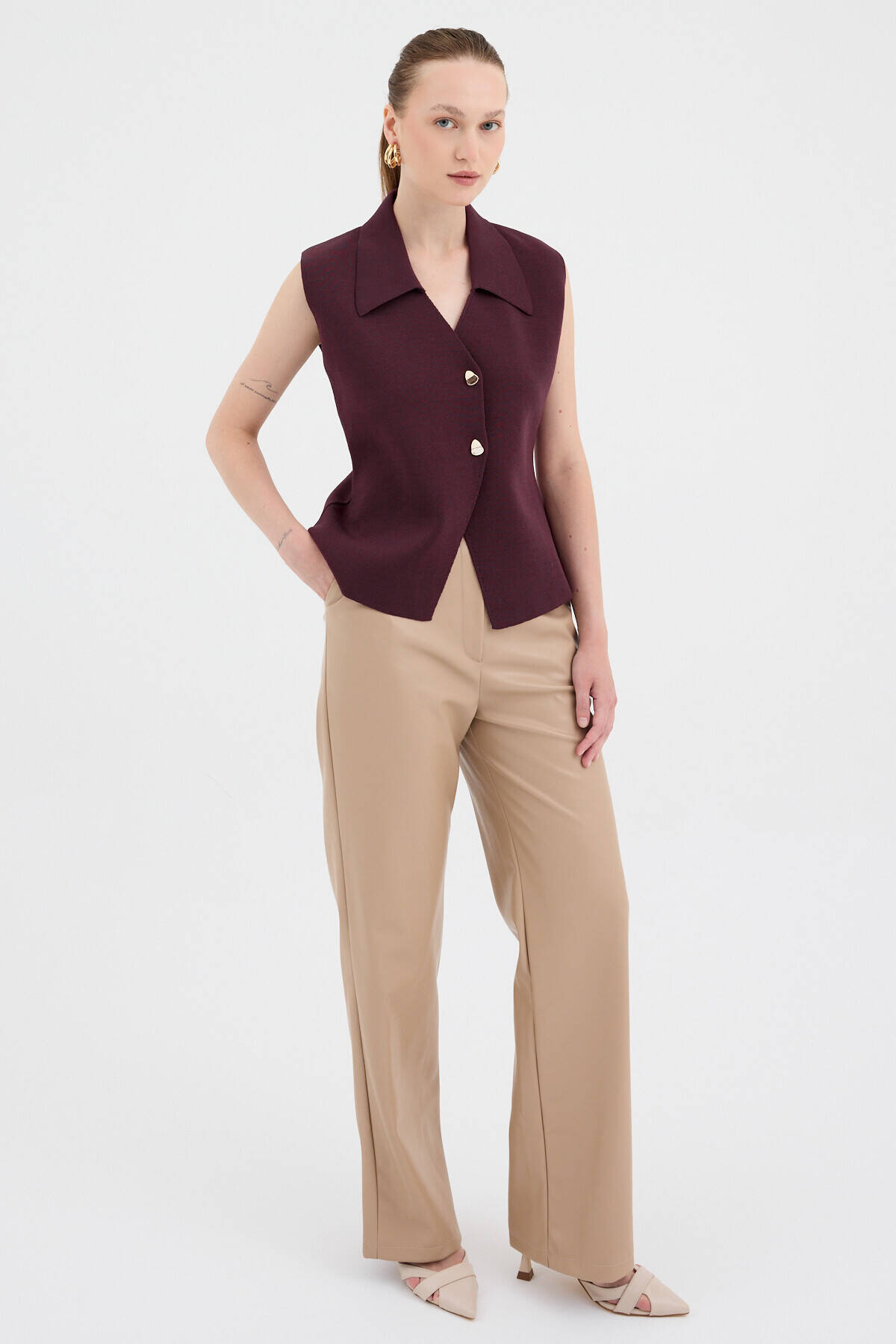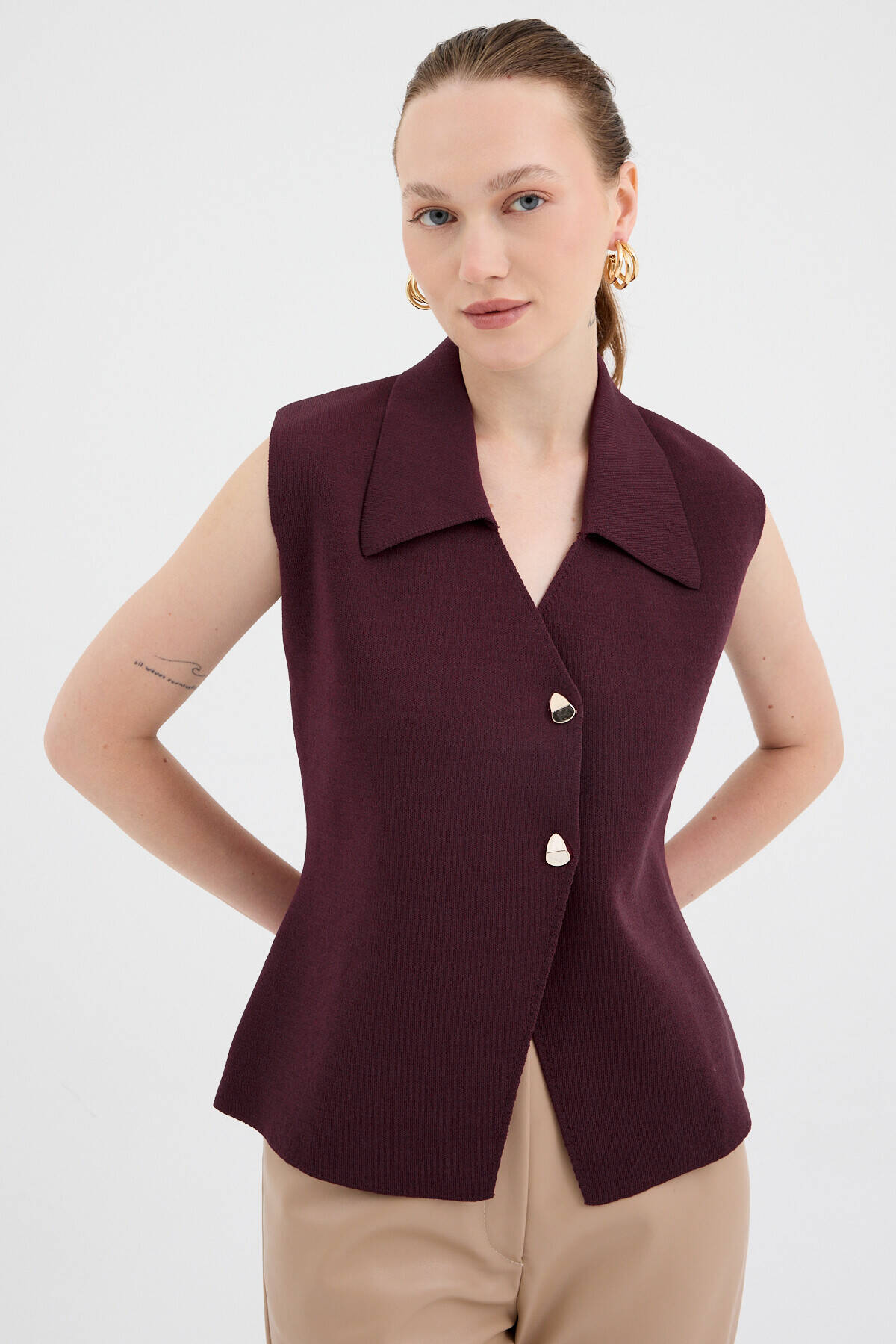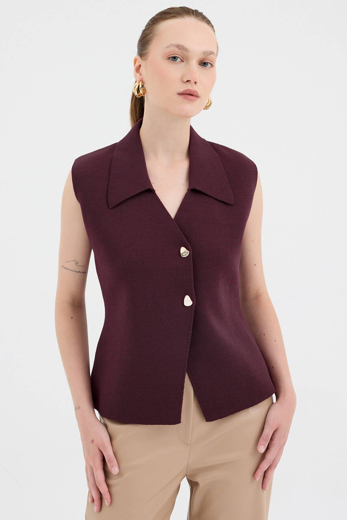 Bordo Yaka Detaylı Düğmeli Triko Kadın Yelek 7355