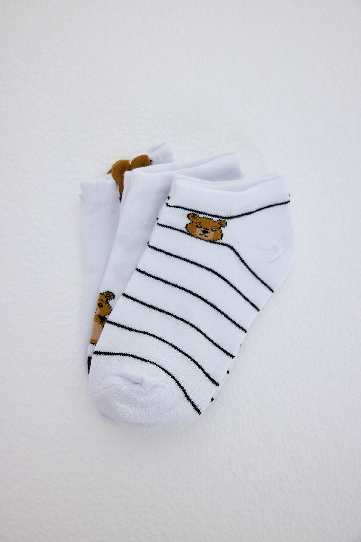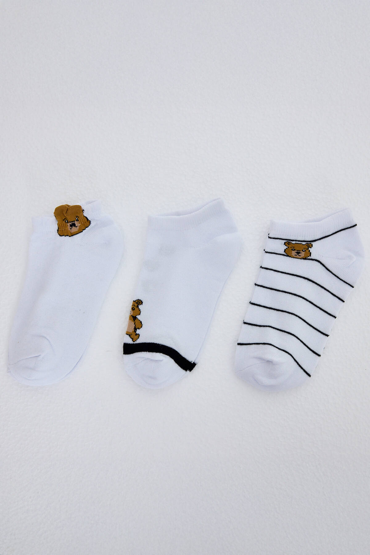 Ekru Ayı Desenli 3'lü Örme Çorap 1212