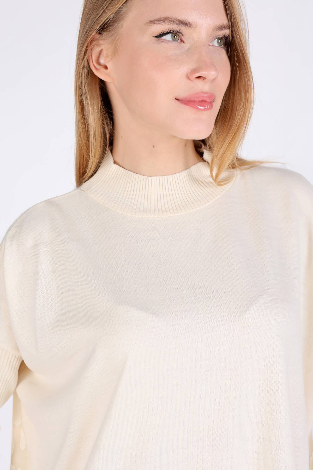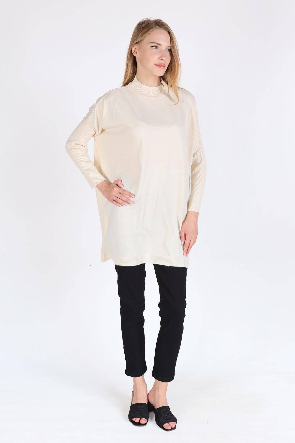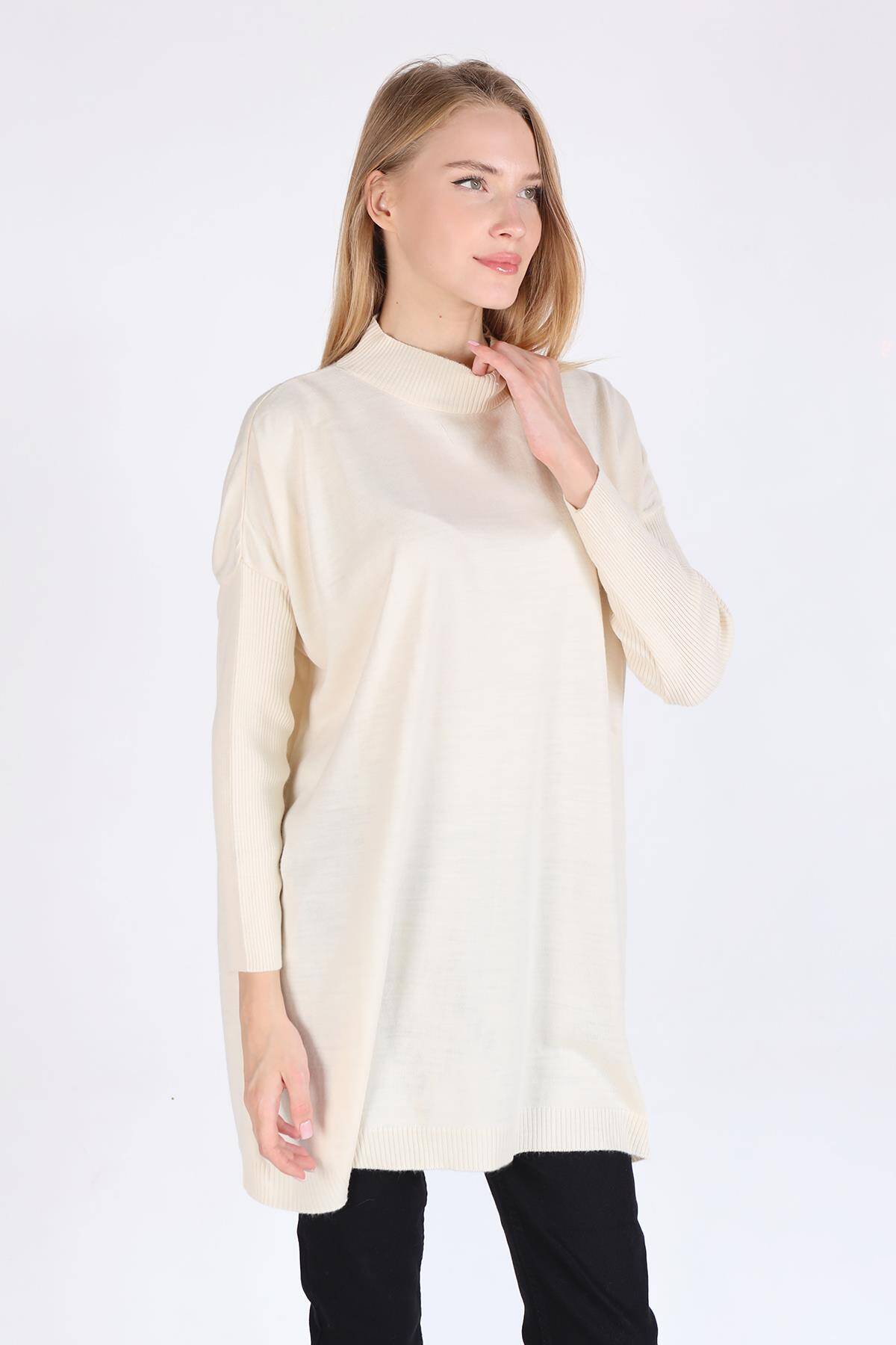 Ekru Balıkçı Yaka Triko Tunik 5315