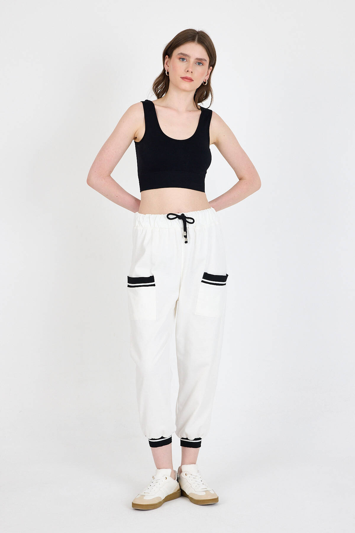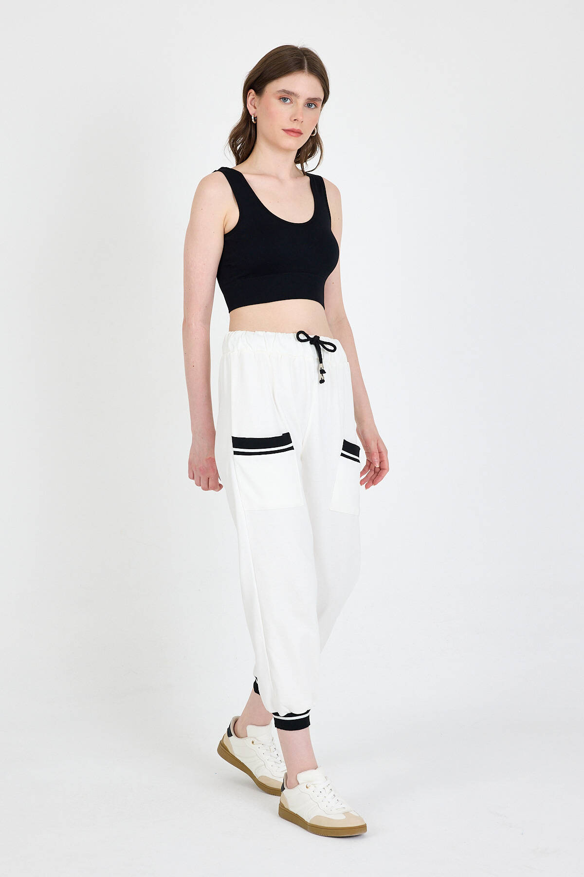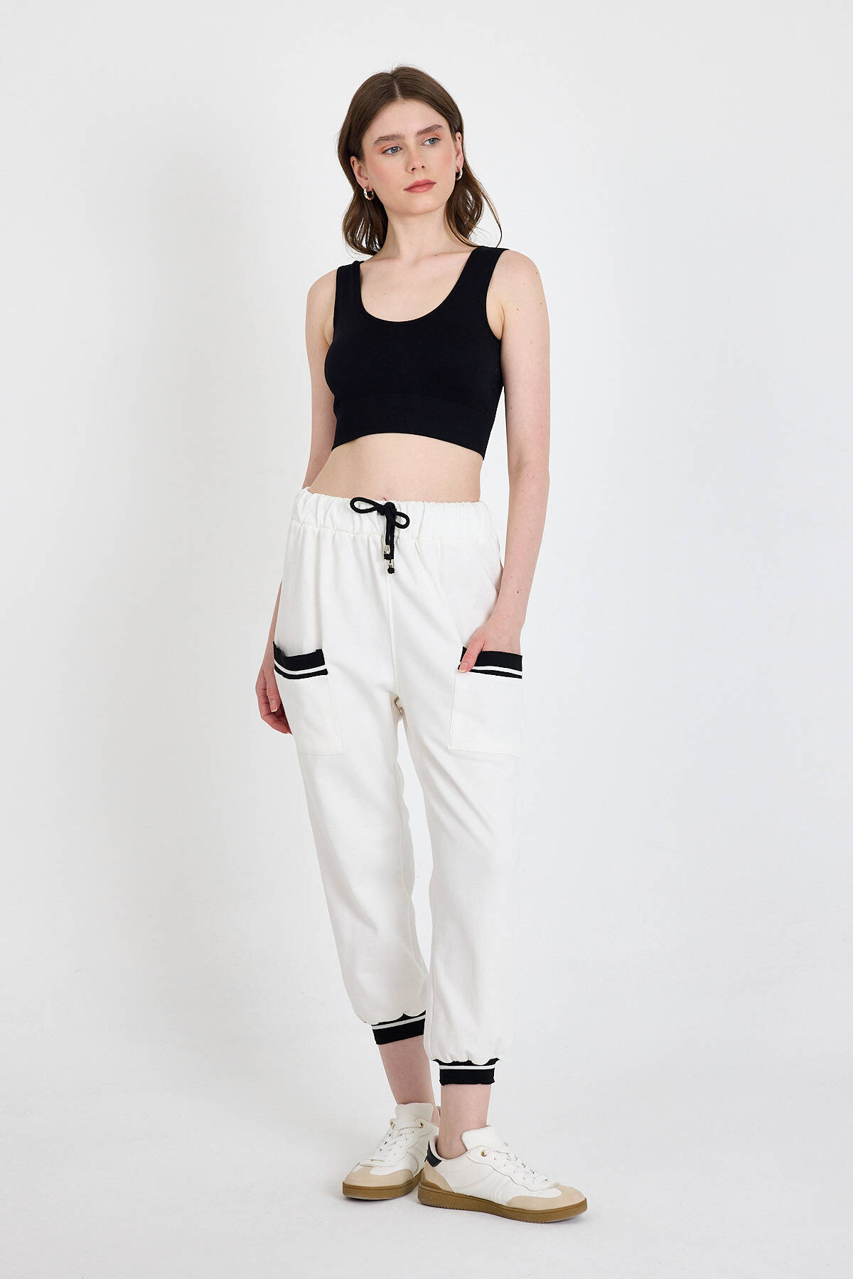 Ekru Bel Lastikli Cepli Şerit Detaylı Jogger Eşofman Altı 81524