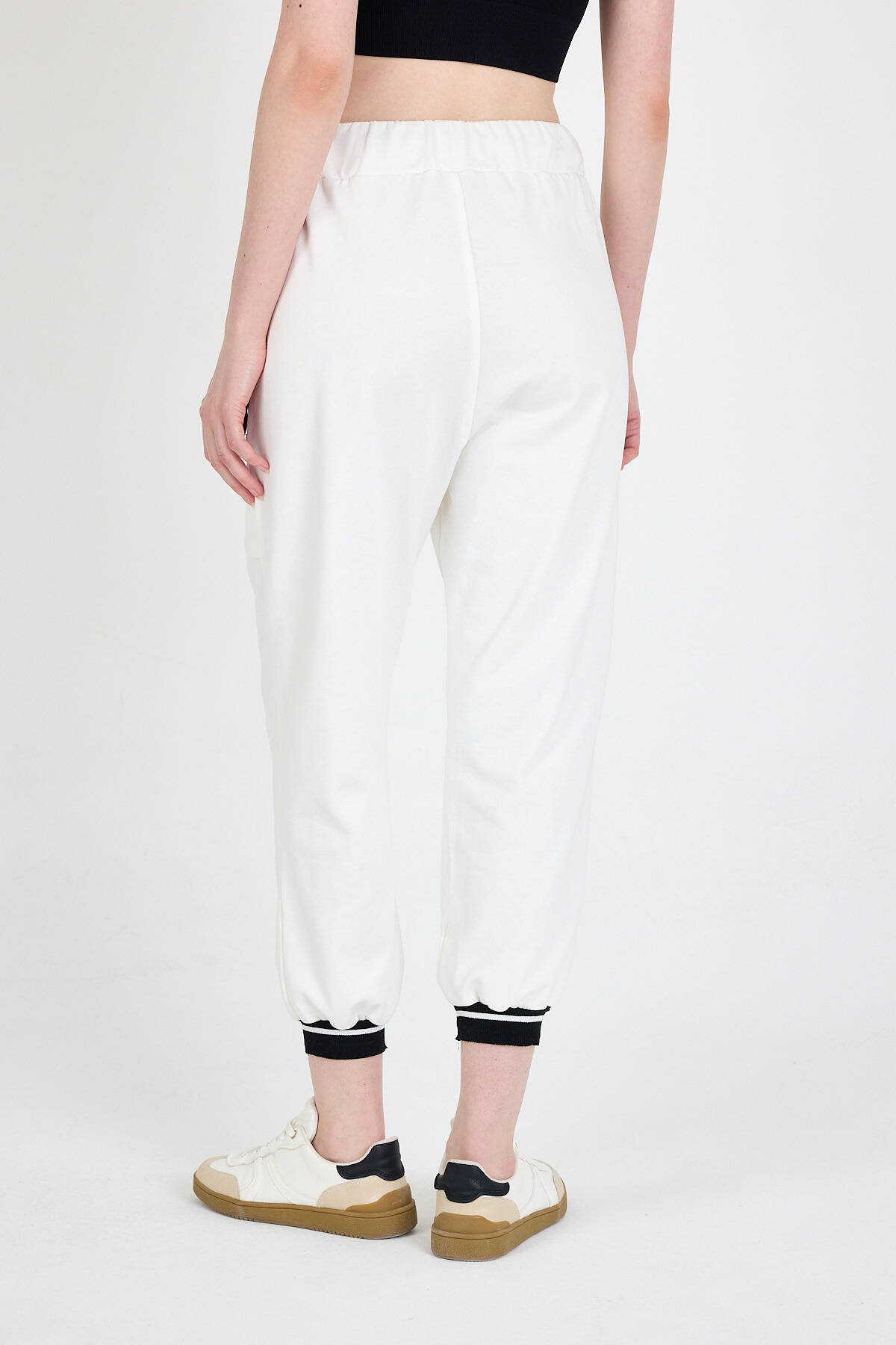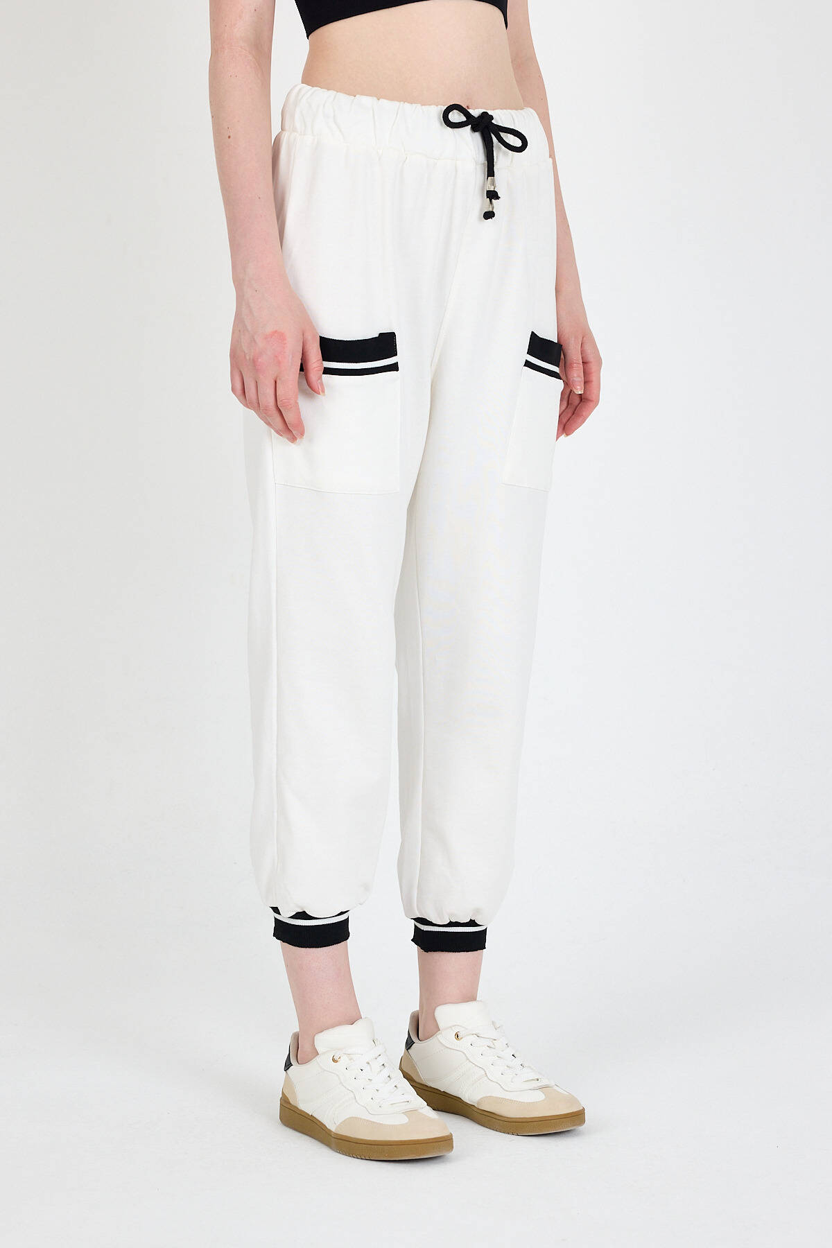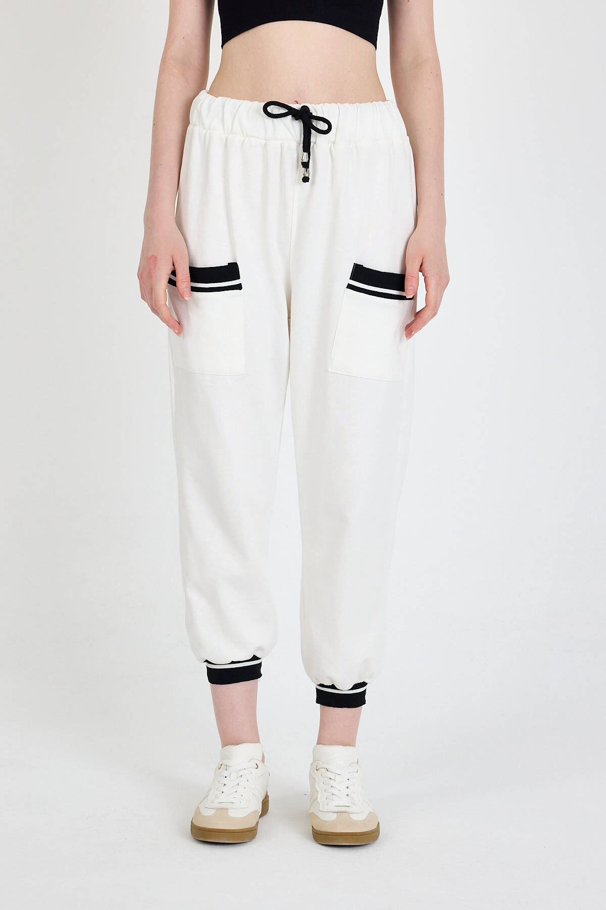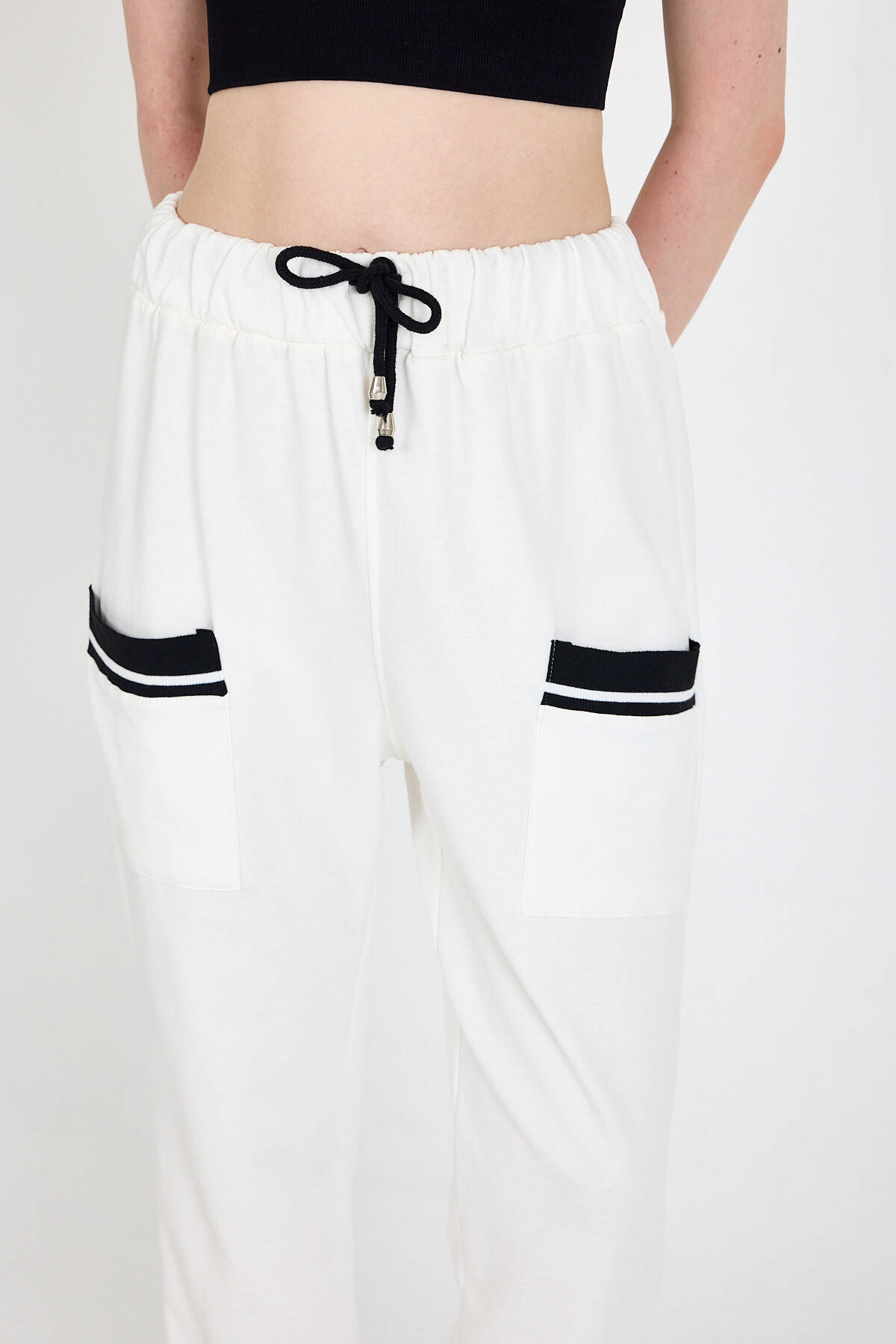 Ekru Bel Lastikli Cepli Şerit Detaylı Jogger Eşofman Altı 81524