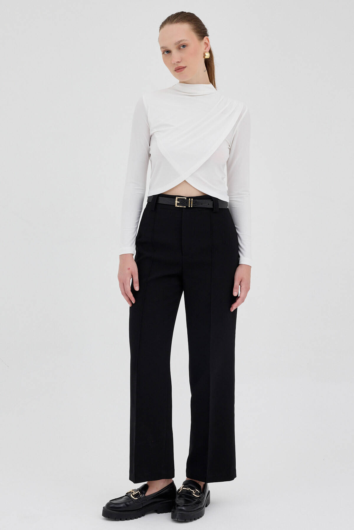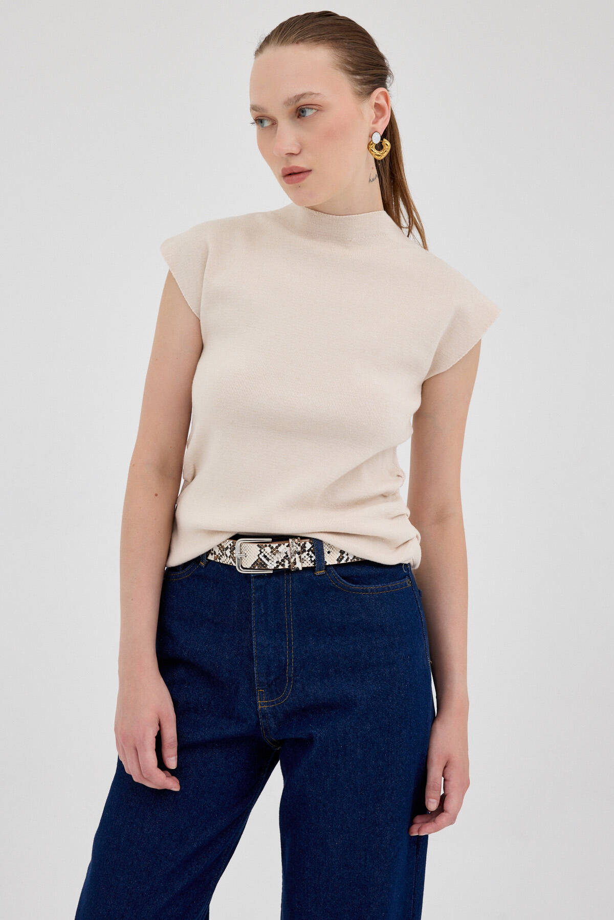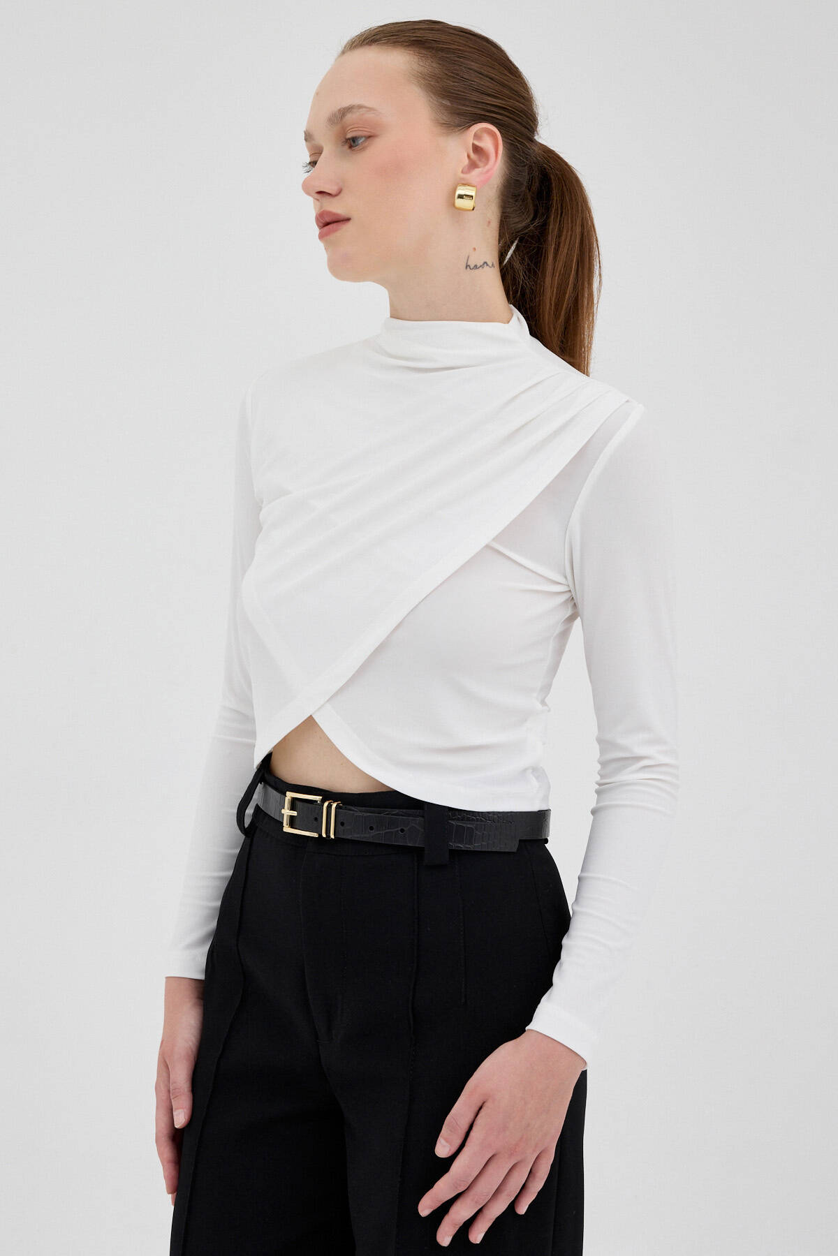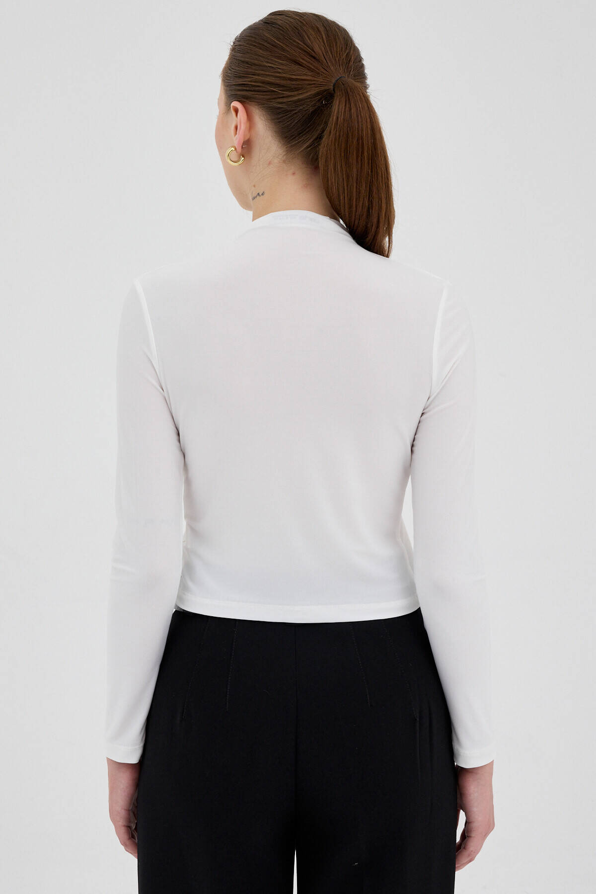 Ekru Drapeli Yüksek Yaka Uzun Kollu Bluz 2379
