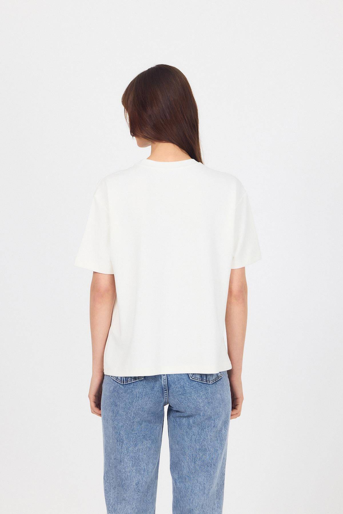 Ekru Kalp Nakışlı Premium Kumaş Tişört 6218