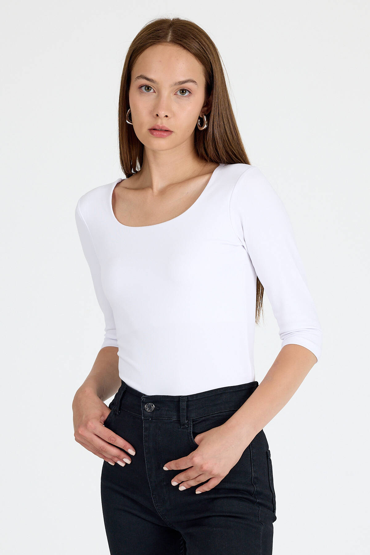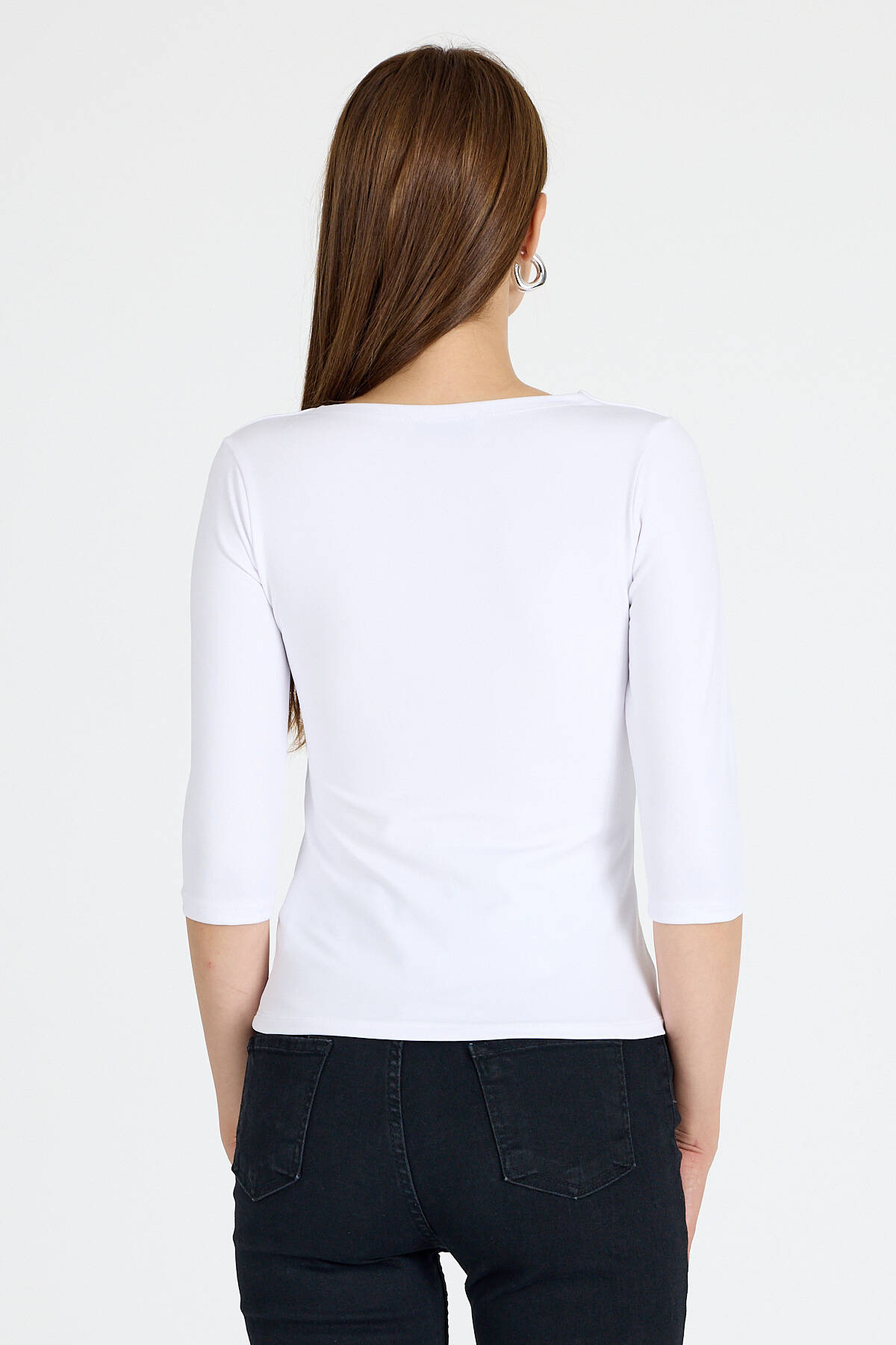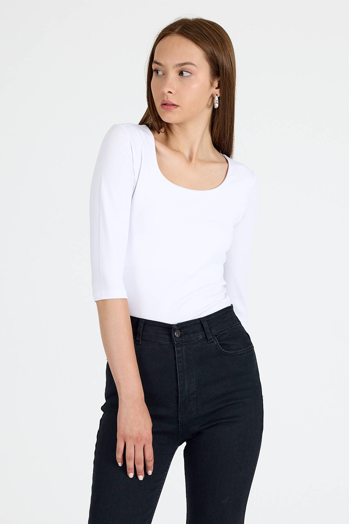 Ekru Kare Yaka Örme Body 9193M
