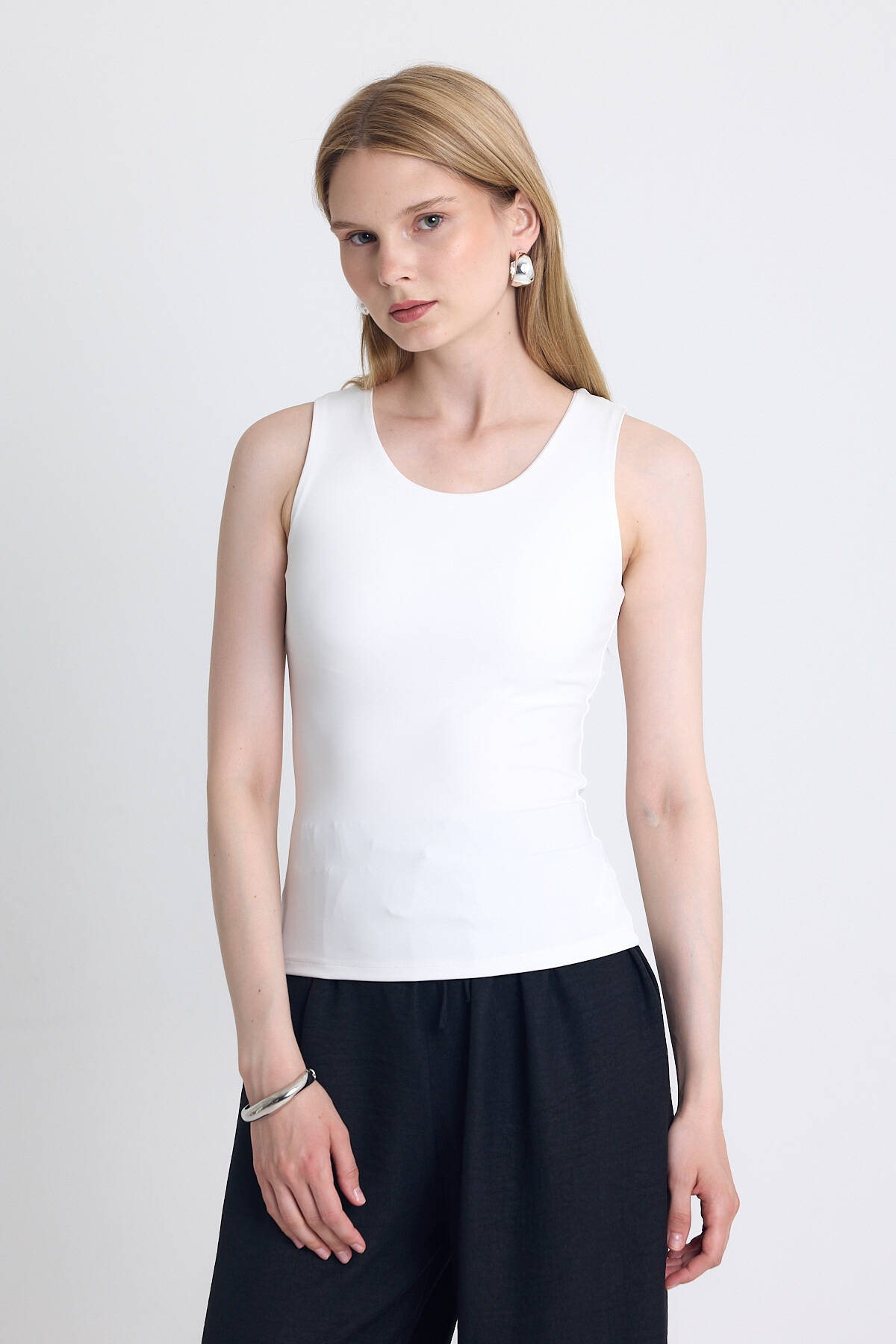 Ekru Slim Fit Kolsuz Basic Atlet 9194M