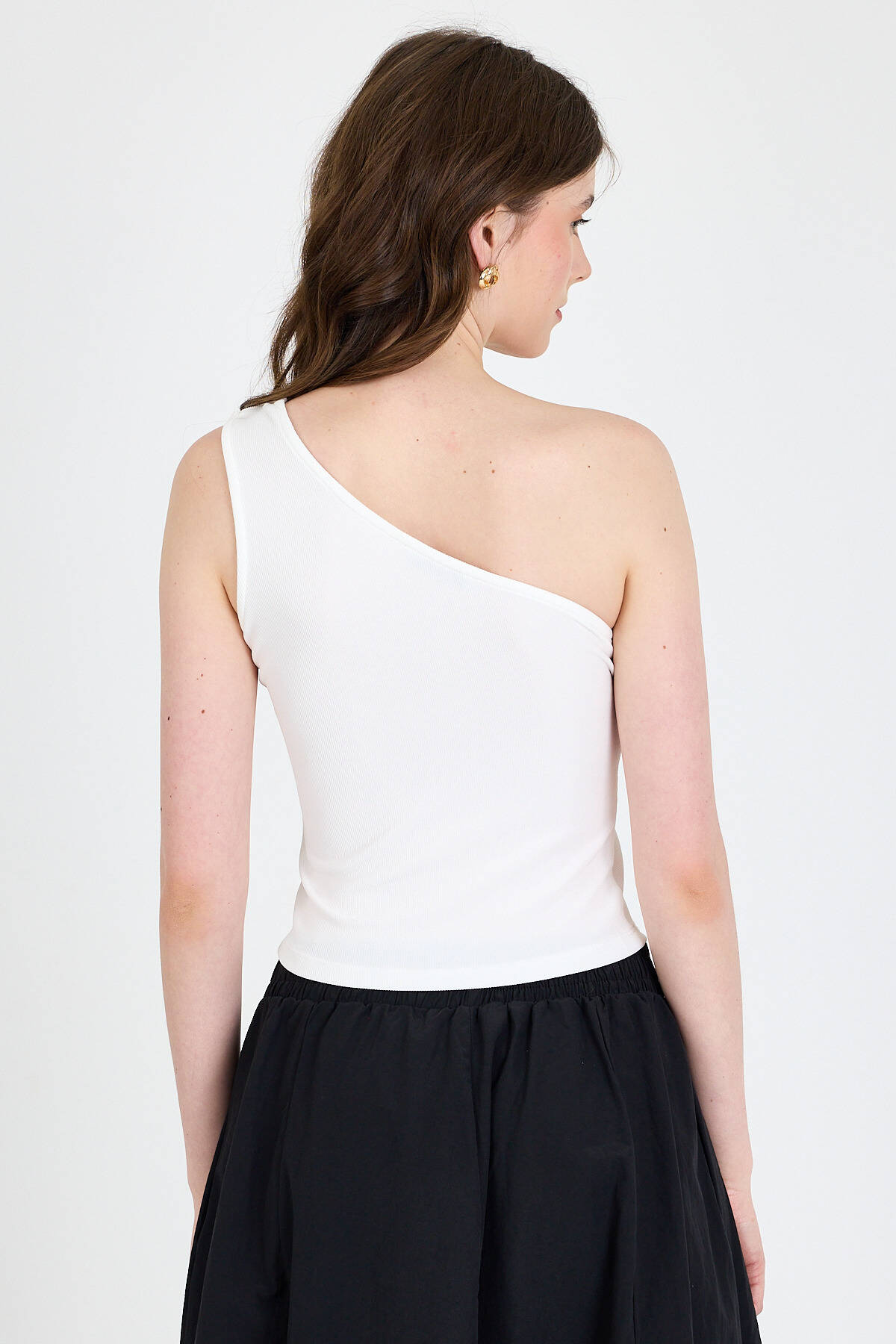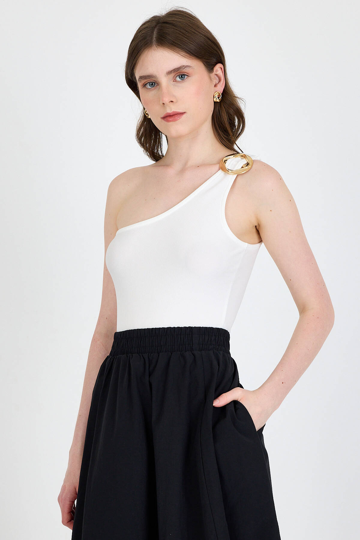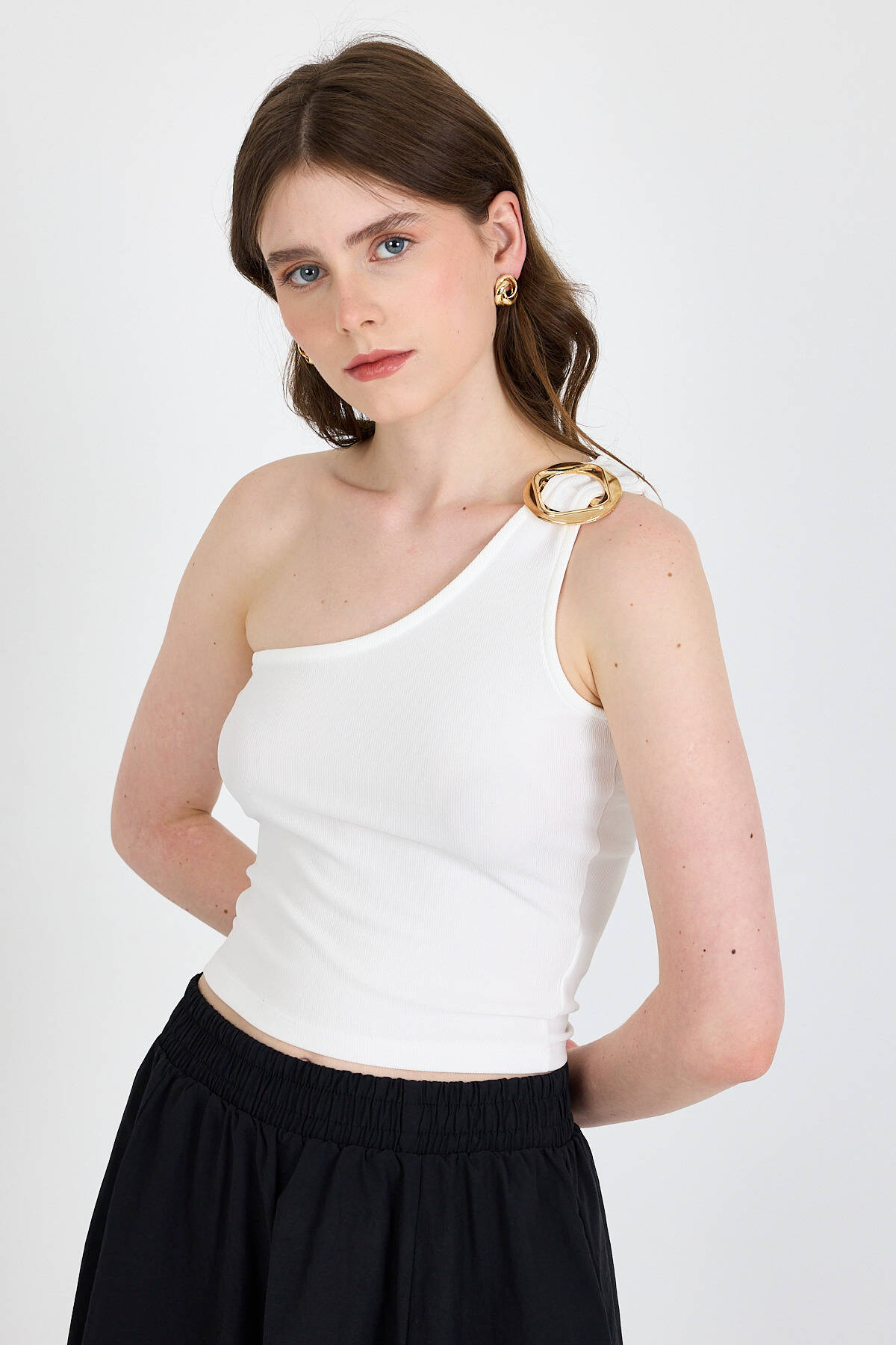 Ekru Toka Detaylı Tek Omuz Bluz 1649