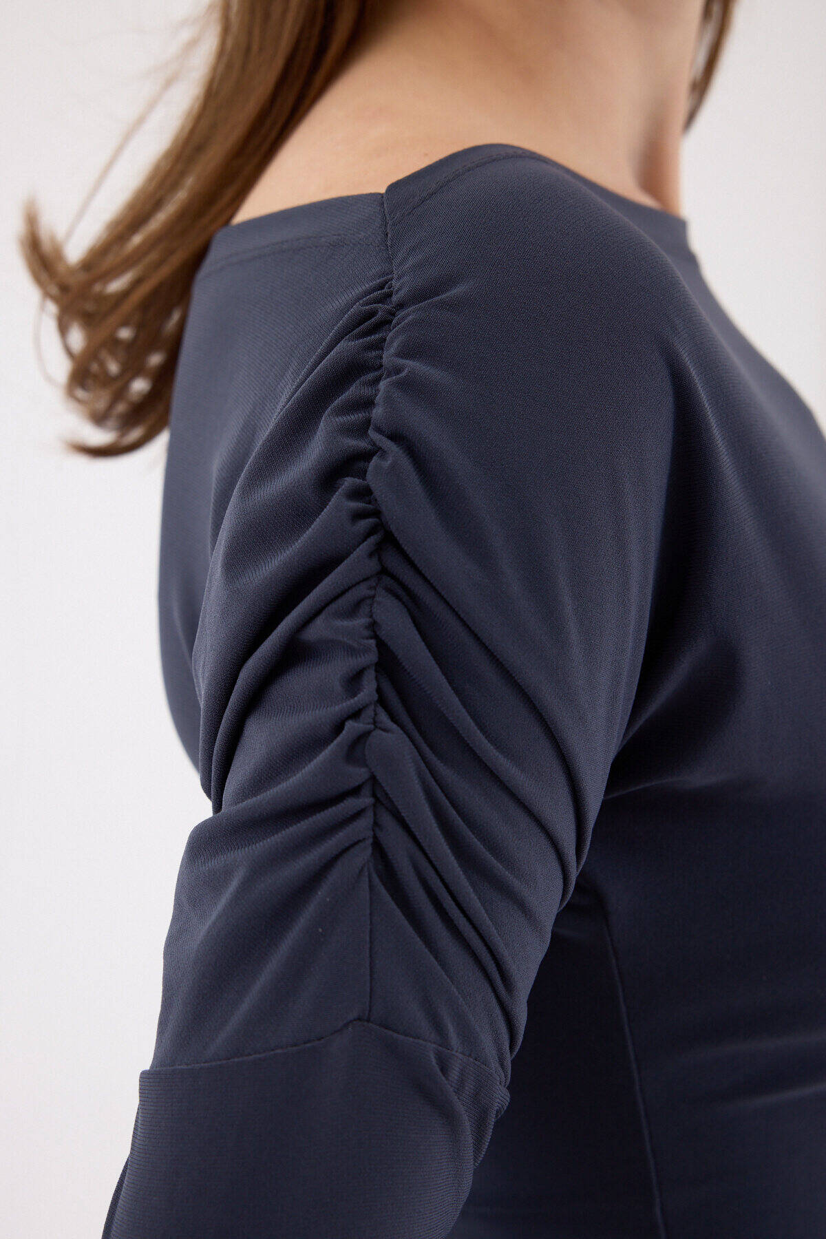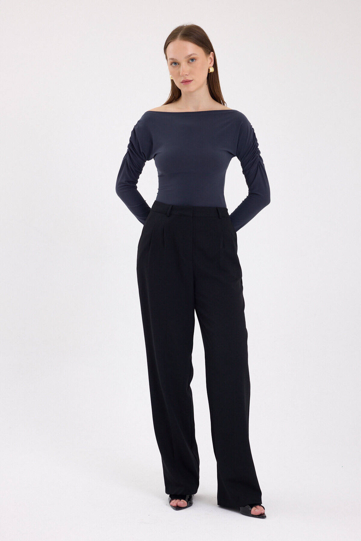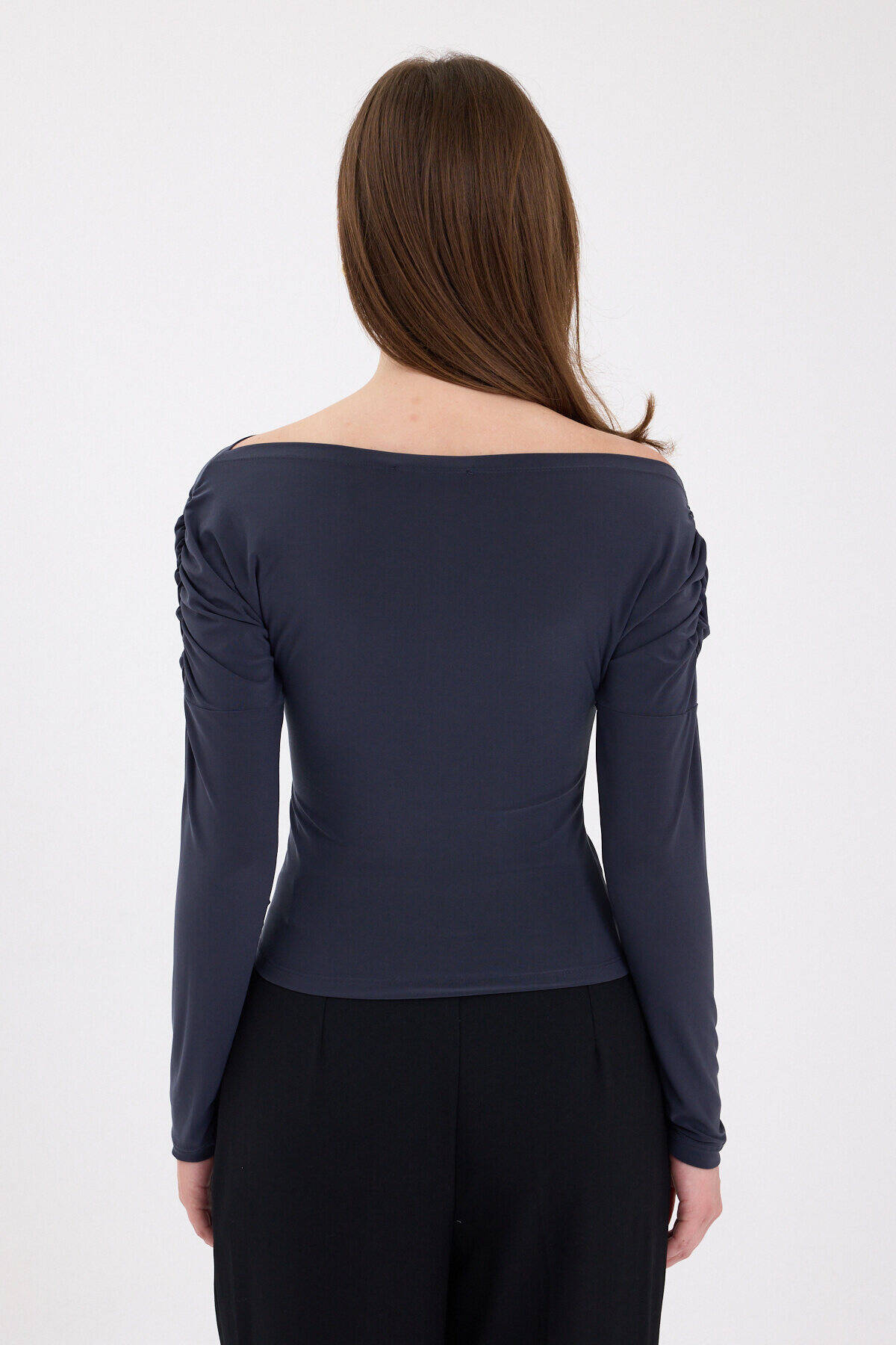 Füme Kayık Yaka Kol Büzgülü Bluz 2433