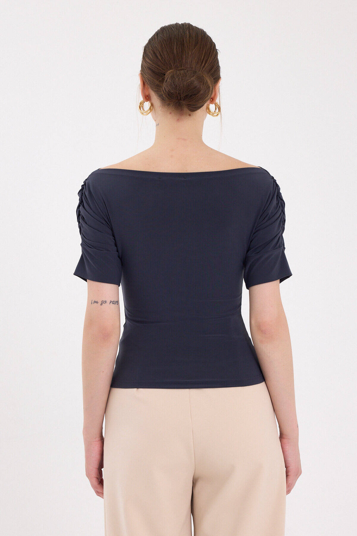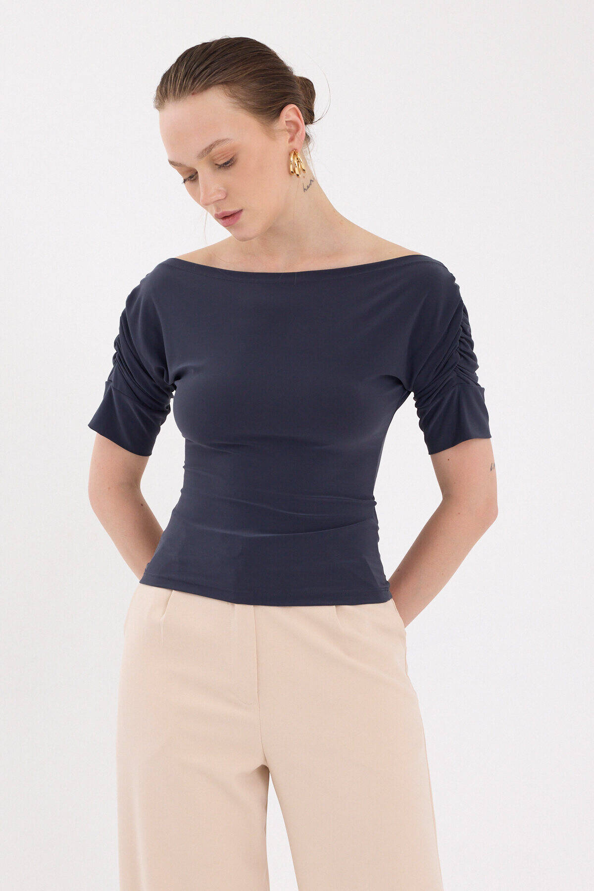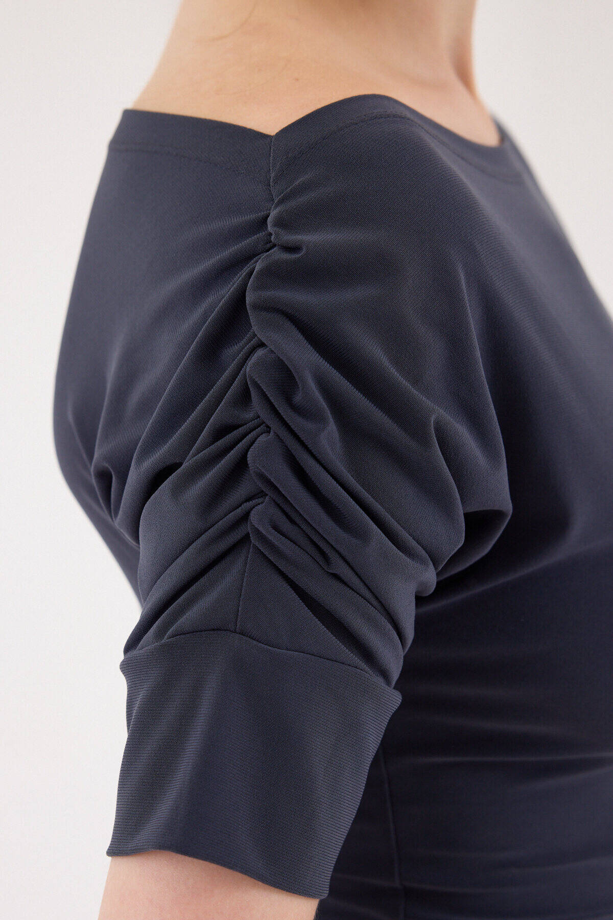 Füme Kayık Yaka Kol Büzgülü Bluz 2515