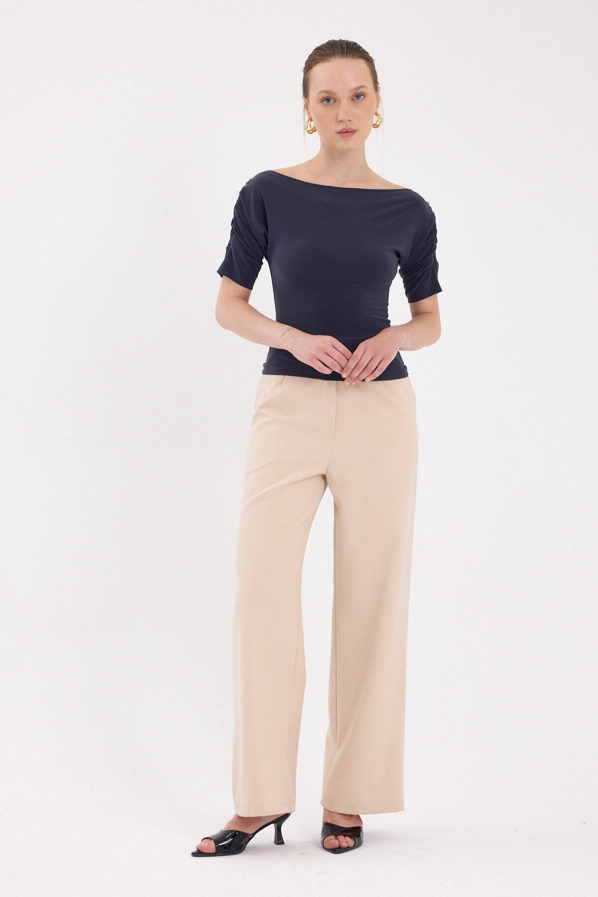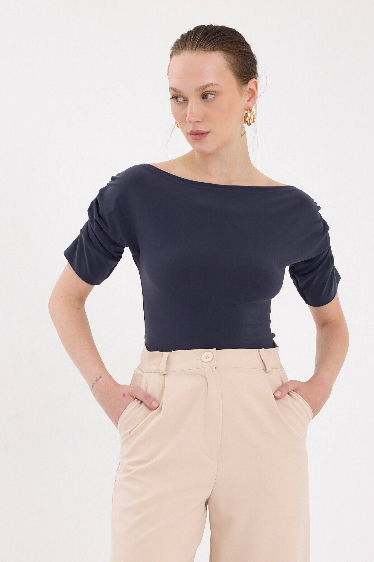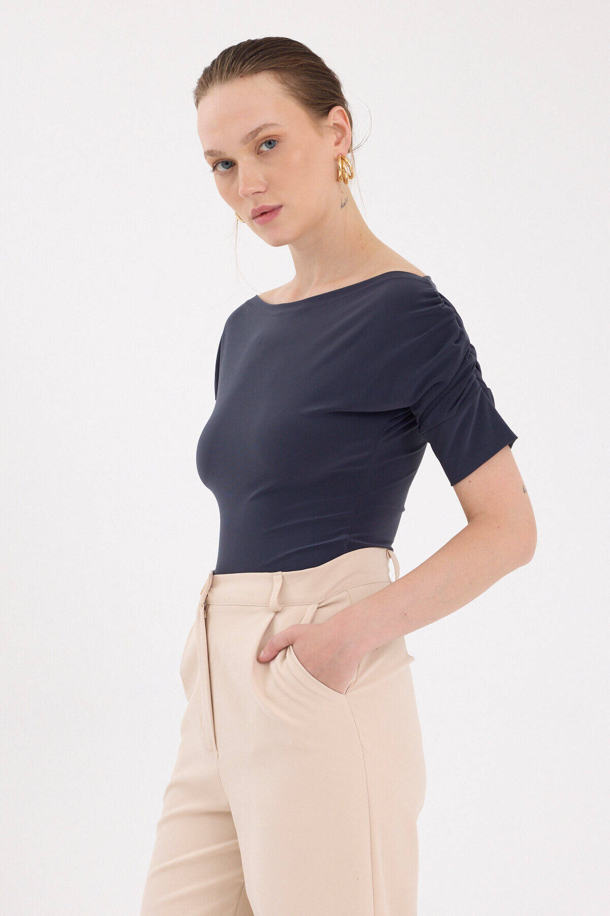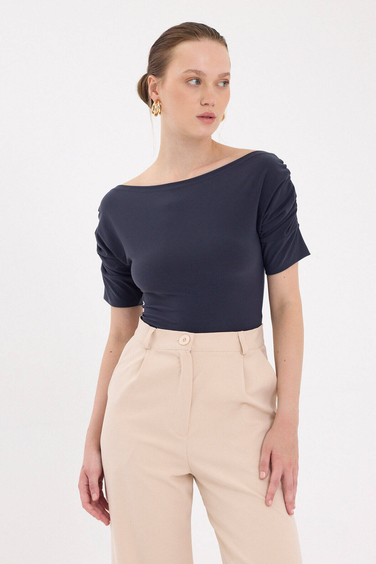 Füme Kayık Yaka Kol Büzgülü Bluz 2515