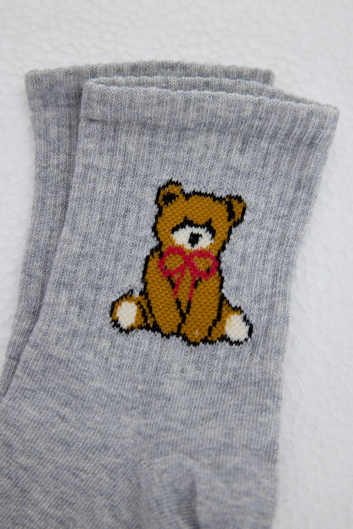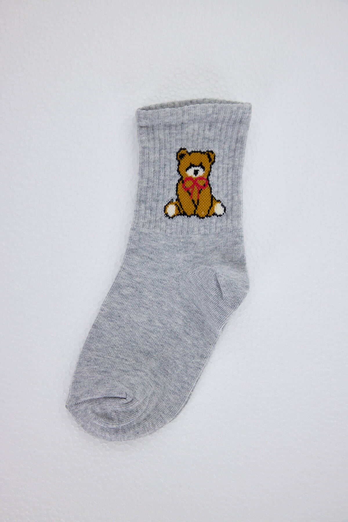 Gri Ayı Desenli Örme Soket Çorap 1214