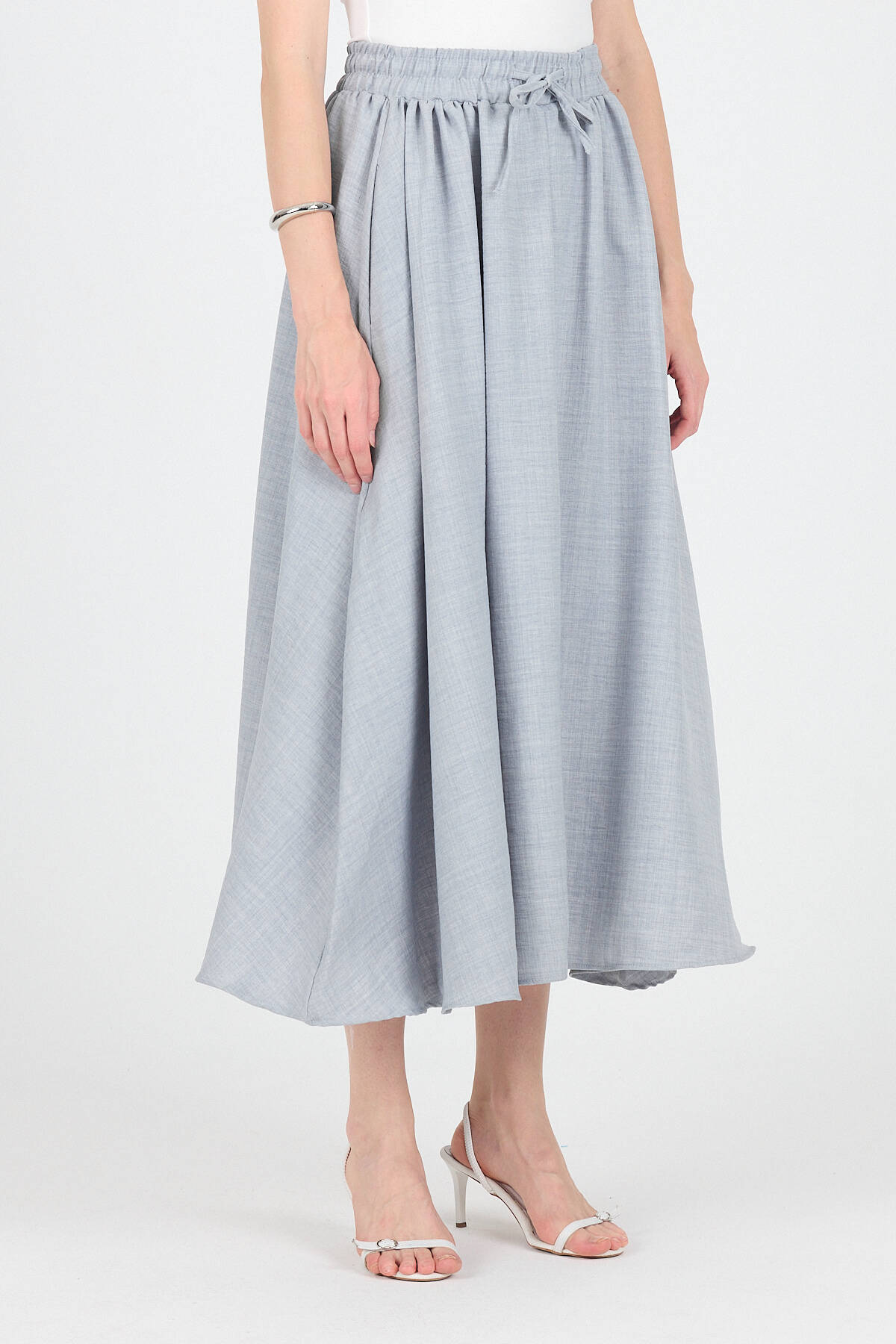 Gri Pamuklu Beli Lastikli Midi Etek 8024A
