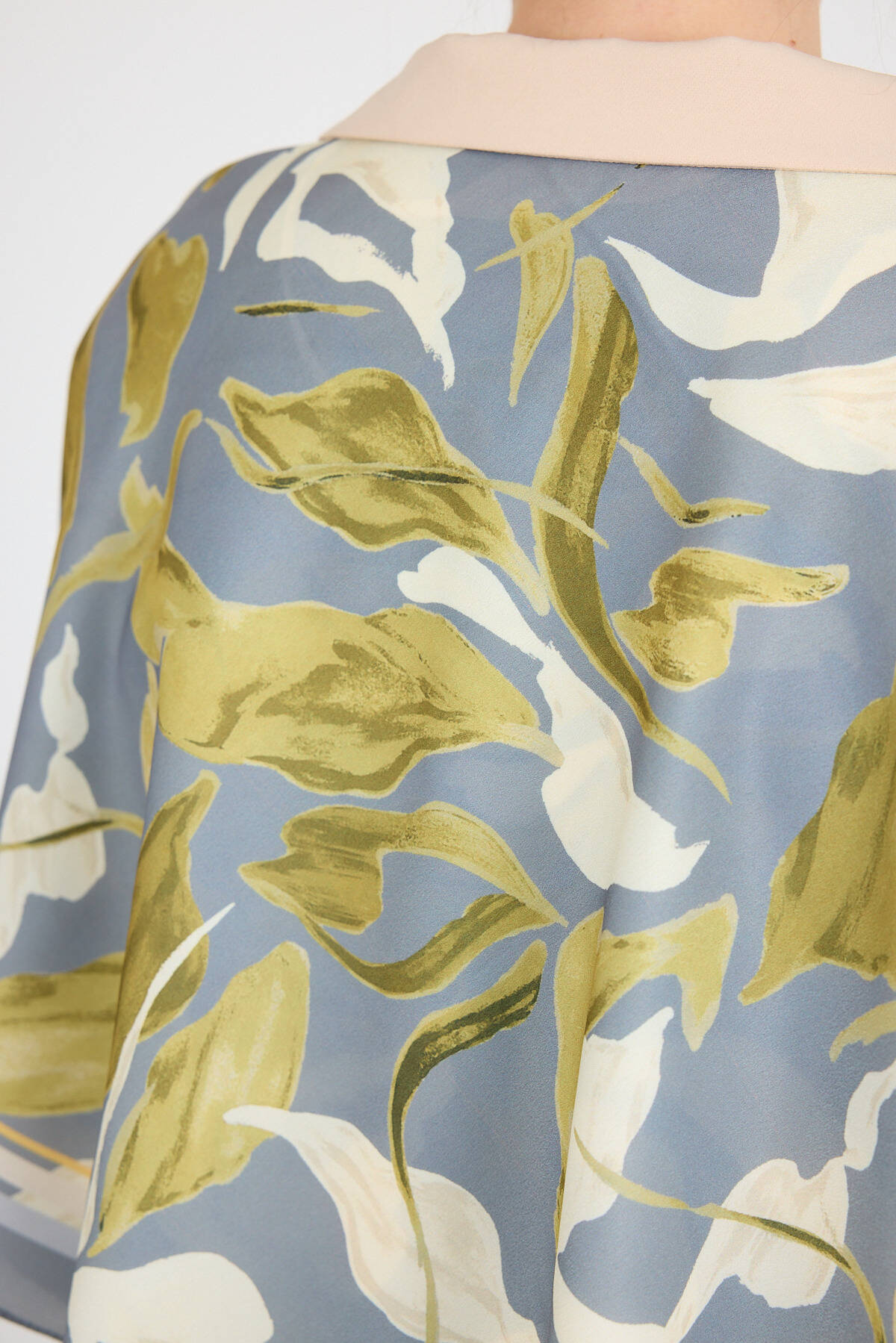 Beyaz Deri Kemer Detaylı Etnik Desenli Kimono 4363A