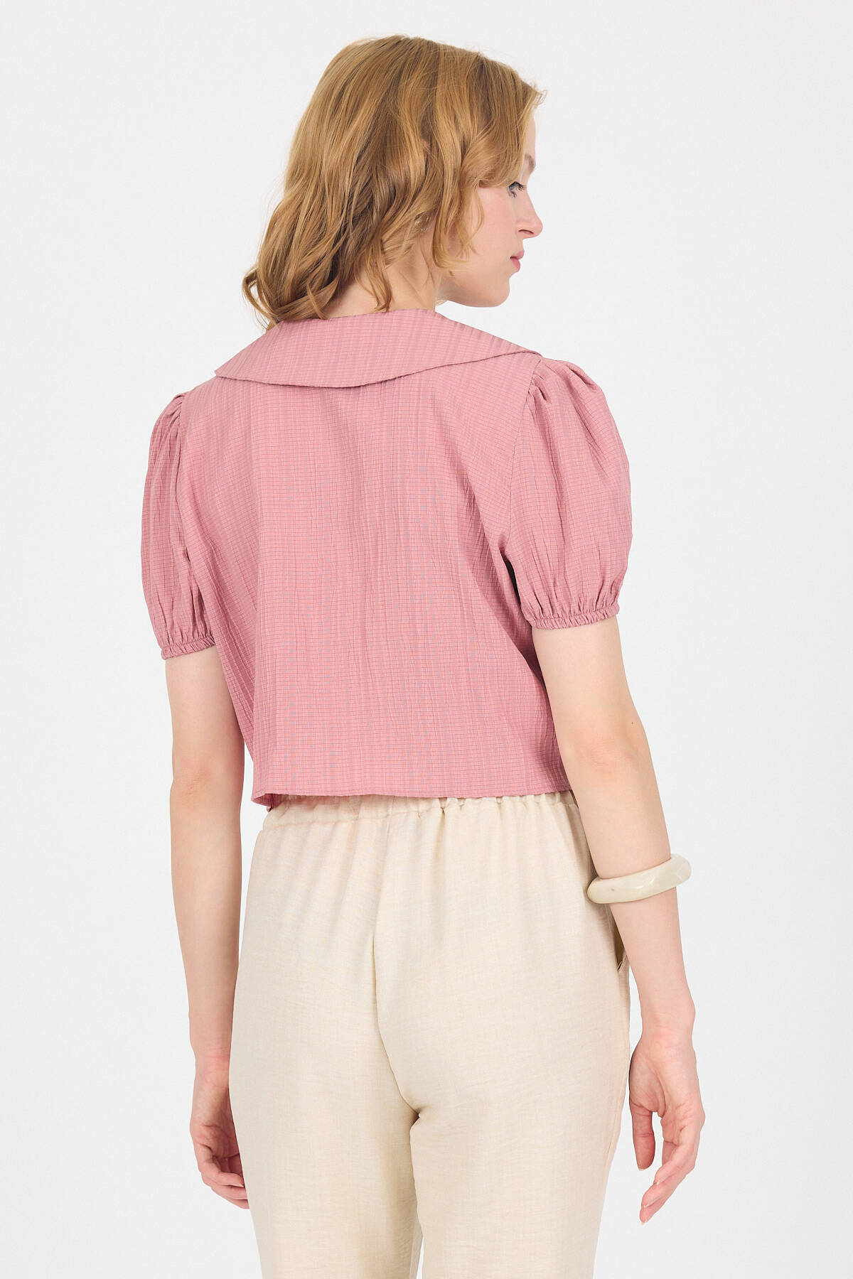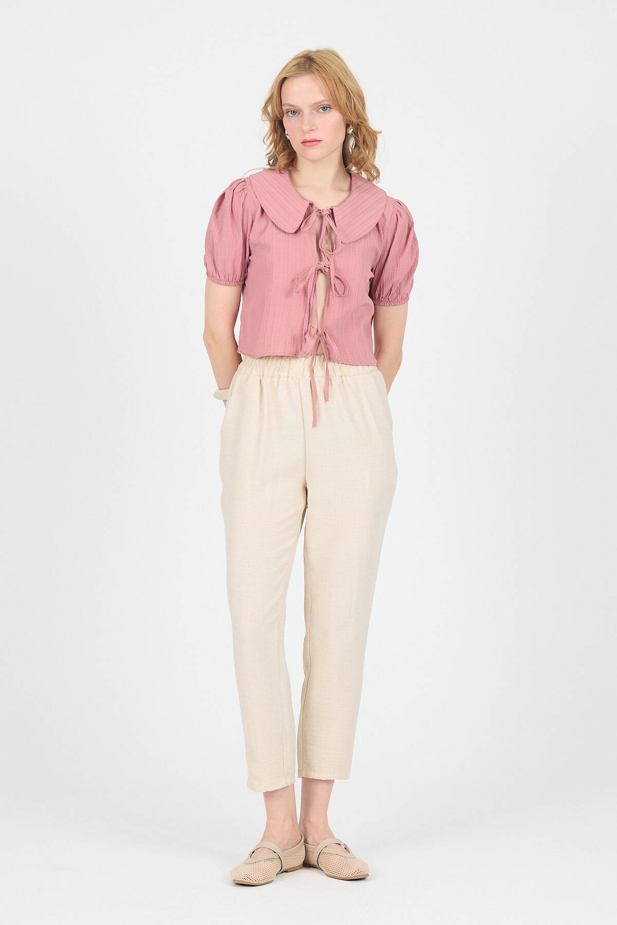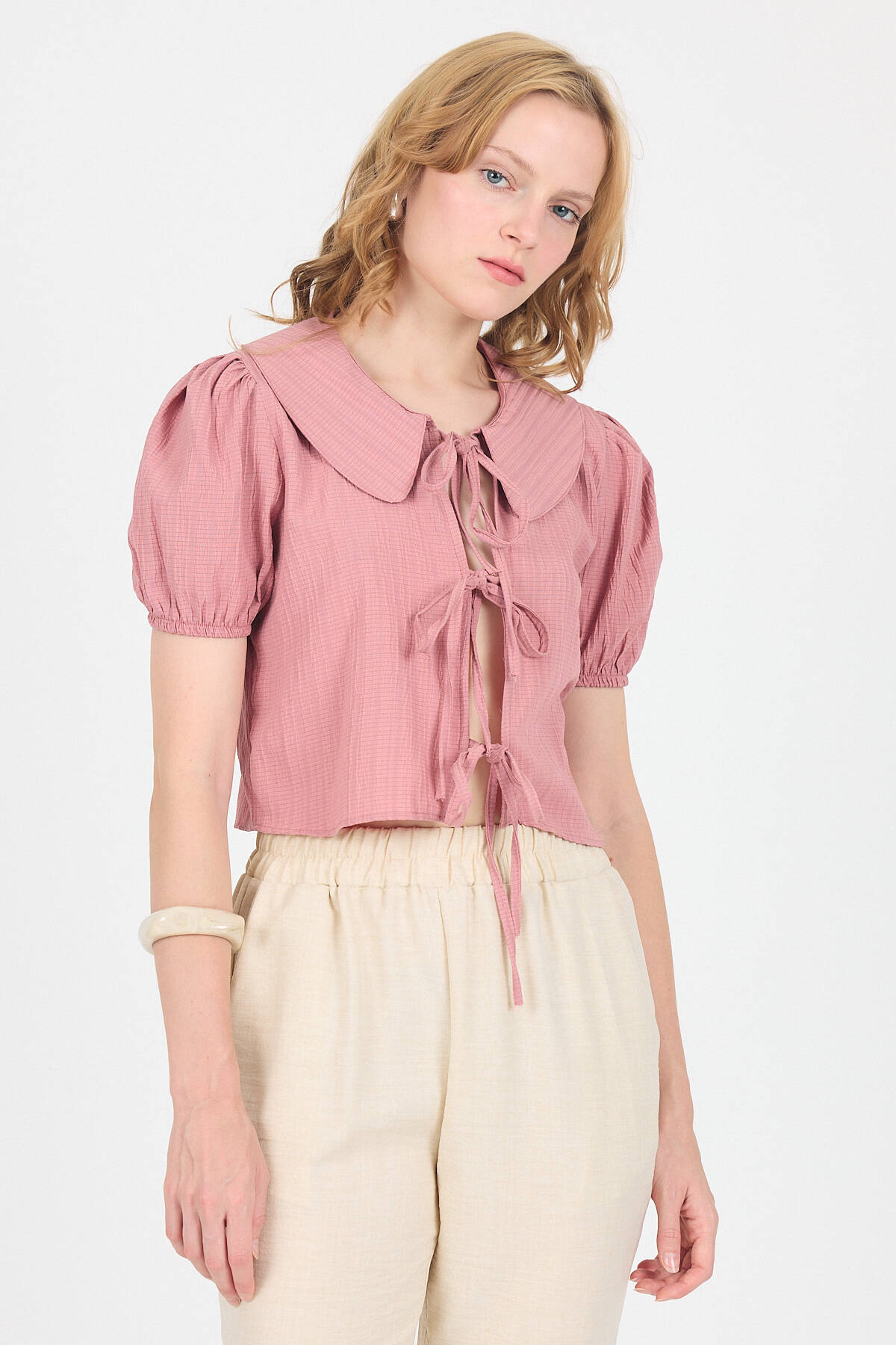 Gül Bağlama Detaylı Bebe Yaka Crop Bluz 8064