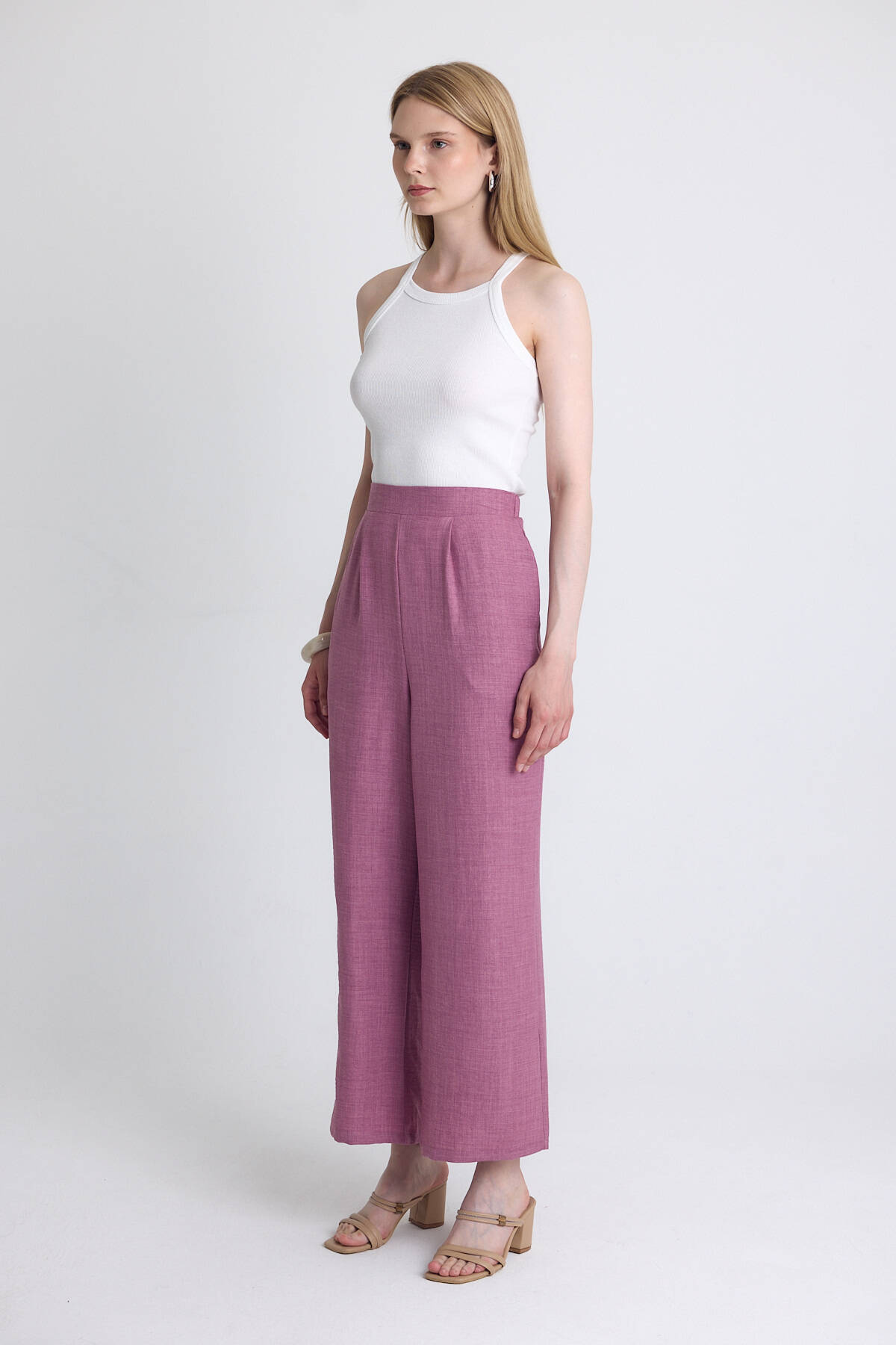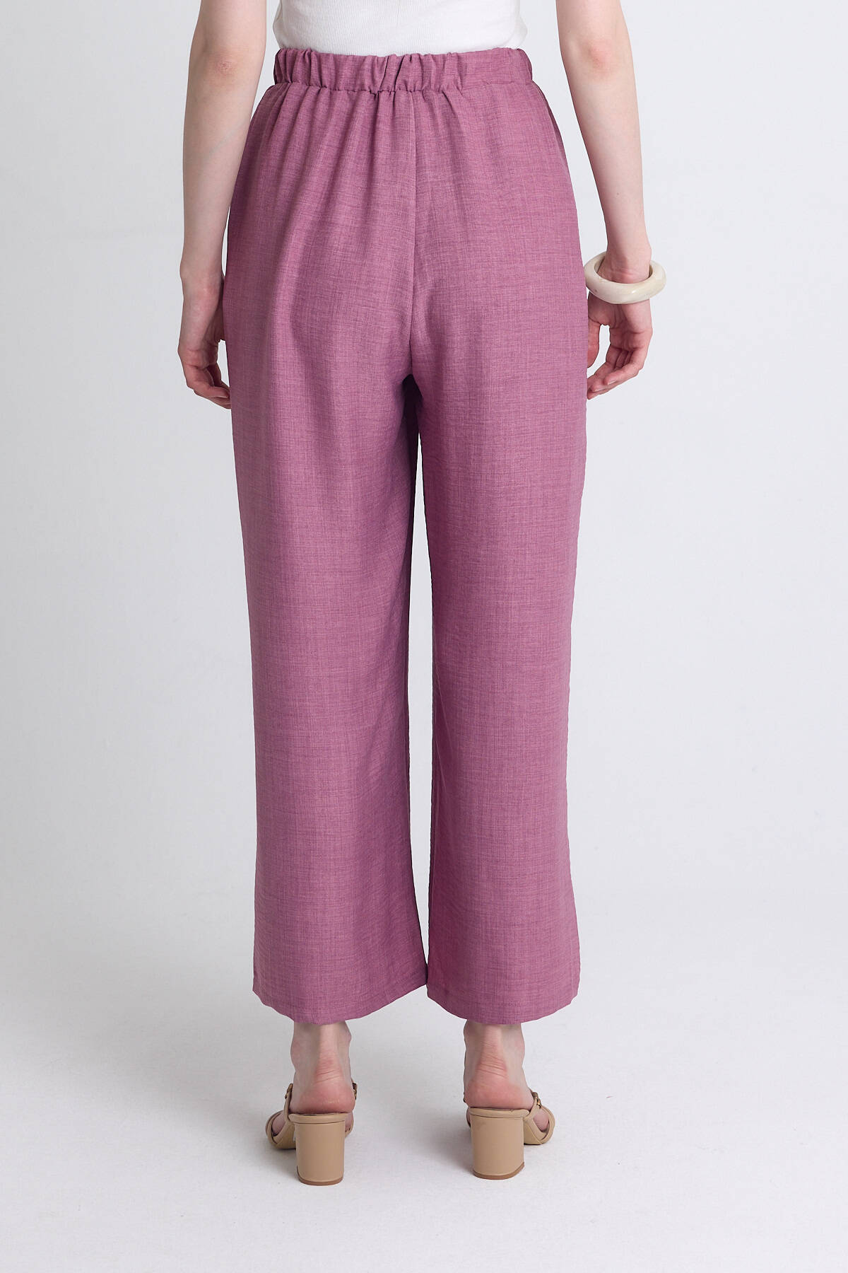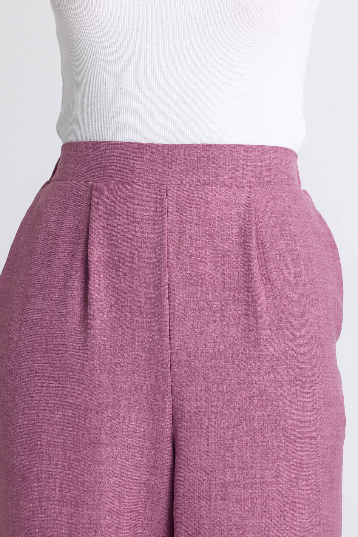Gül Yüksek Bel Ön Pile Detaylı Pamuklu Bol Paça Pantolon 8014A