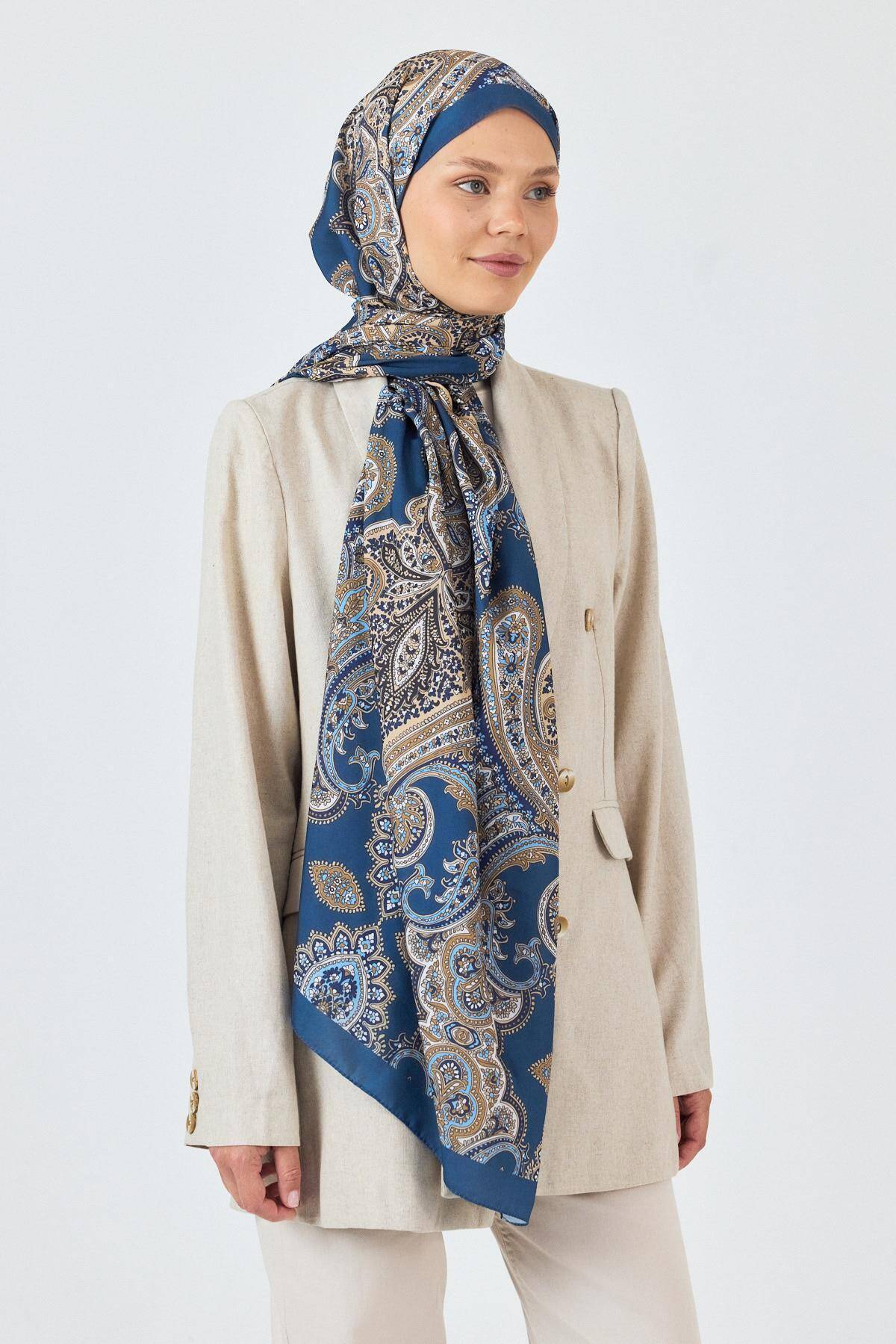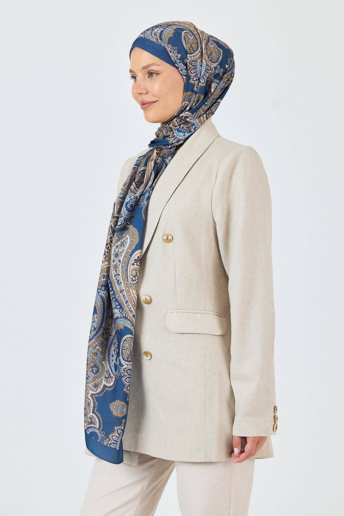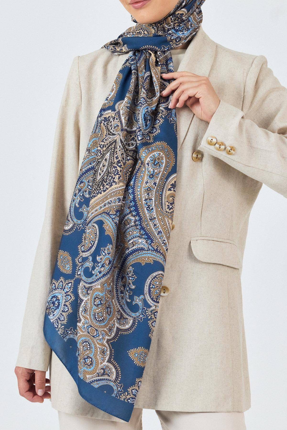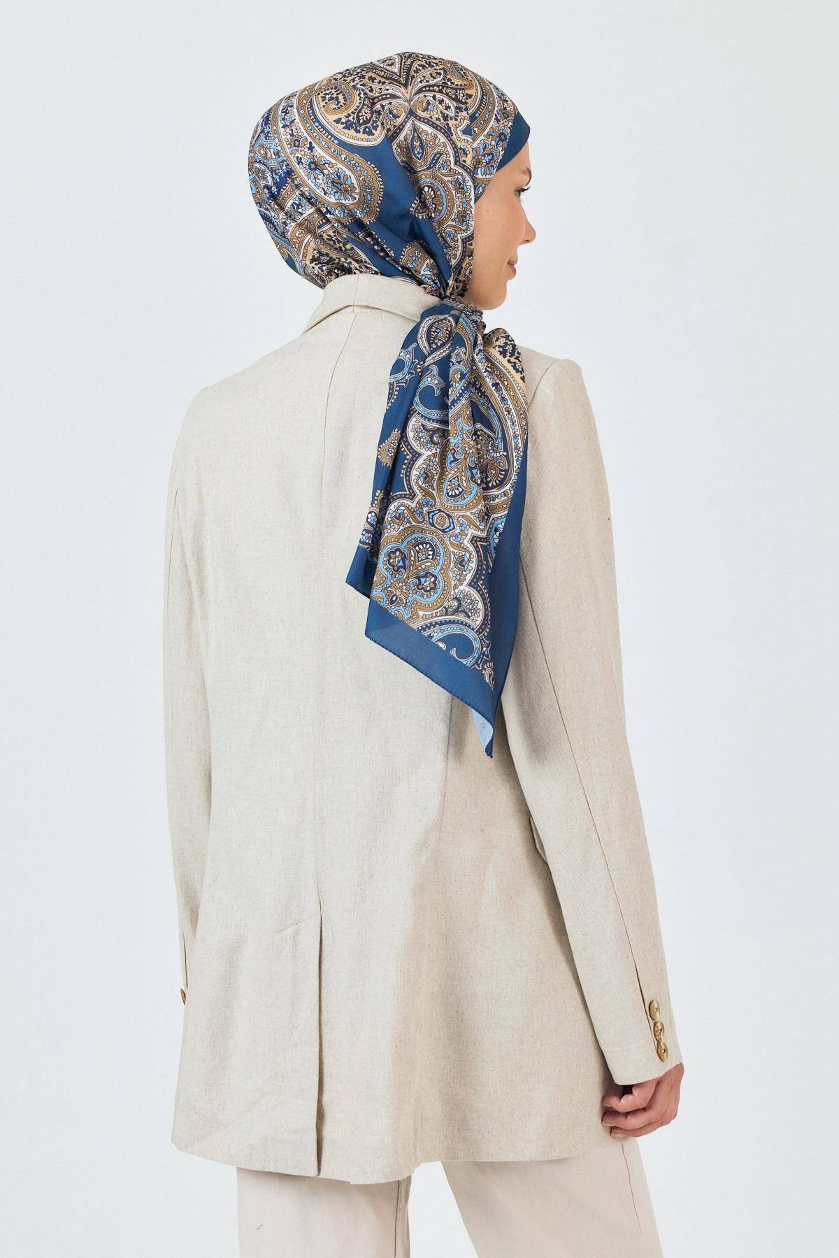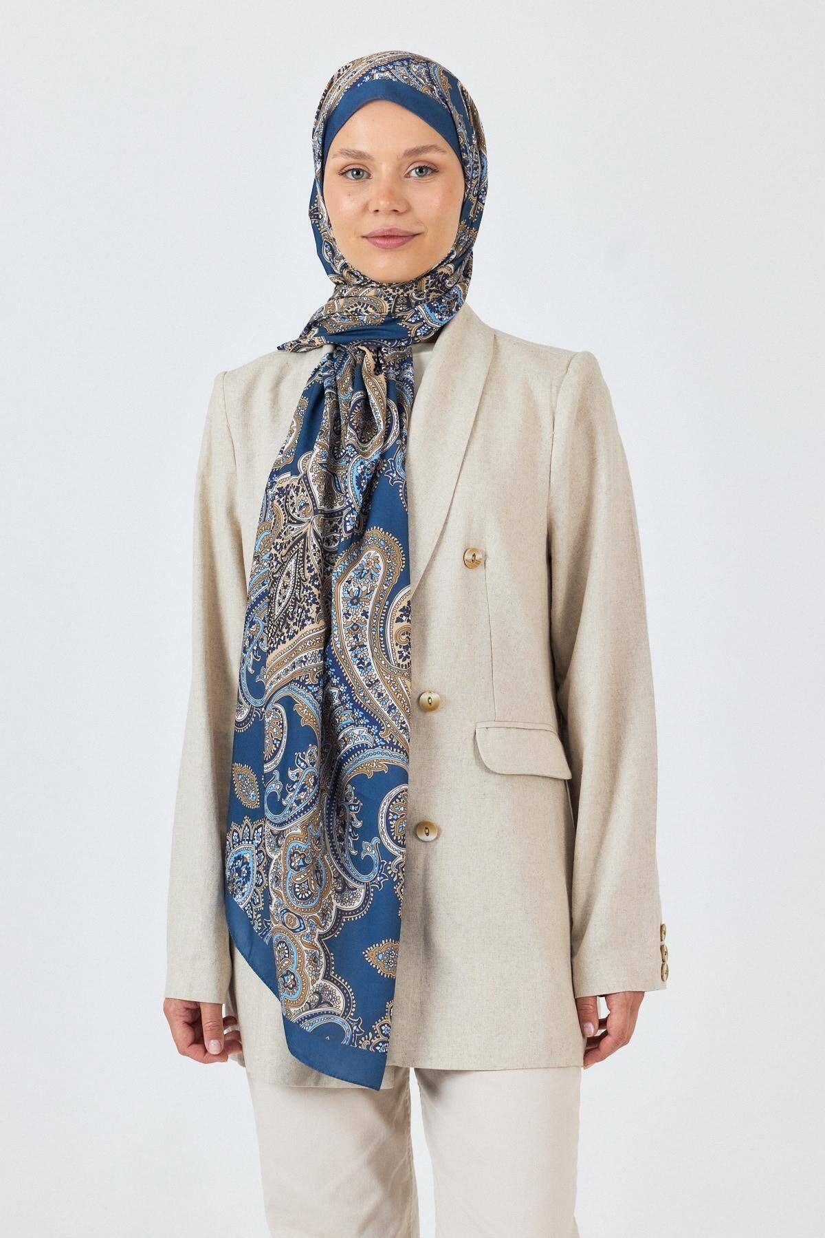 İndigo Retro Desenli Şal 4002