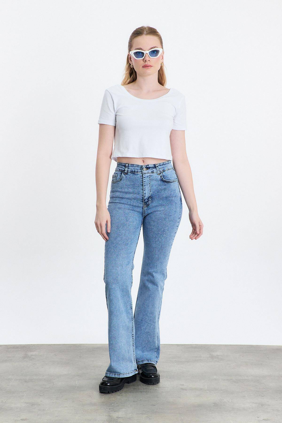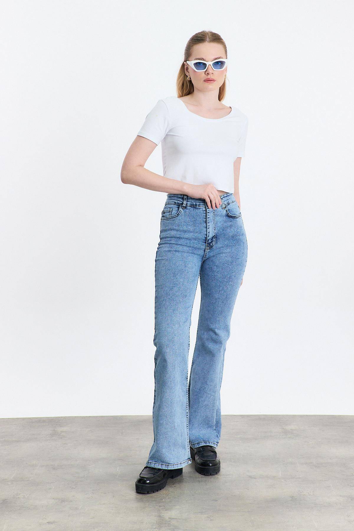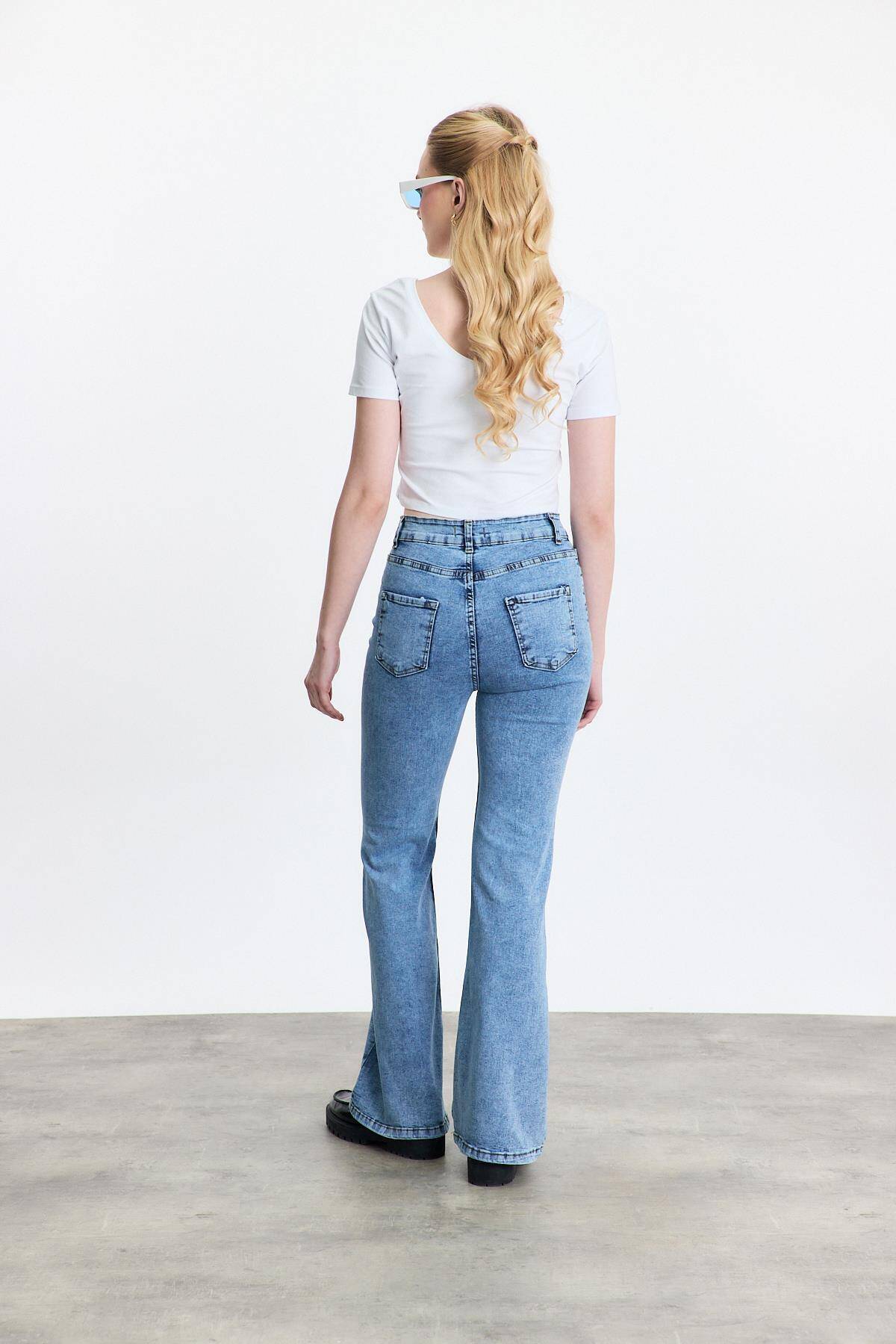 İspanyol Paça Bayan Pantolon - 12036 Buz