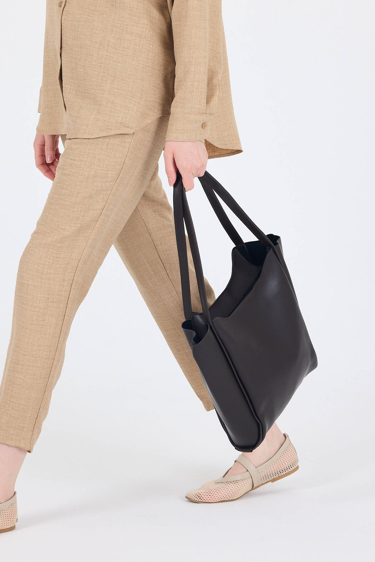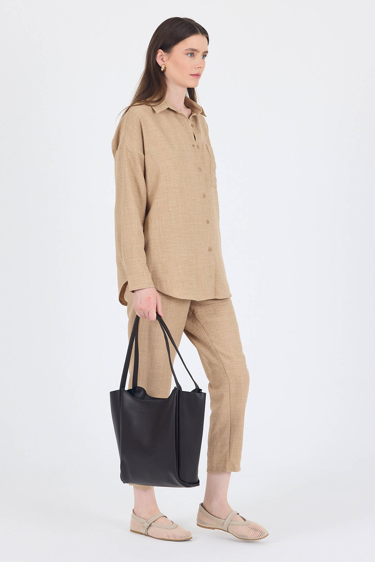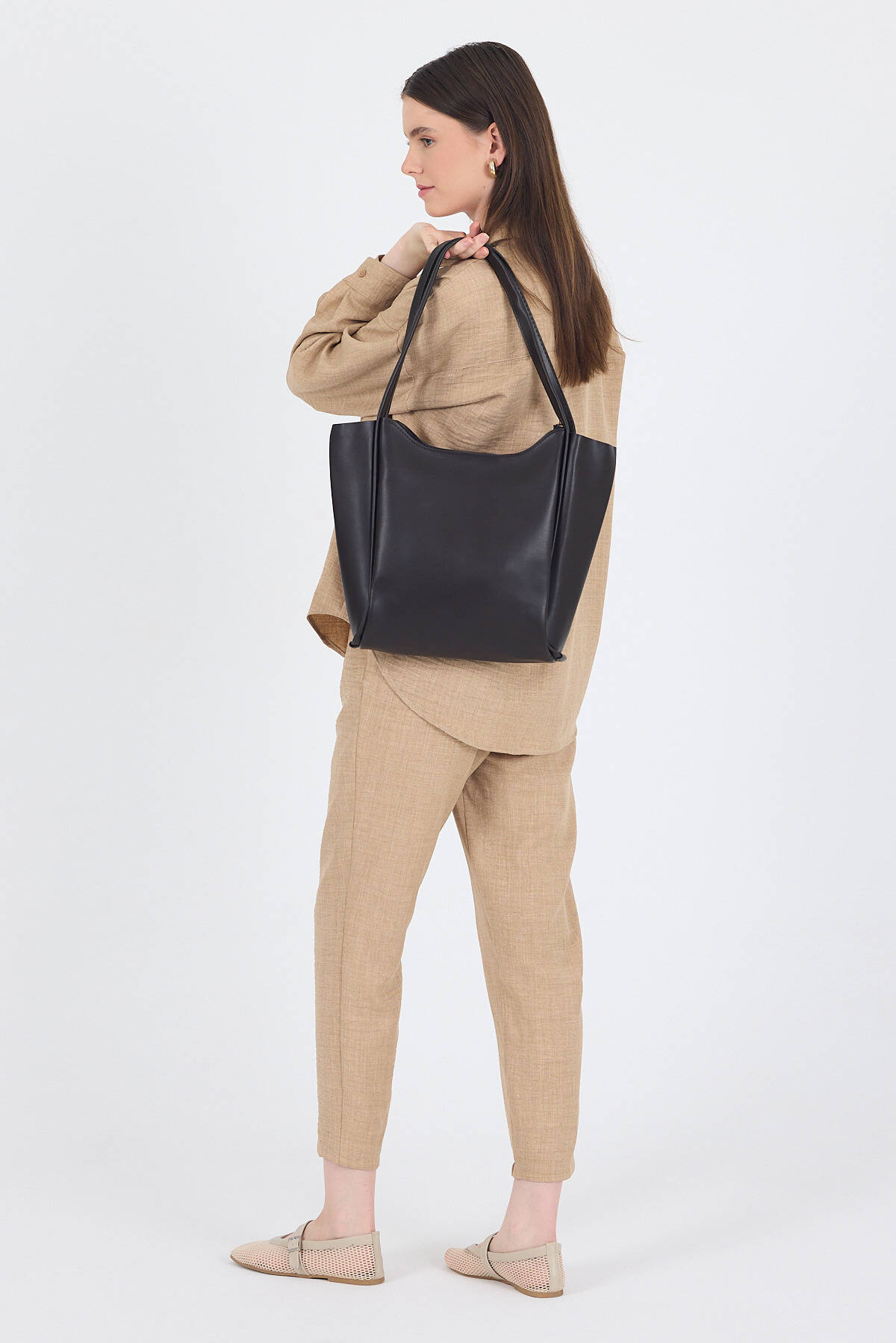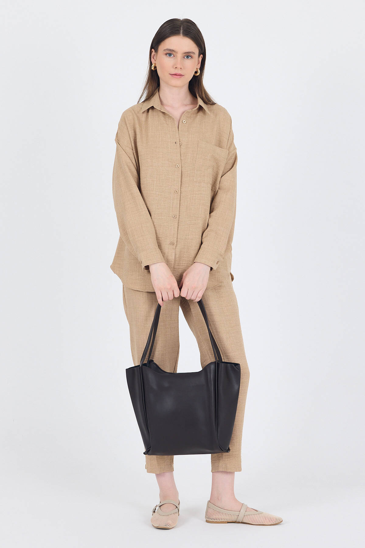 7149A Belden Bağlamalı Uzun Kaşe Kaban Siyah