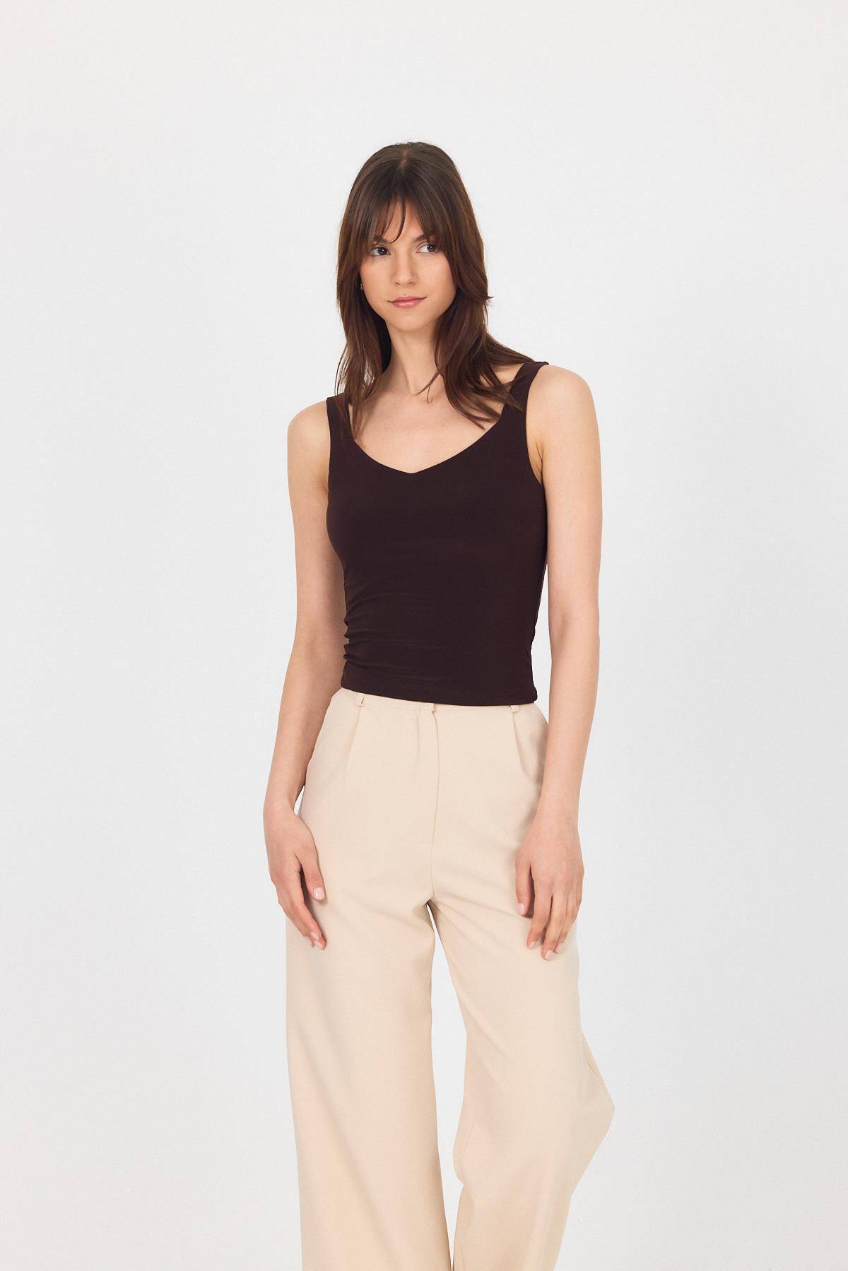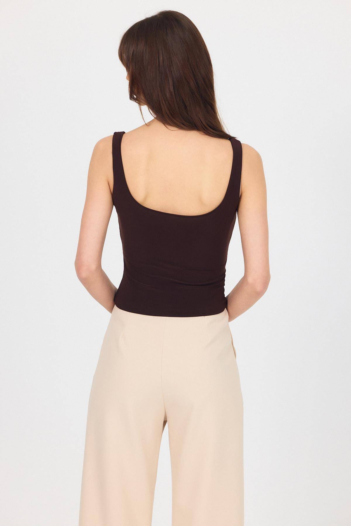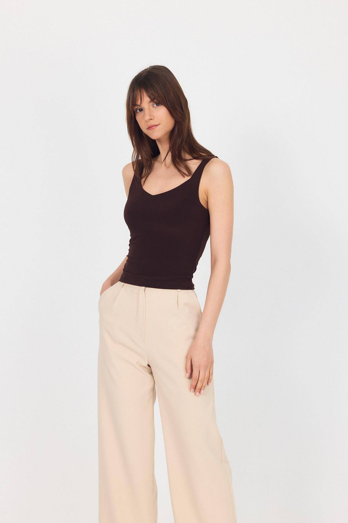 Kahve Kalın Askılı V Yaka Bluz 13293