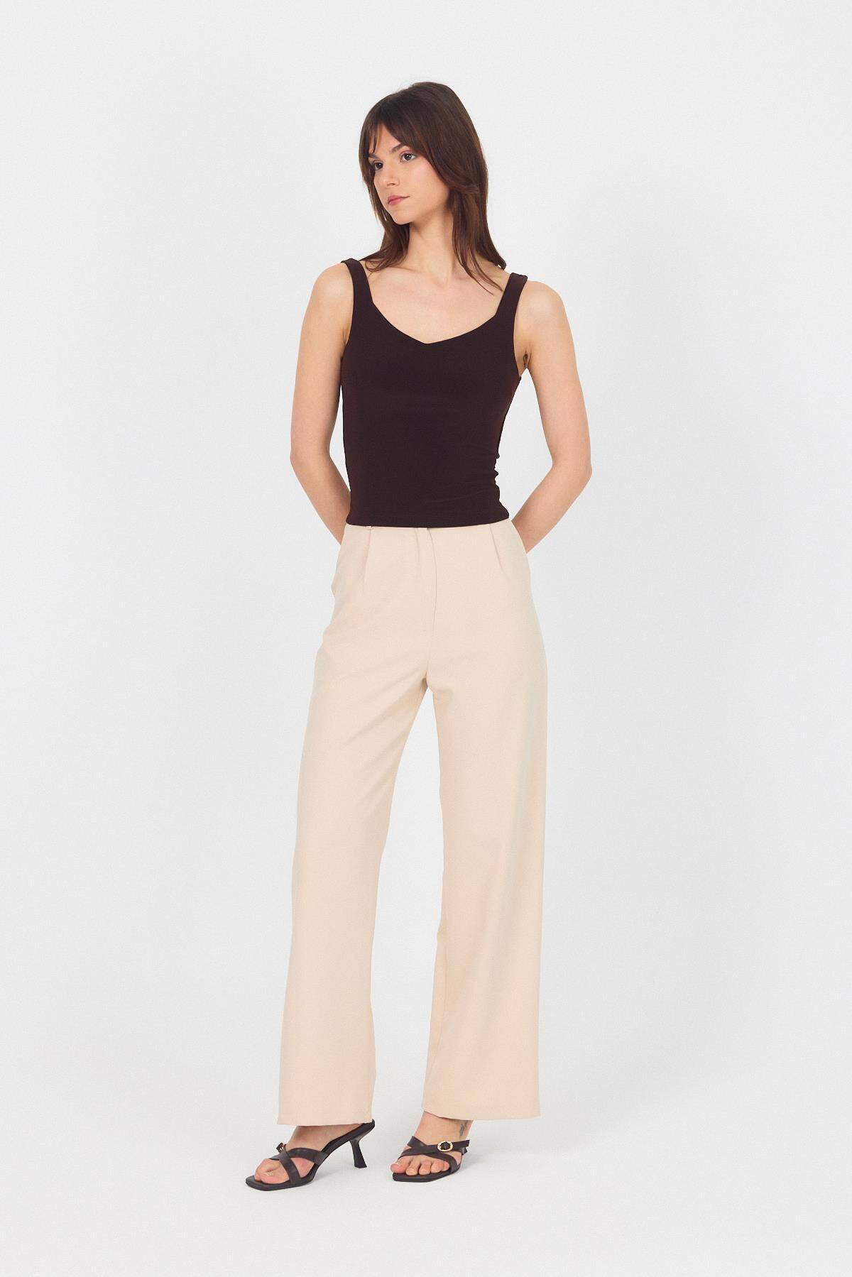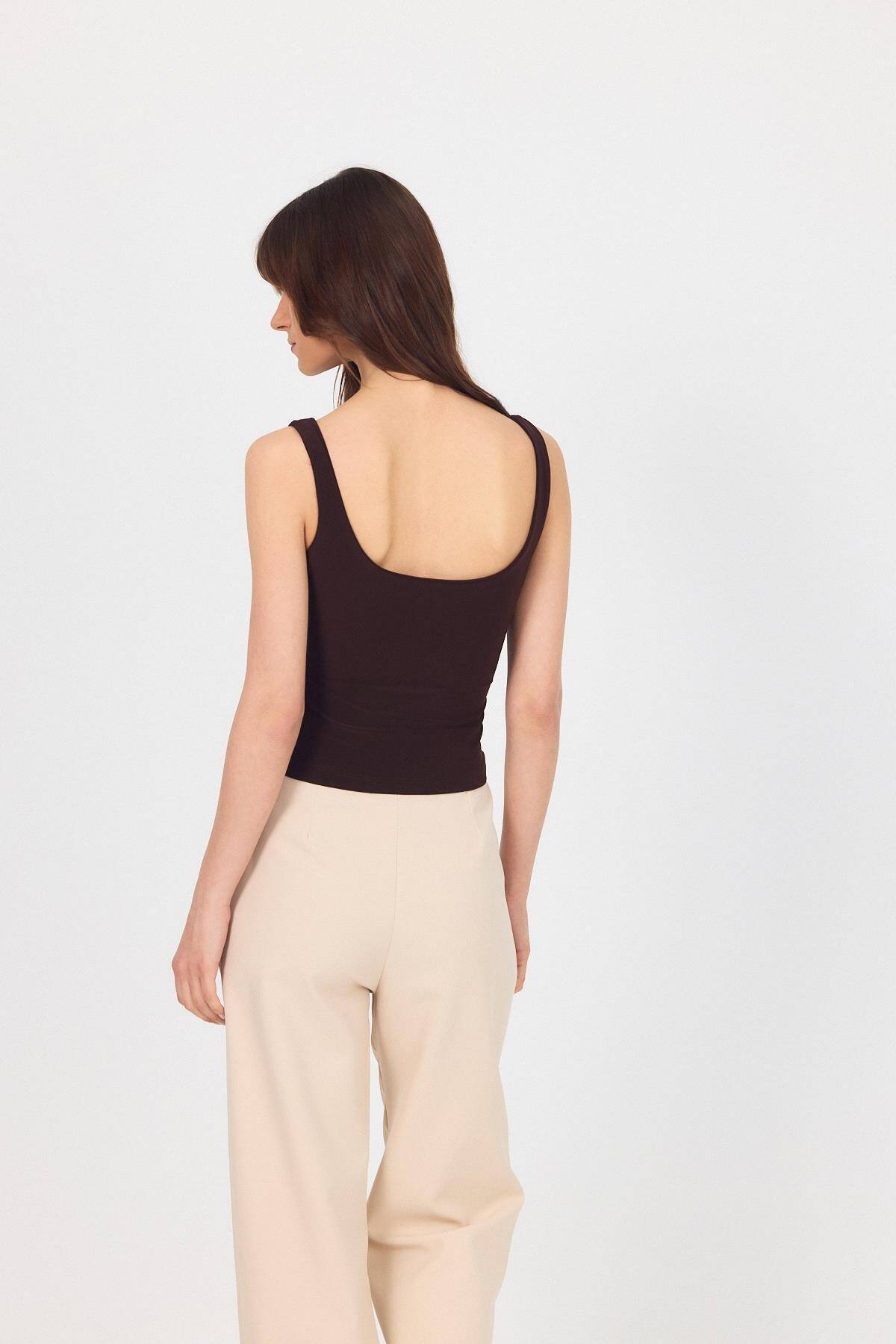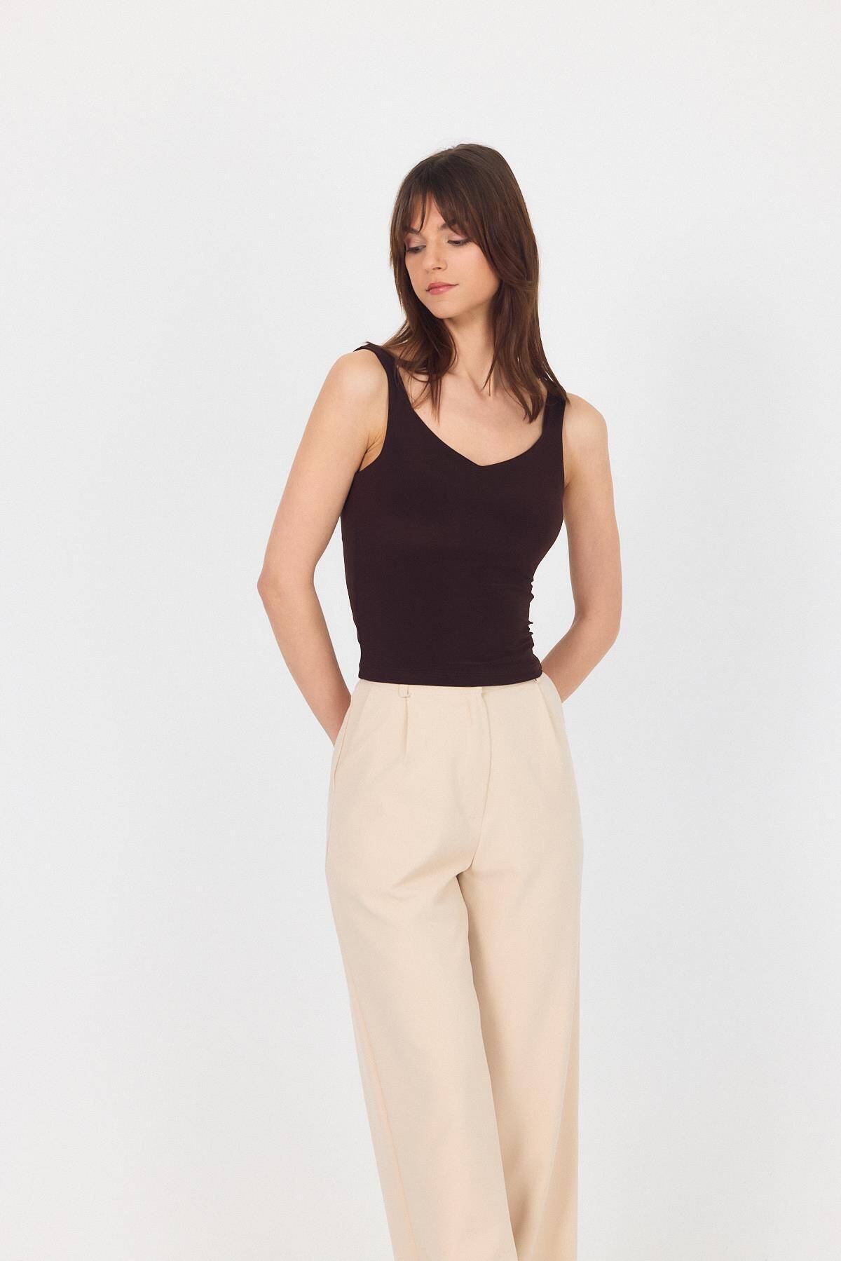 Kahve Kalın Askılı V Yaka Bluz 13293