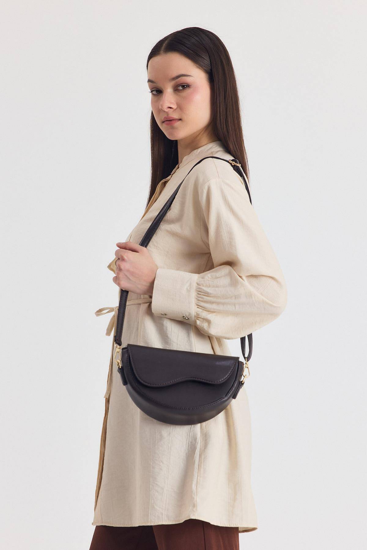 Kahve Simetri Kapak Detaylı Omuz Çantası 3024
