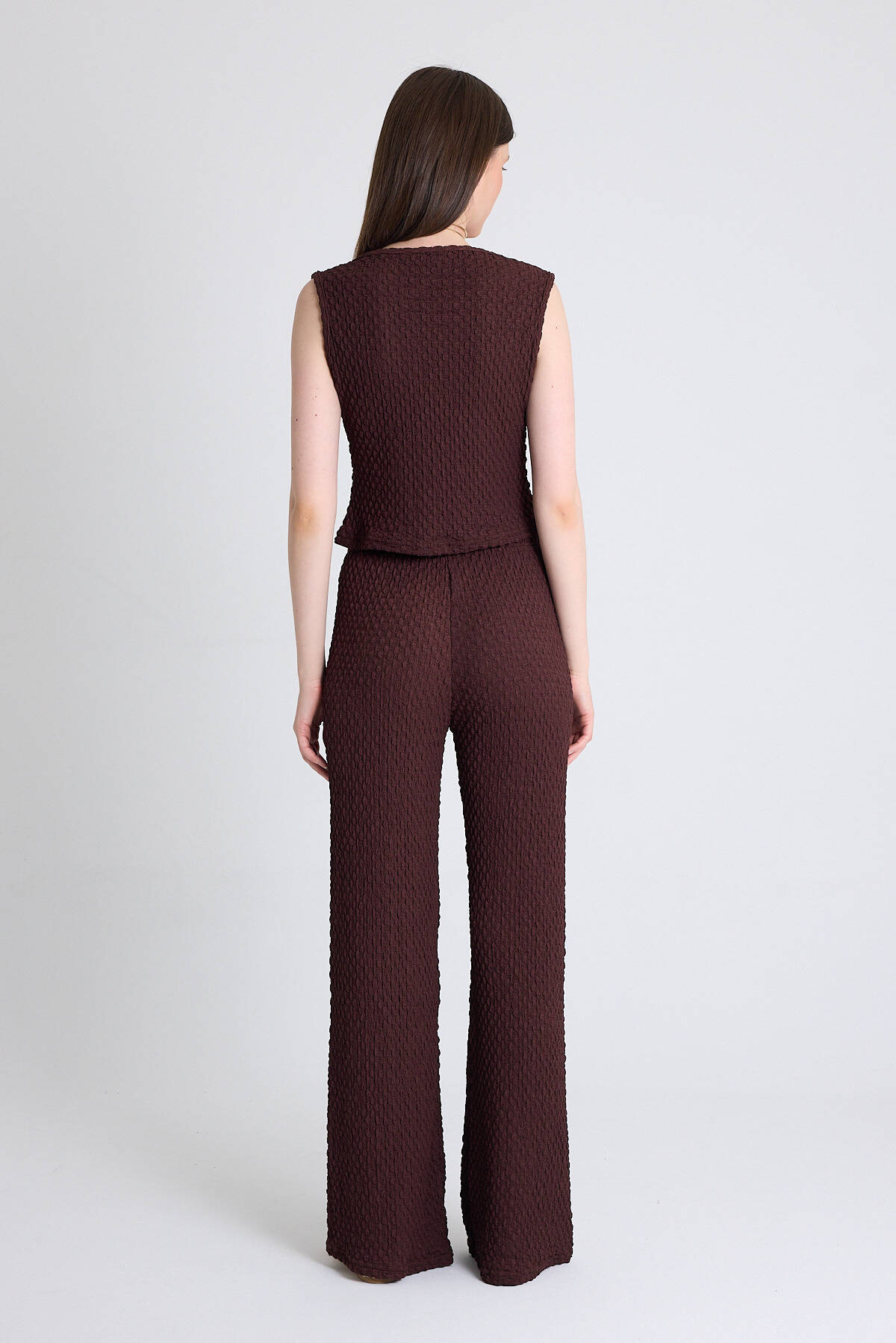 Kahve V Yaka Yelek ve Pantolon Takımı 3000