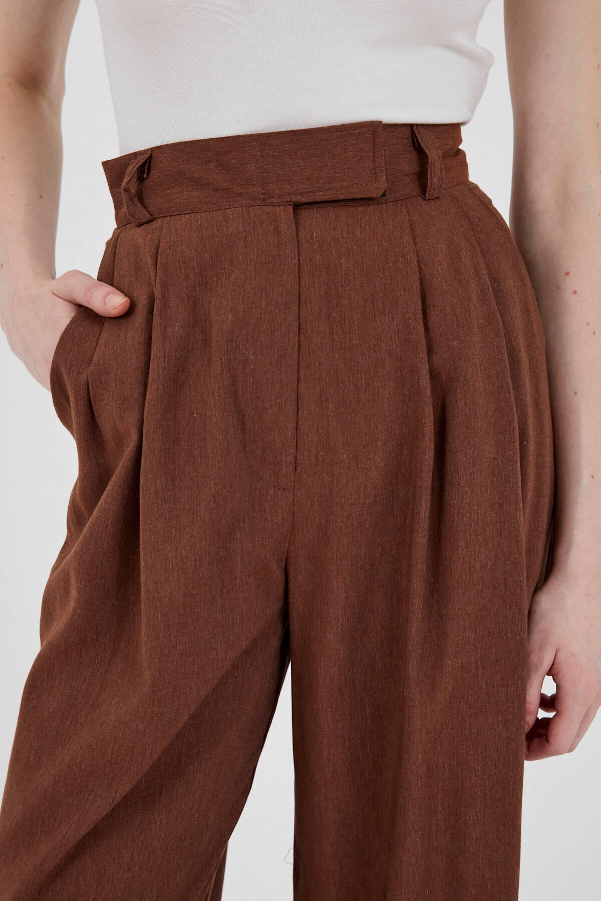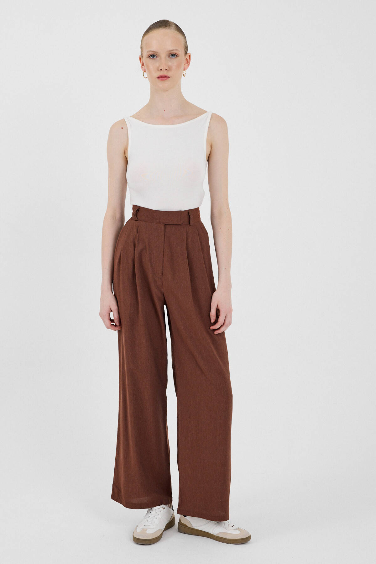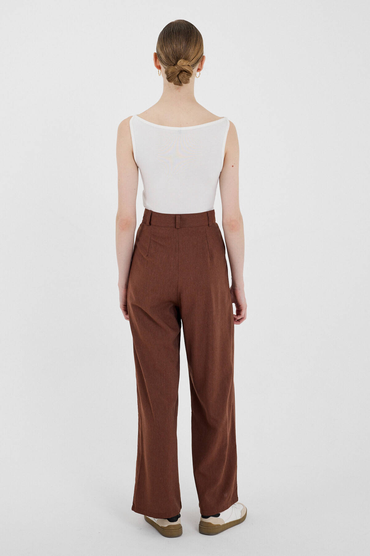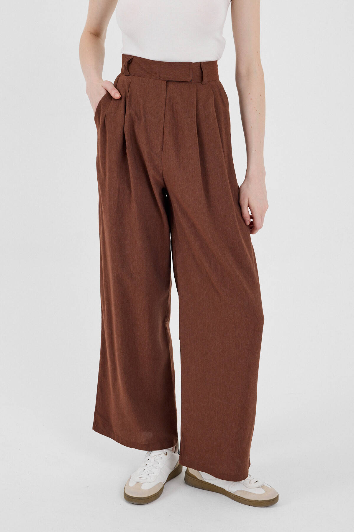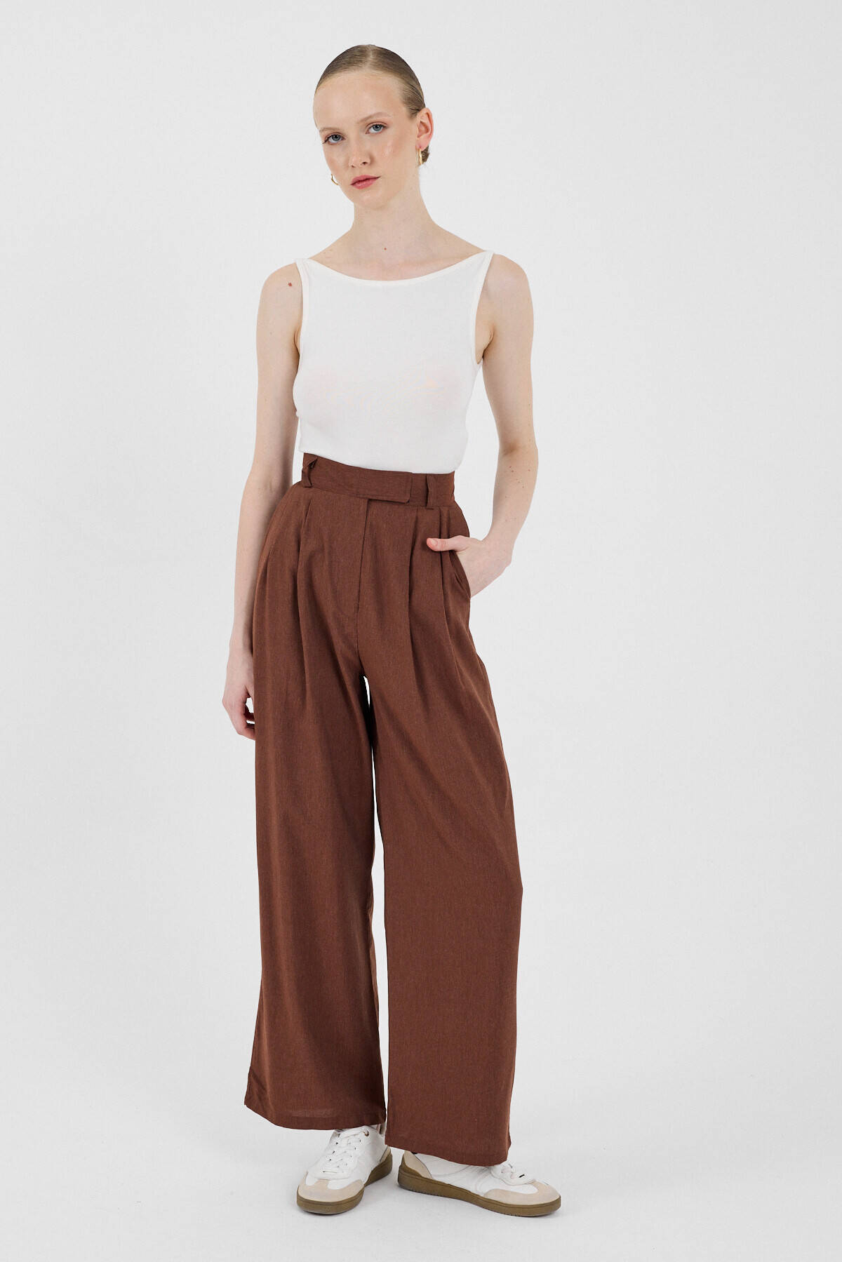 Kahve Yüksek Bel Cırt Kapama Detaylı Pamuklu Palazzo Pantolon 8062A