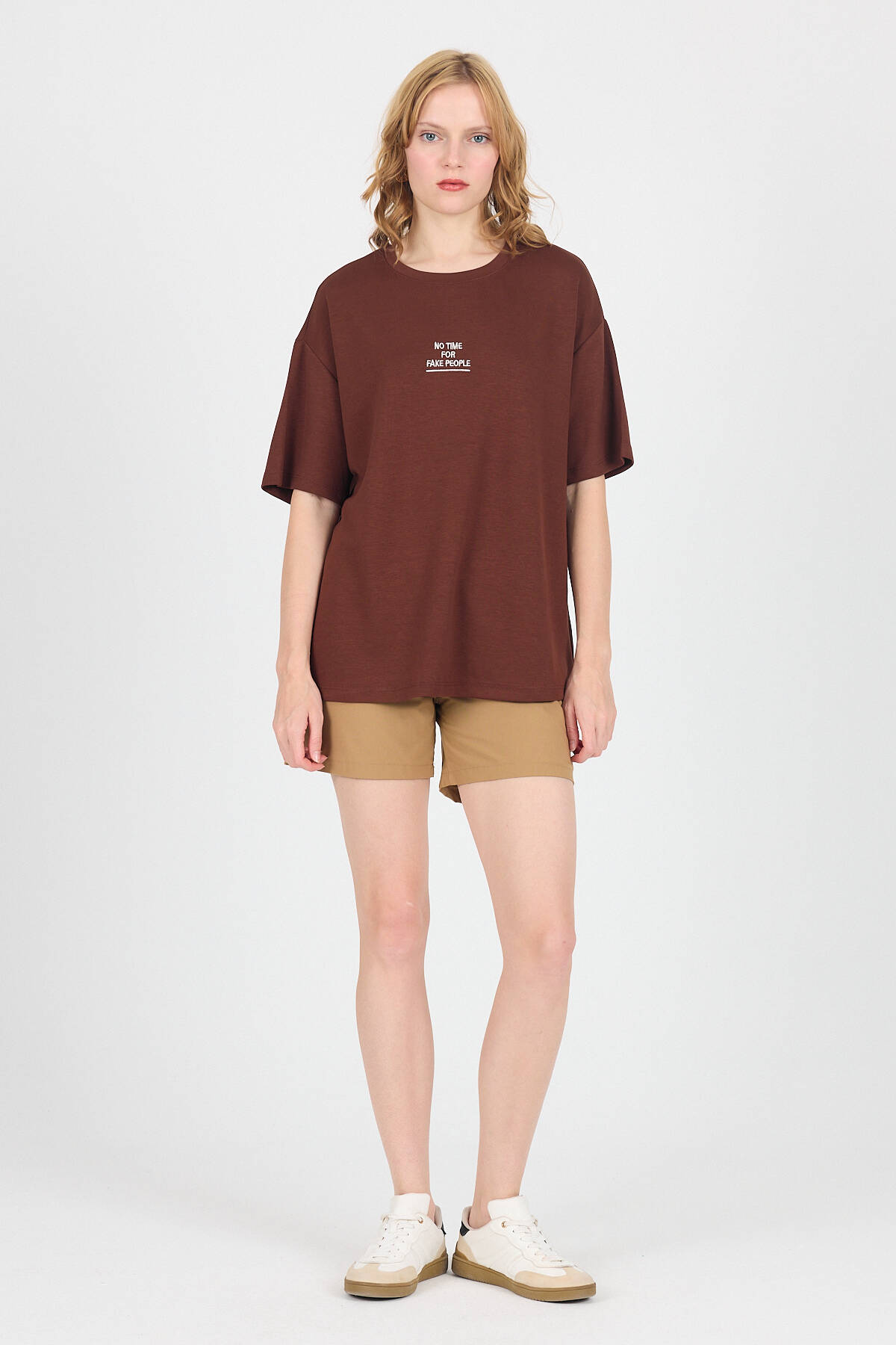 Kahve Yumuşak Dokulu Yazı Baskılı Oversize Tişört 6265