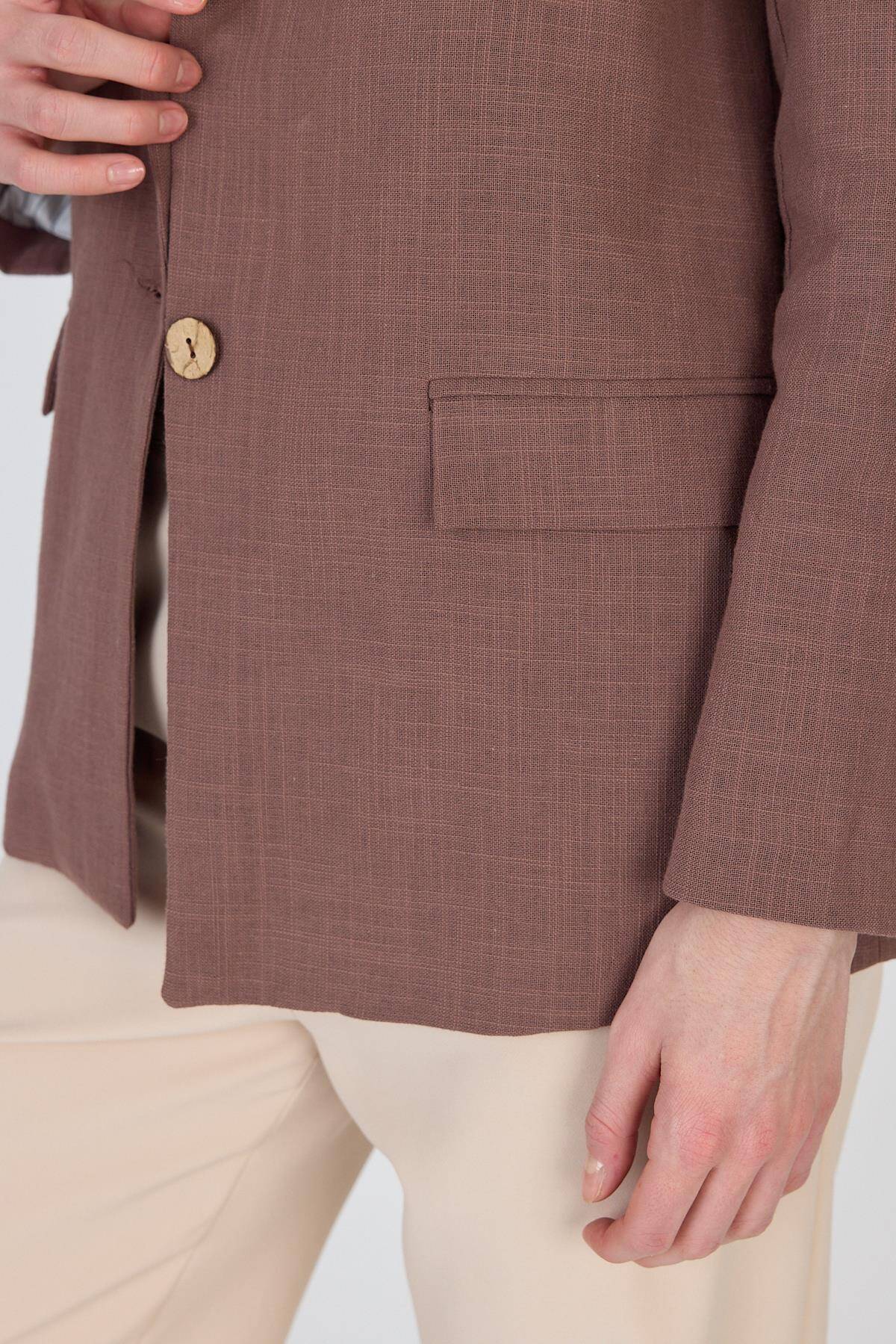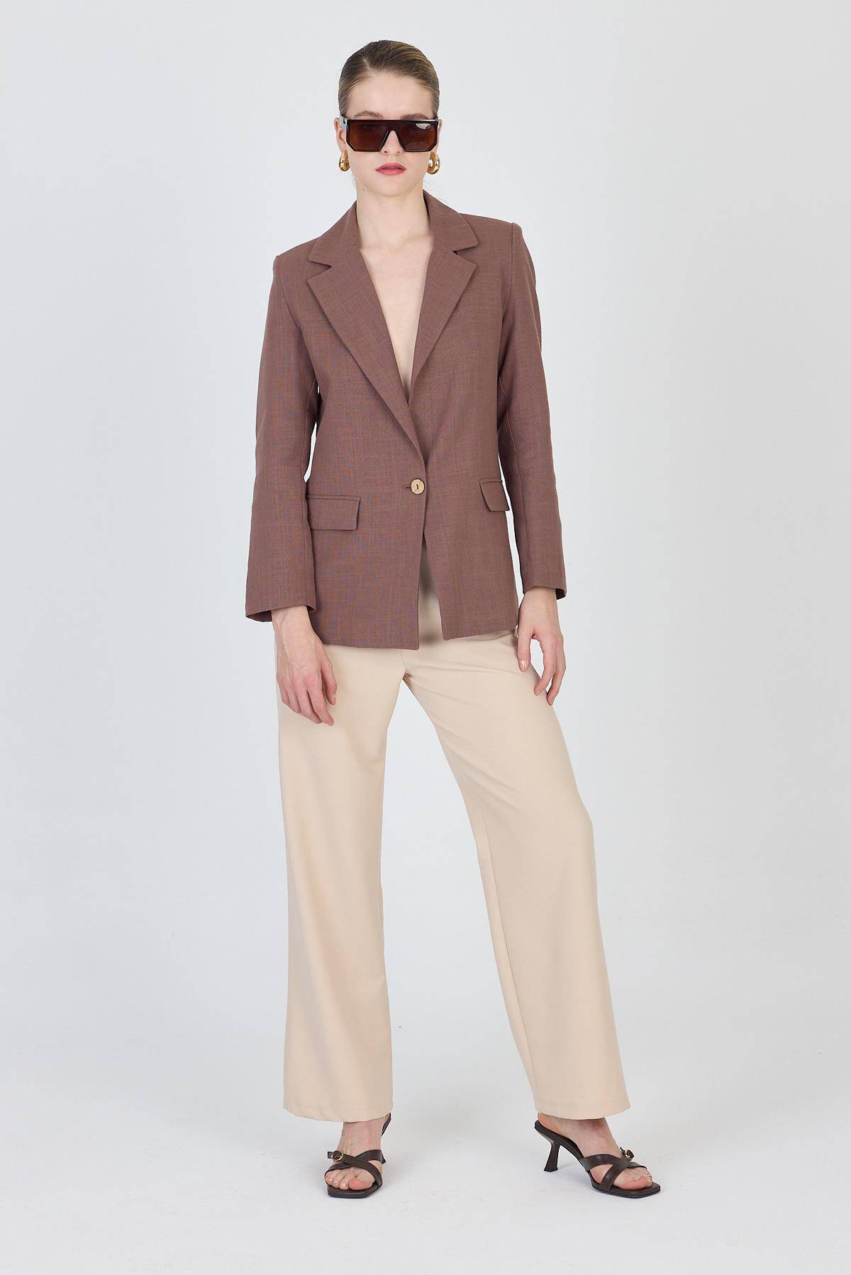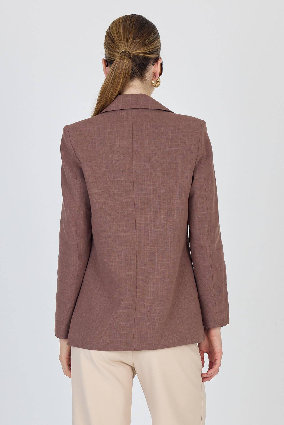 Kahverengi Keten Görünümlü %100 Pamuk Astarlı Blazer Ceket 6023-3