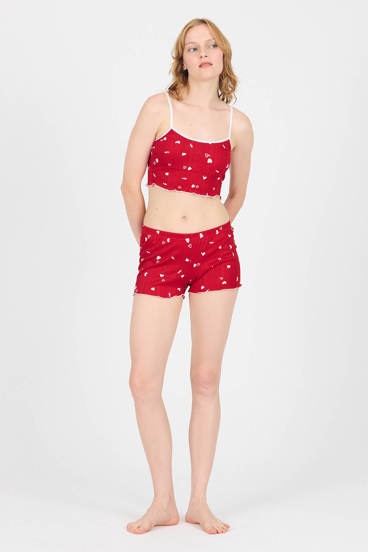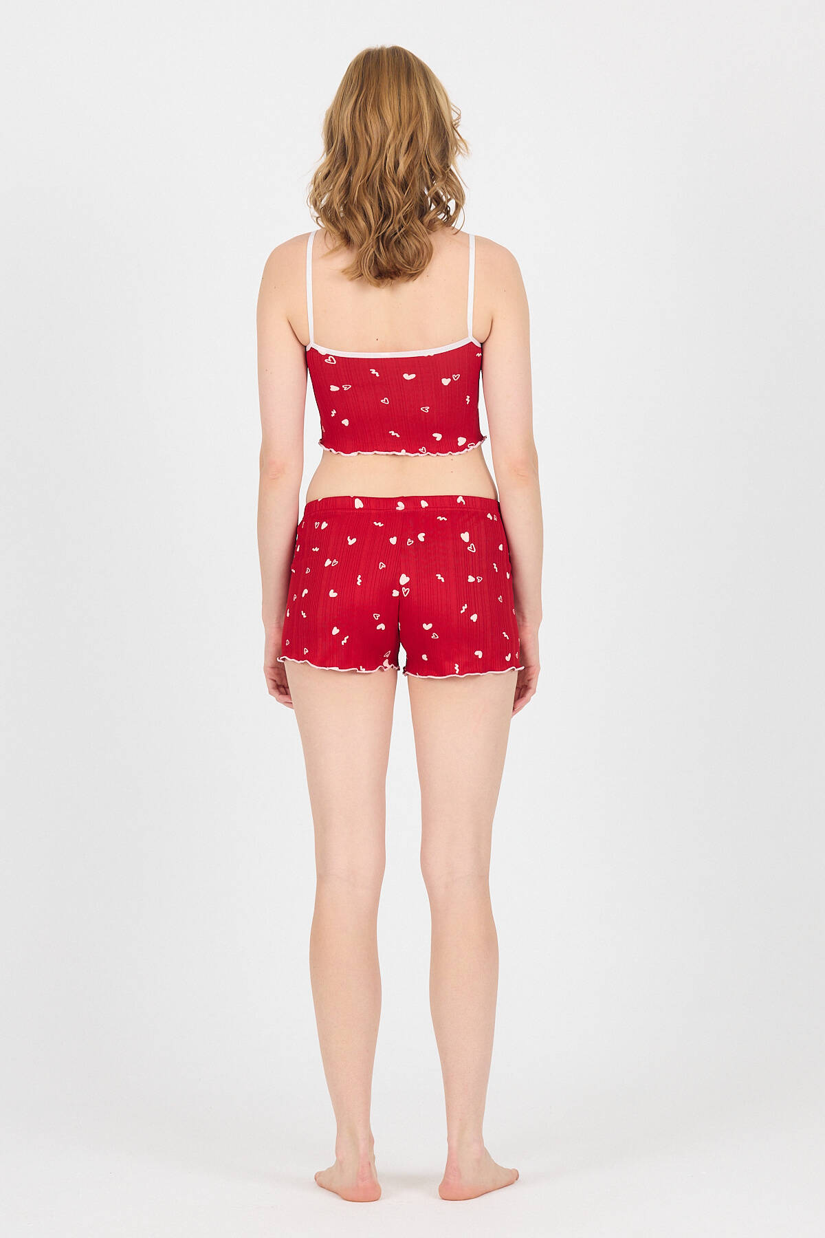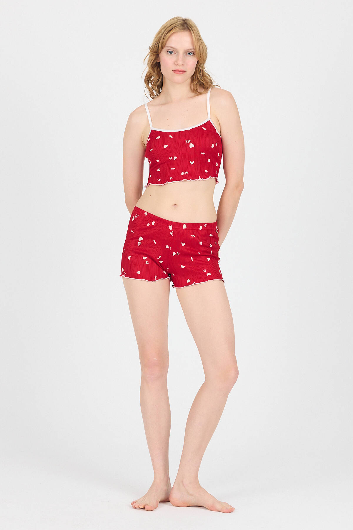Kırmızı Kalp Desenli Atlet Şort Takım 3405