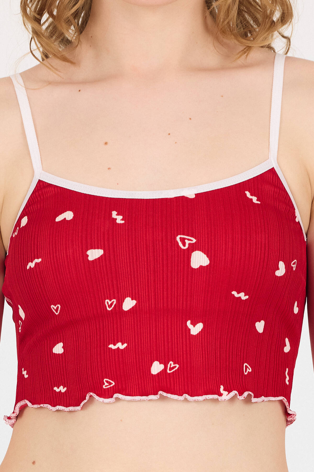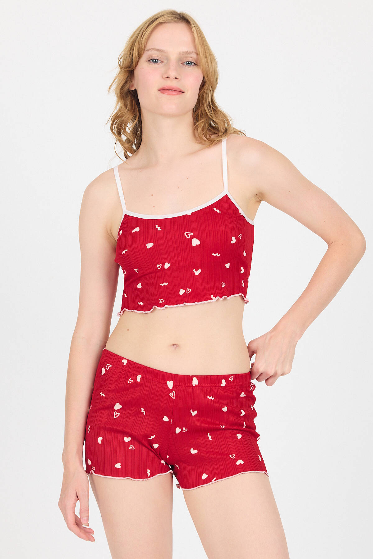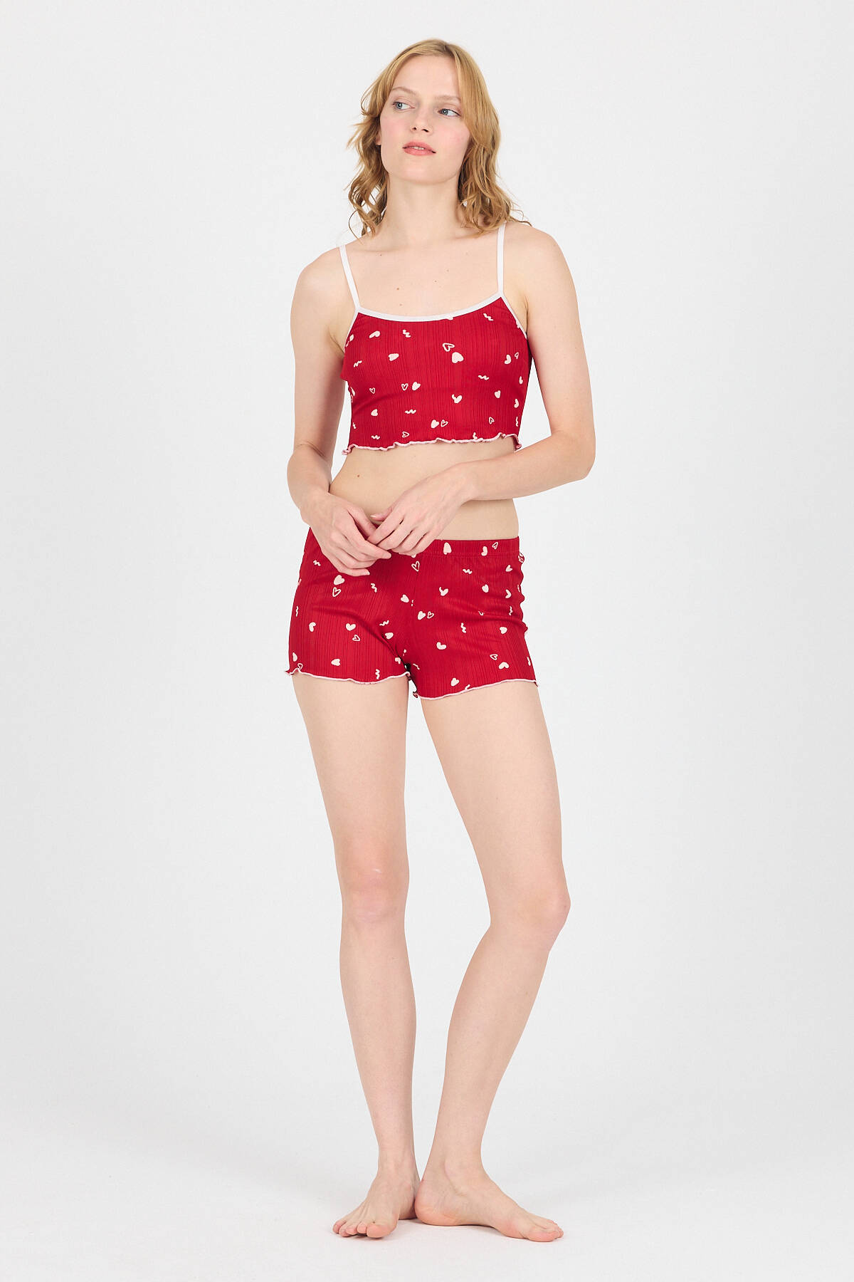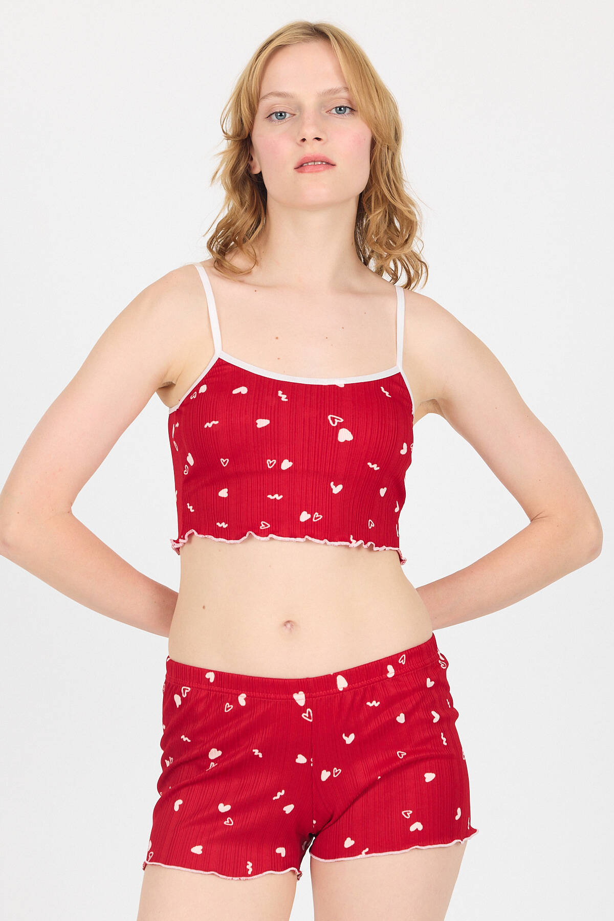 Kırmızı Kalp Desenli Atlet Şort Takım 3405