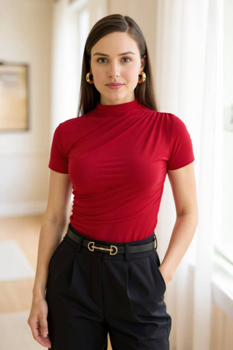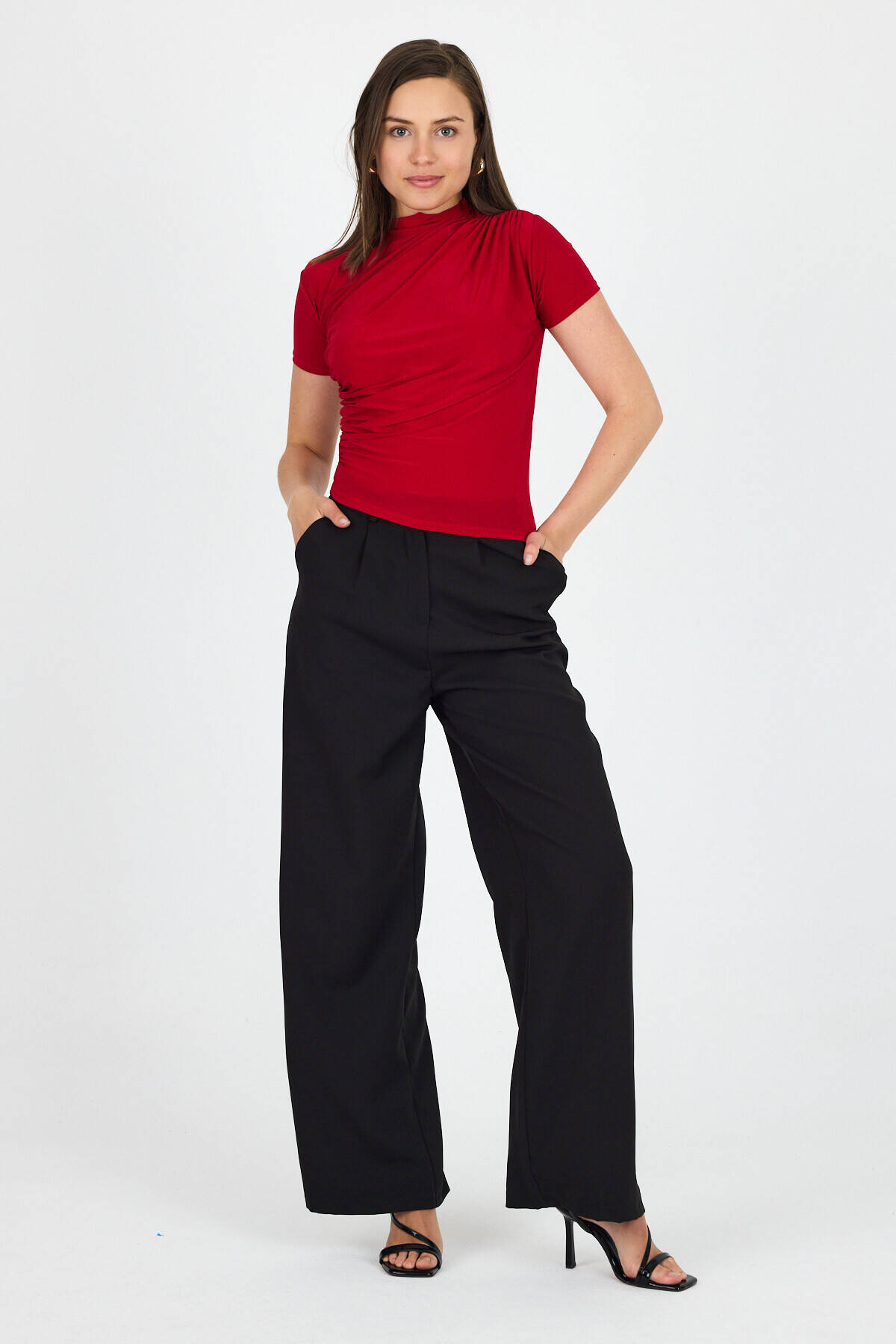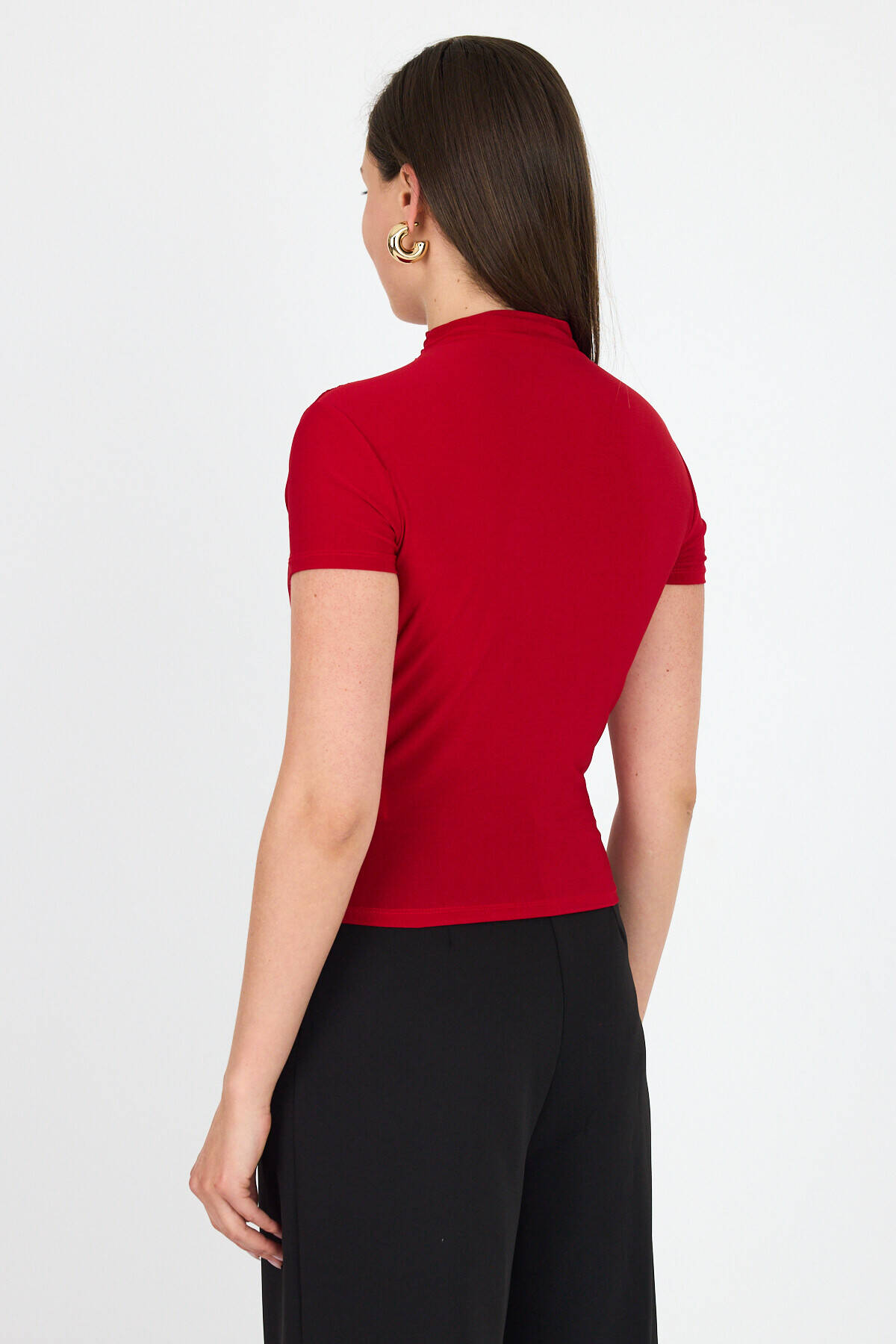 Kırmızı Kısa Kol Büzgülü Sandy Bluz 2417
